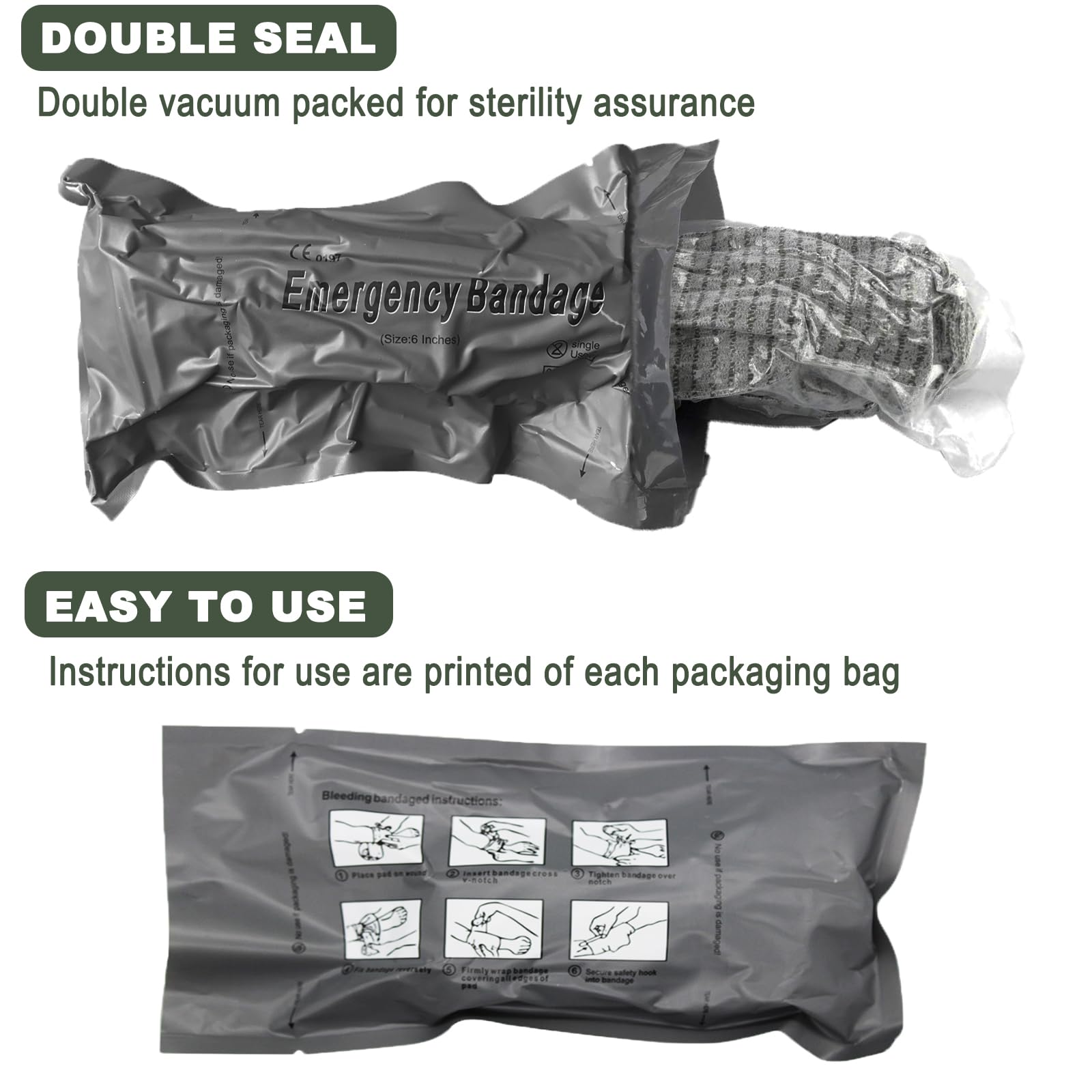 STERILITY GUARANTEED: This approved device for first aid applications is individually vacuum sealed to guarantee sterility and safety. The compact and portable package is easy to safely store in a backpack, first aid kit, medic trauma bag, car, and more. Materials include chitosan fiber, calcium alginate fiber, polyurethane functional film, self-adhesive elastic bandage, and absorbent cotton.