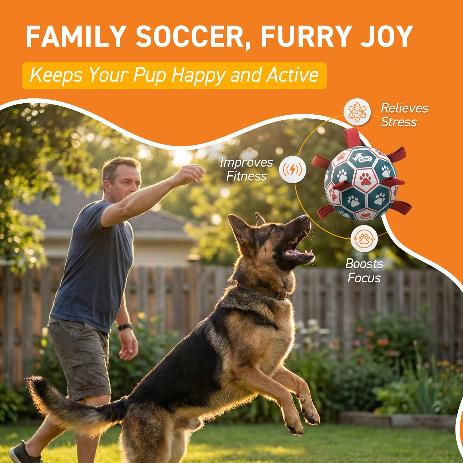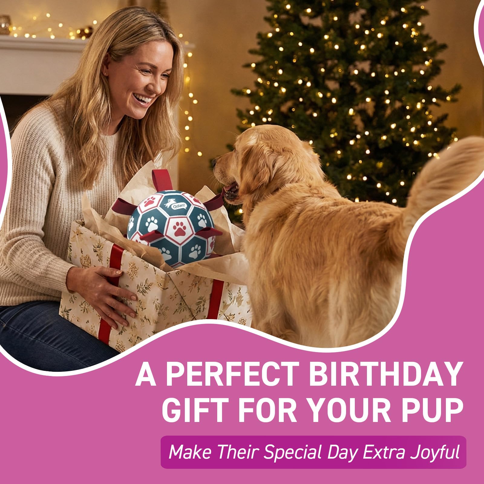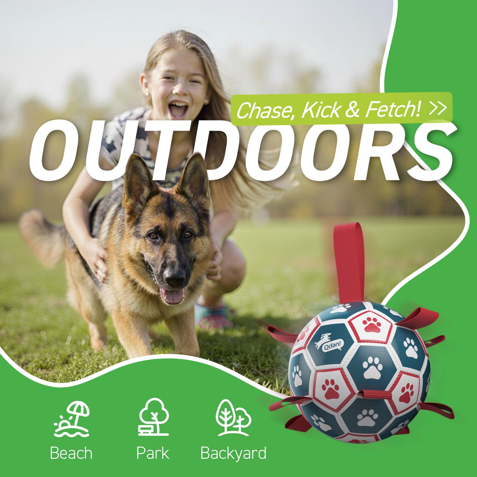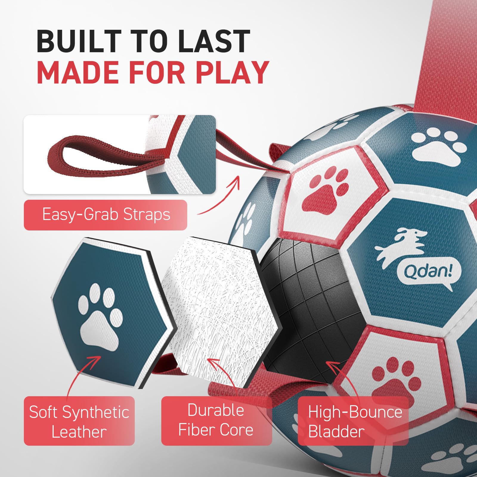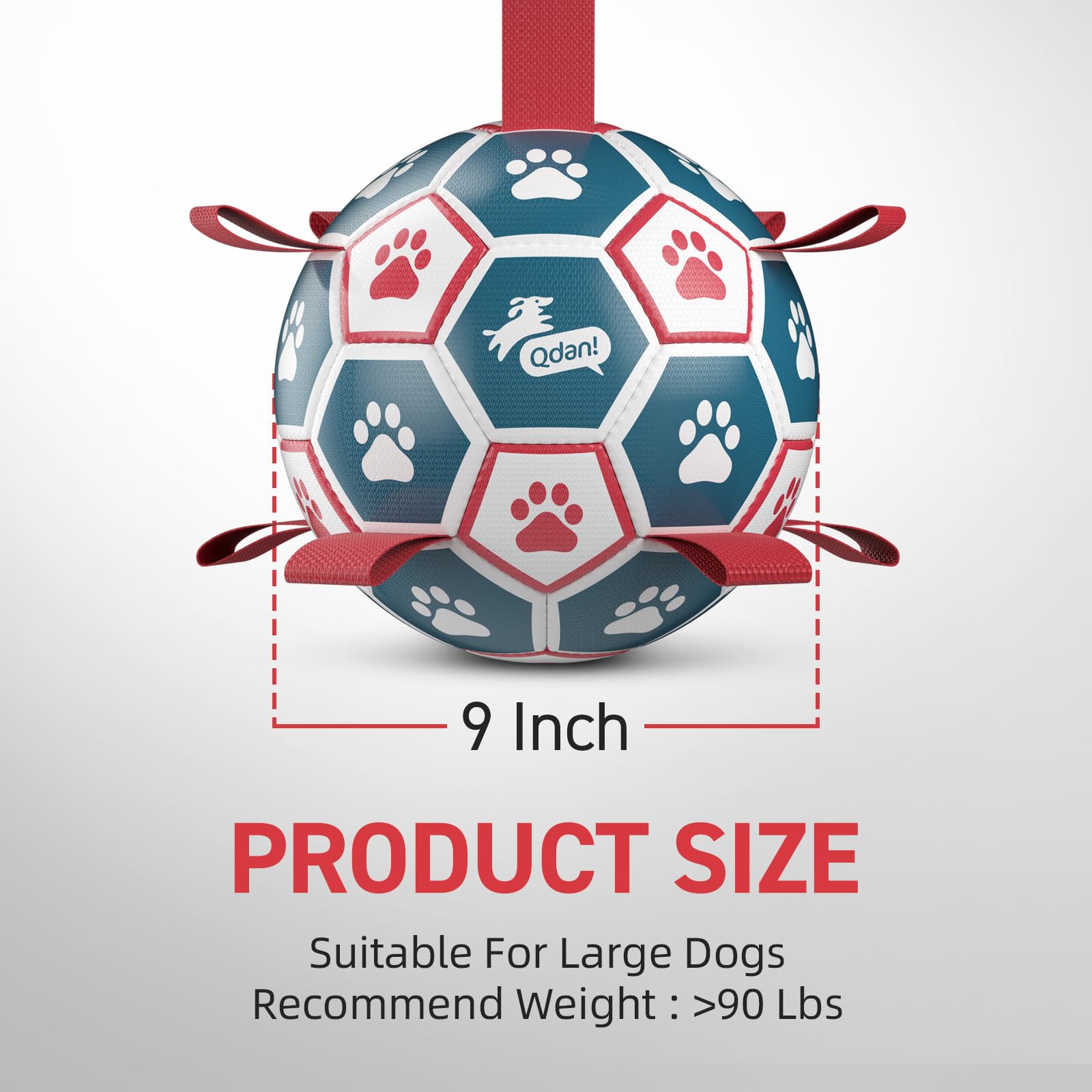 ⚽ ⚽ QDAN Dog Soccer Ball Best Gift For Your Dog - Send your dog a birthday gift.House and Outdoor Dog Toys can be played in the living room,pool,lake and beach,because it is also Water Toys Ball,no water absorption,no seepage,no deformation,lightweight,easy to float in water.Dog Soccer Ball with Grab straps are great for dog catching balls and increasing your dog's interest in playing.