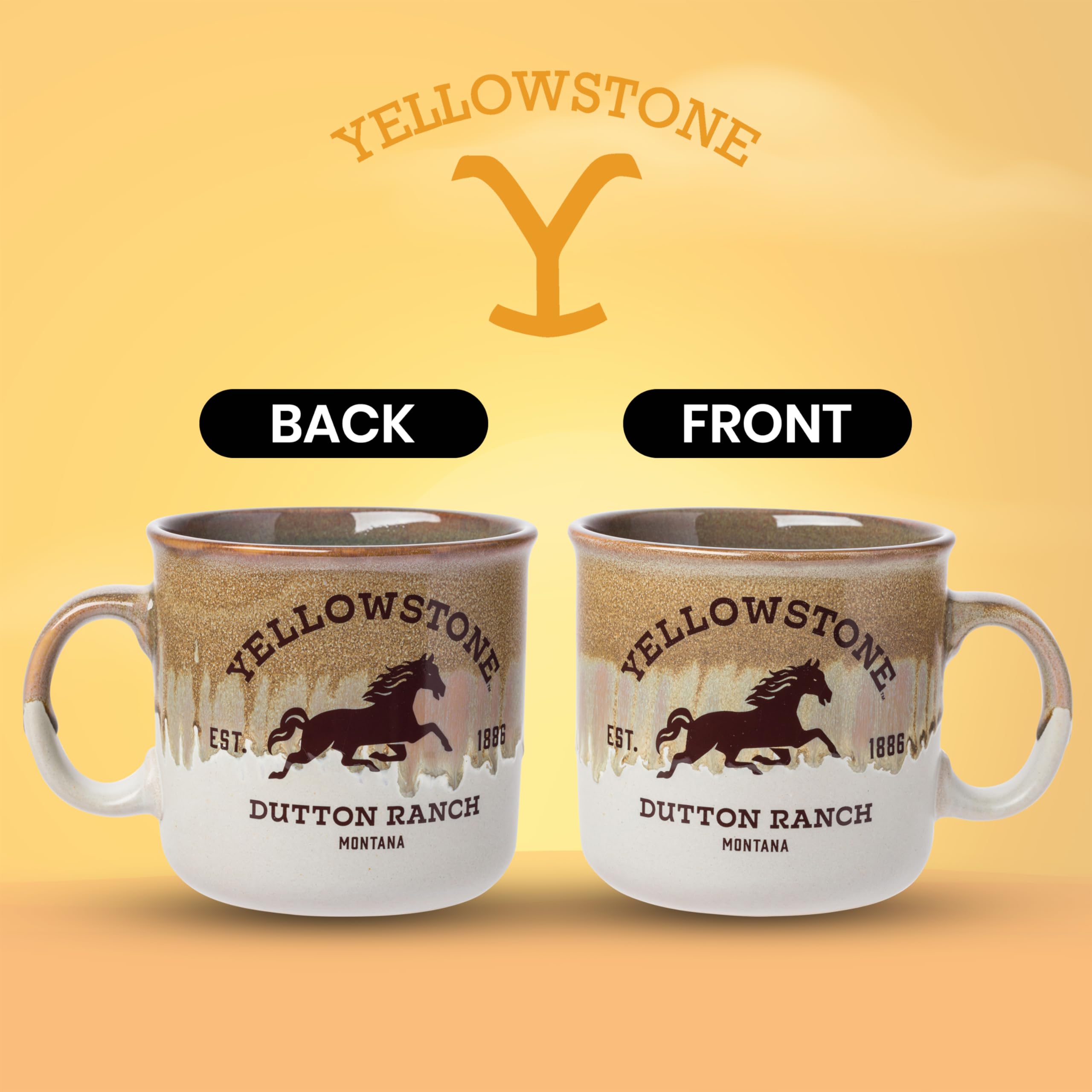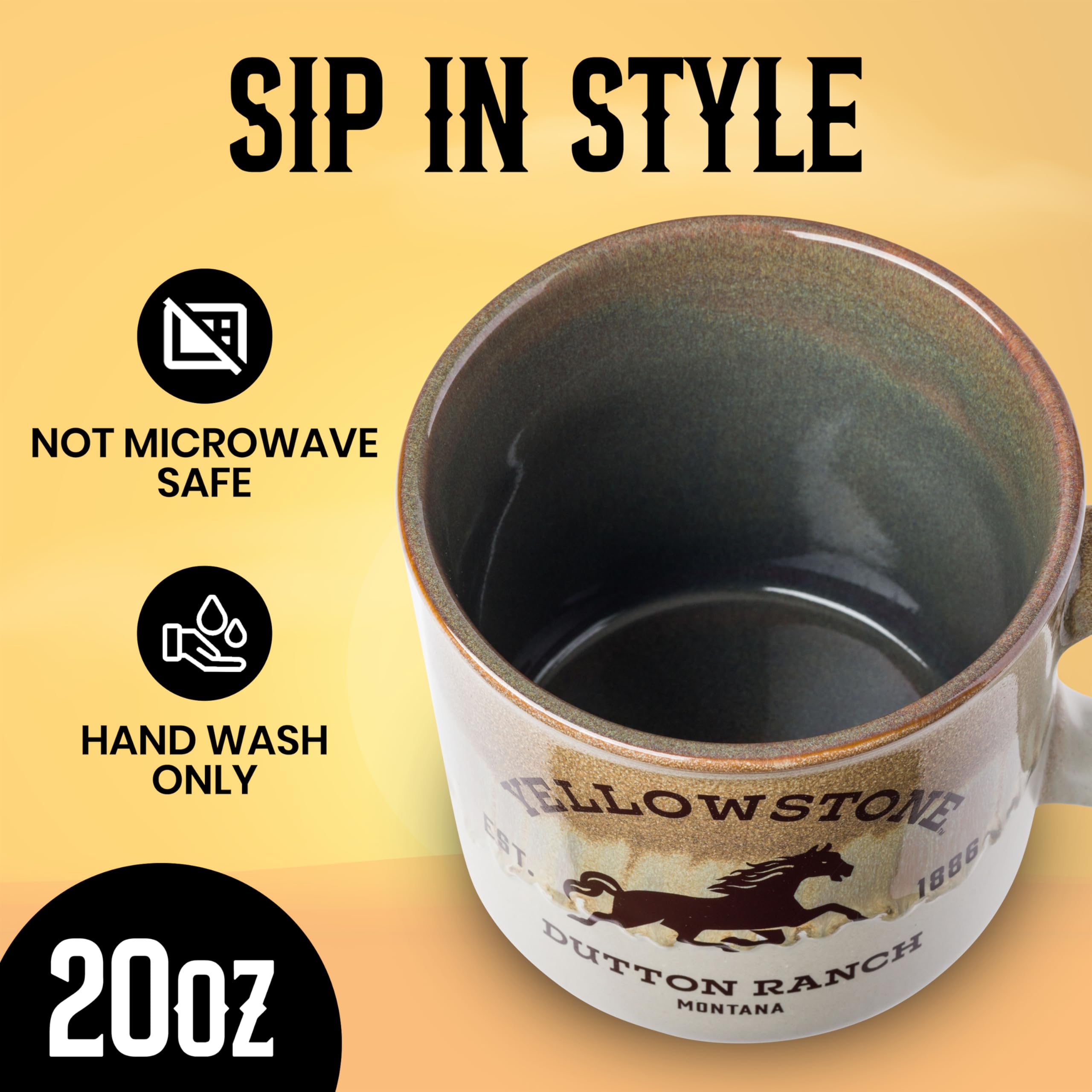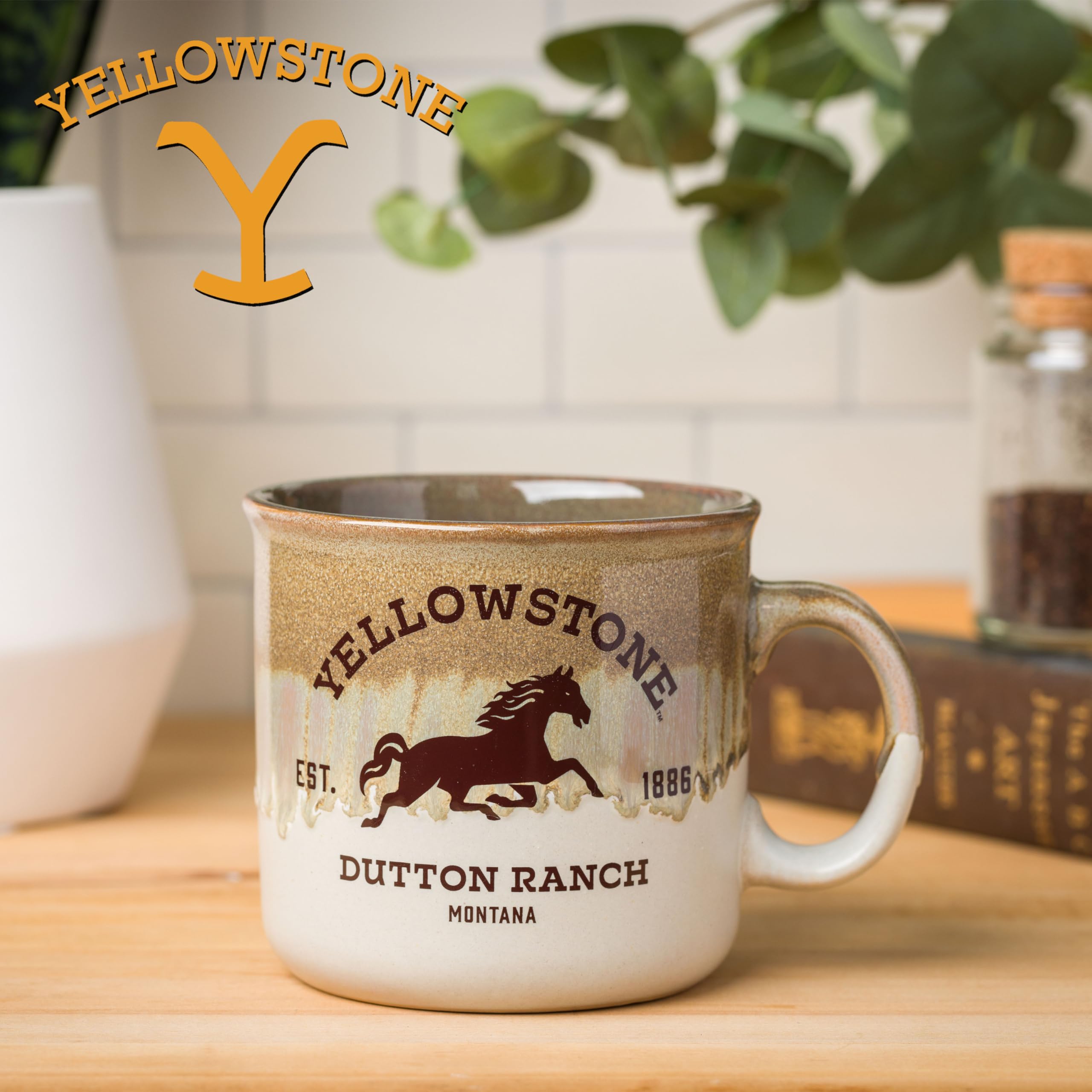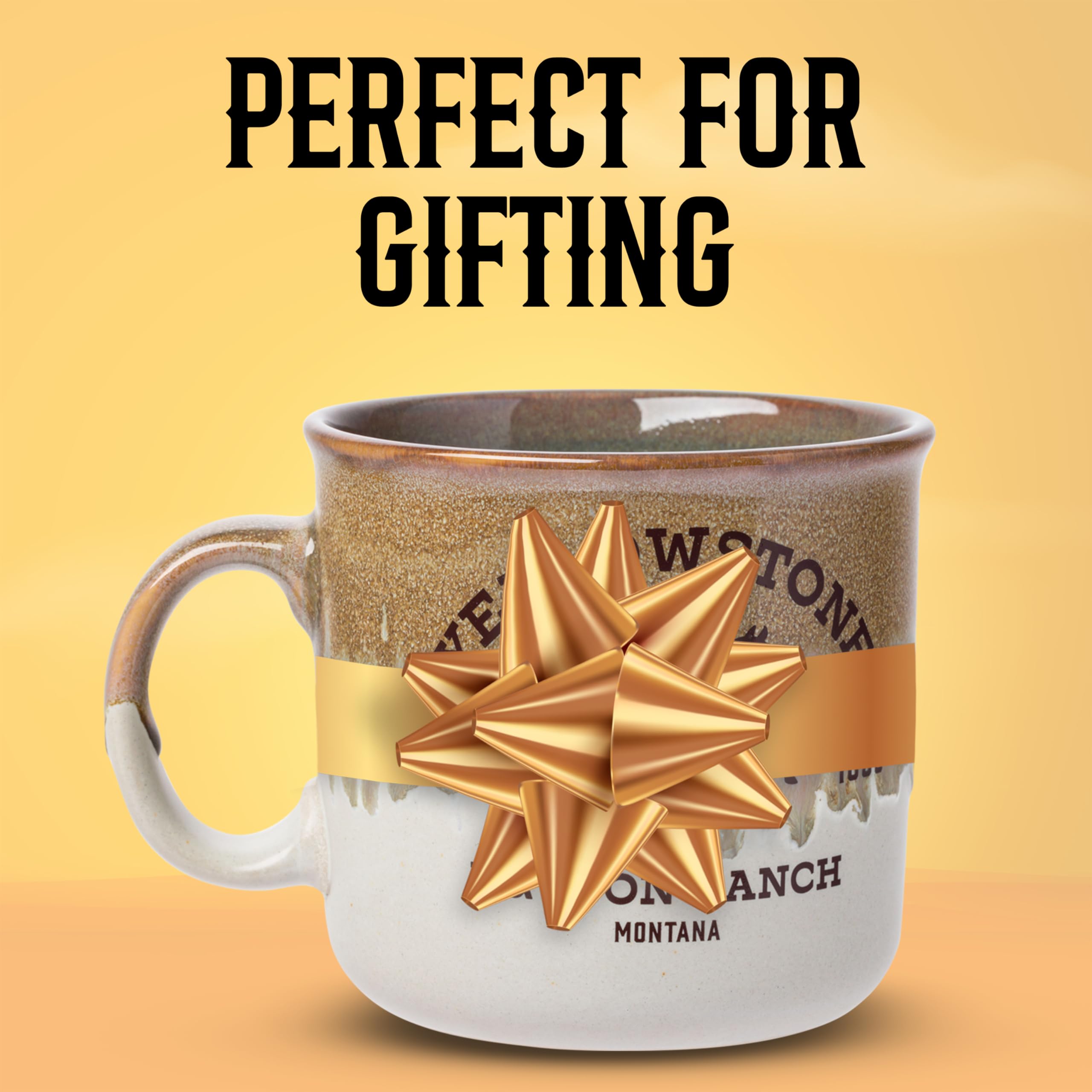 CERAMIC MUG: Enjoy a nice cup of coffee or tea in this awesome Yellowstone 20oz Dutton Ranch Silo Reactive Glaze Ceramic Camper Mug