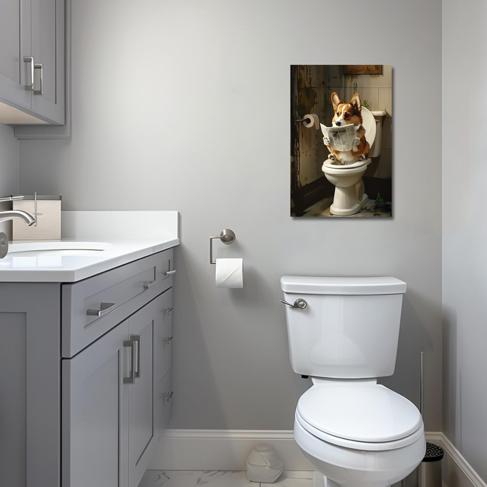Bathroom Corgi Canvas Wall Art - Funny Dog artwork is eye-catching and can be the focal point of any room, making it a delightful centerpiece that adds beauty to a blank wall. Corgi canvas paintings can be hung in living rooms, offices, dining rooms, bedrooms, toilets, bathrooms, kitchens and other indoor spaces.