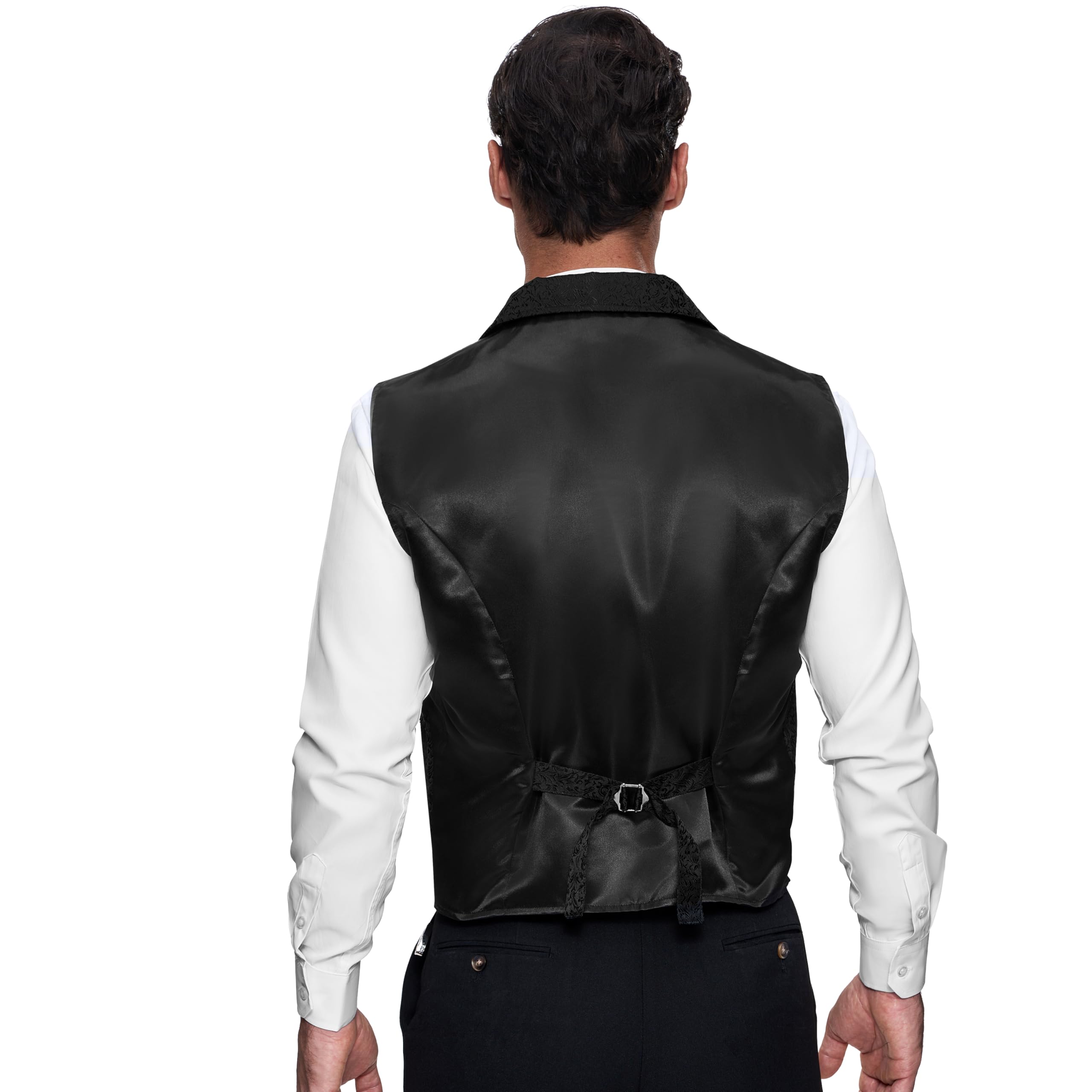 Quality Material:Made from premium 100% polyester Jacquard fabric, the men black suit vest offers a comfortable and durable wear, with a distinctive notch lapel collar for added sophistication.