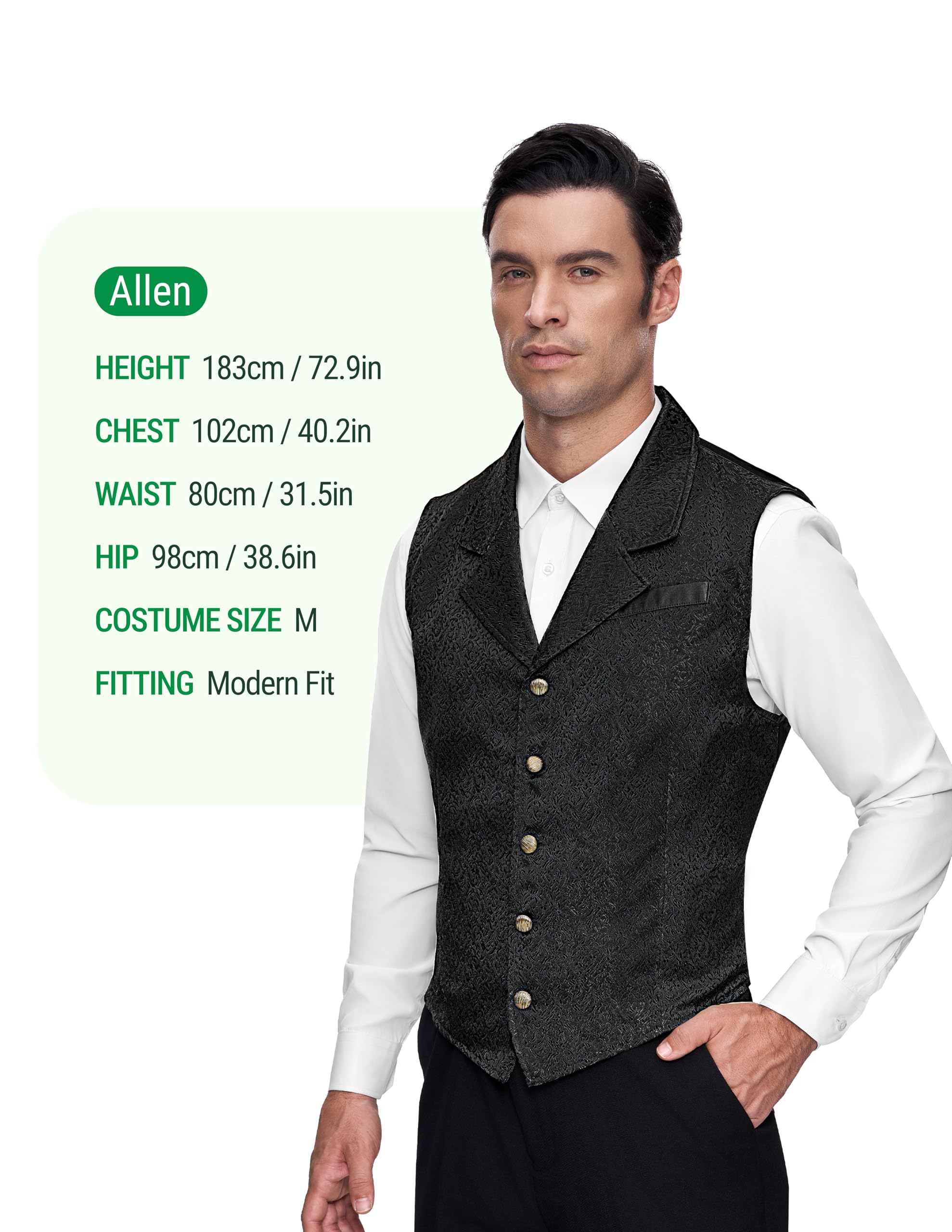Multiple Sizes:Our Steampunk black suit vest for men is available in Medium, Large, X-Large, XX-Large sizes with a moderate-fit silhouette designed to flatter most men's figures. Don't forget to double-check the size chart for the great one.