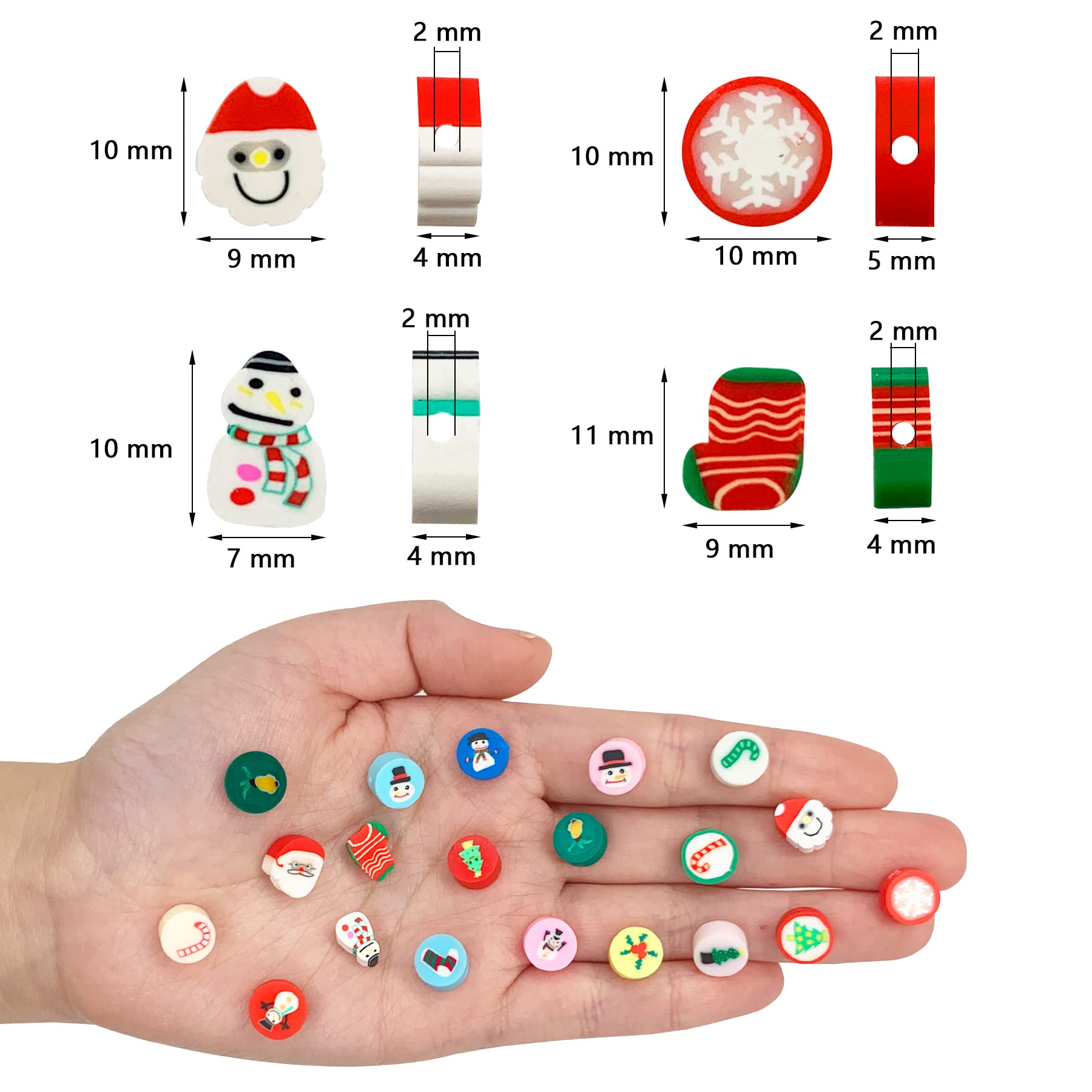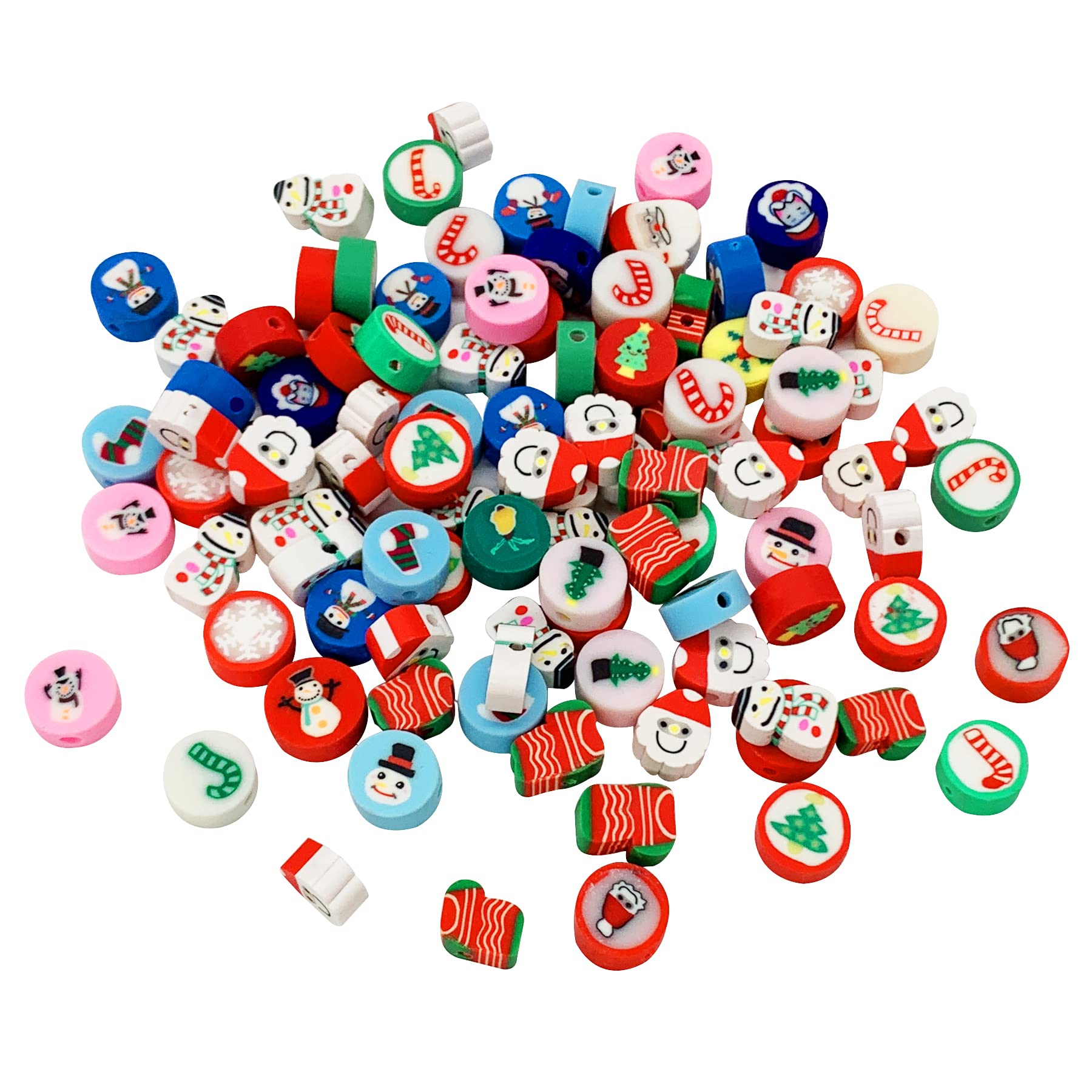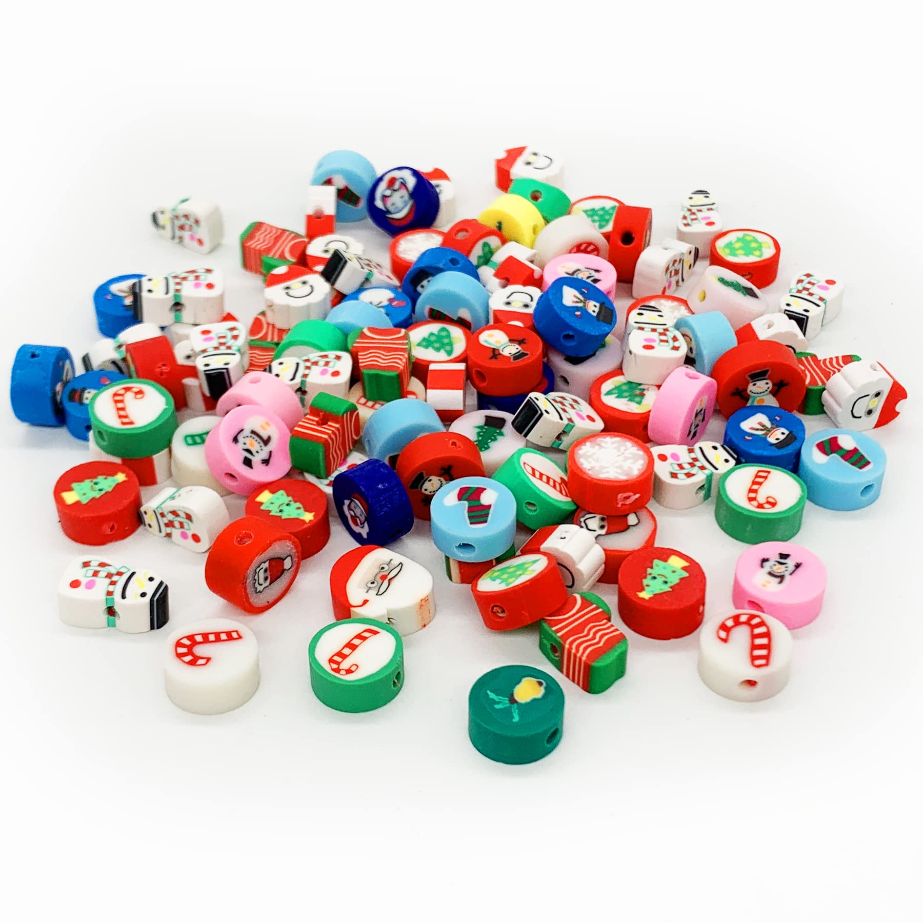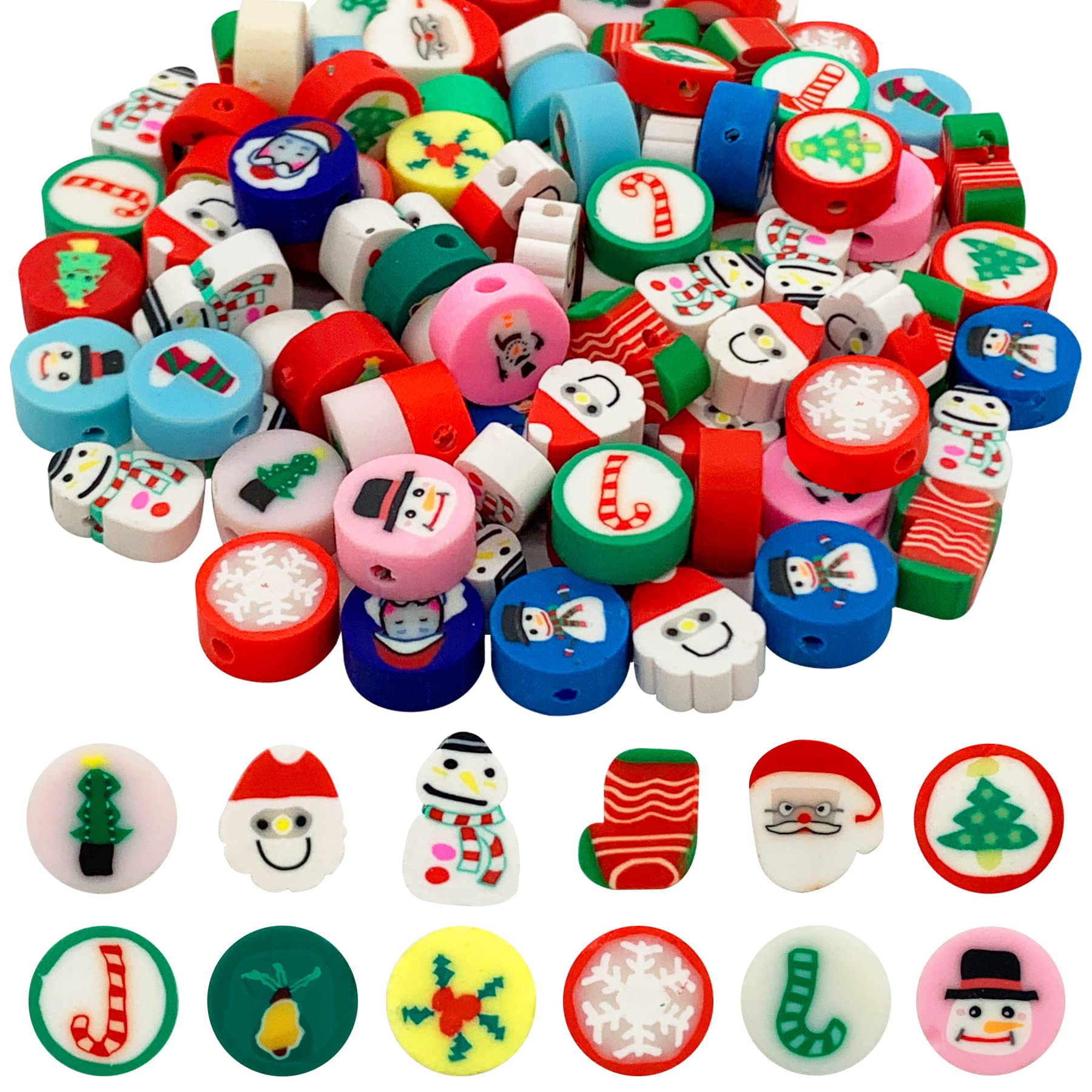 100 Pcs Christmas Polymer Clay Beads Cartoon Heishi Spacer Beads Supplies for DIY Bracelet Earring Necklace Jewelry Making