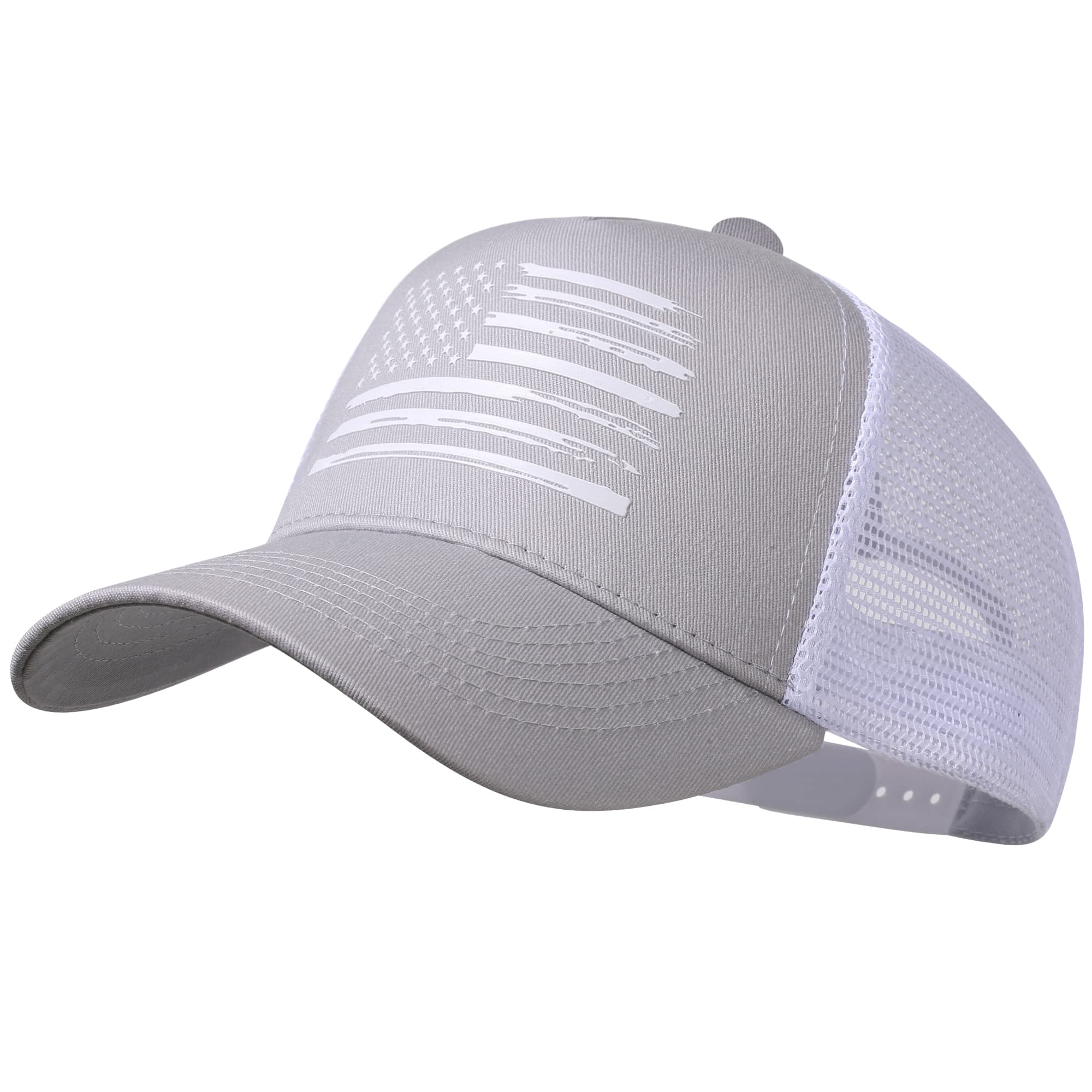 SHOW OFF YOUR PATRIOTIC SIDE - Wear your love for country with pride with these American flag hats for men and women. The front of this USA hat features a printed blacked out American flag design