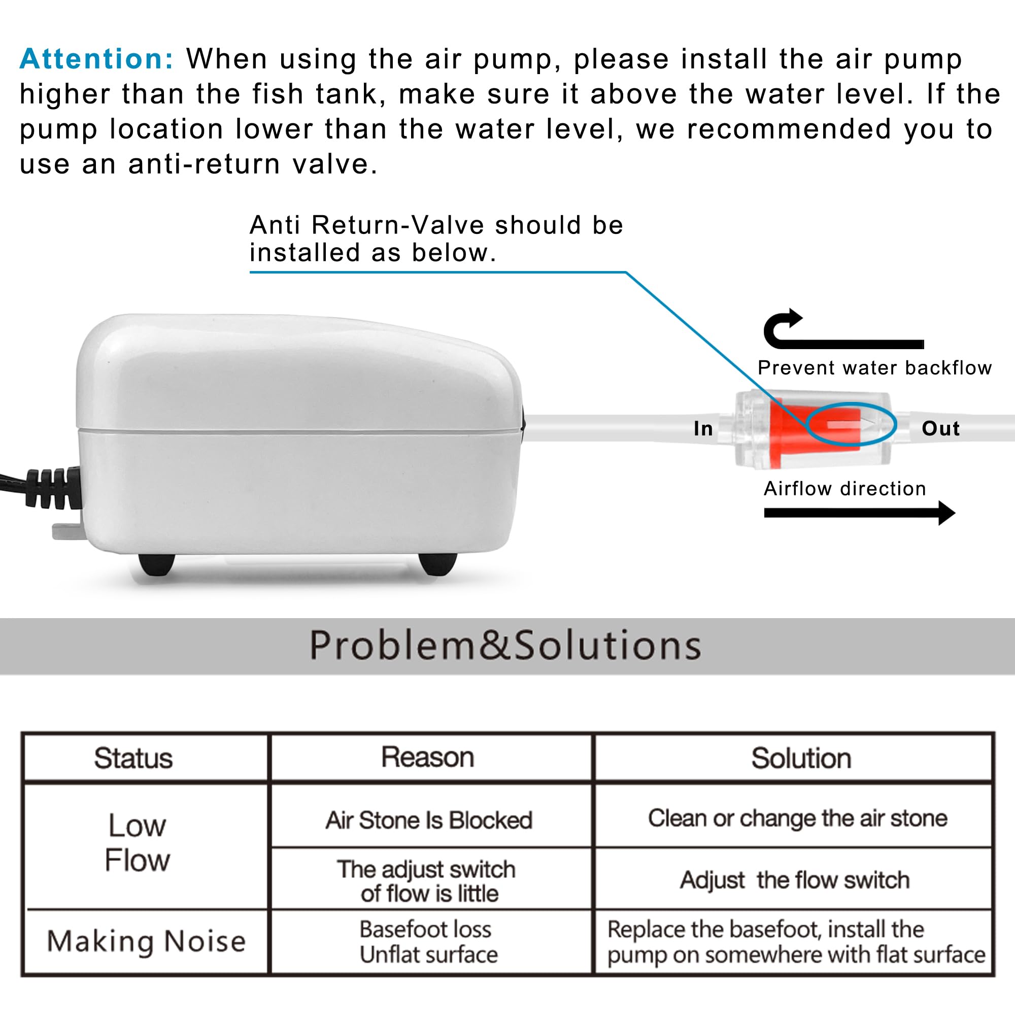 【Easy to Install 】Connect air pump with air tubing, check valve and air stone, less than few minutes installation.