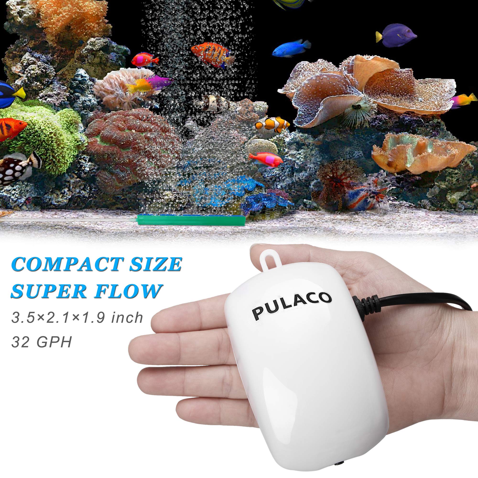 【PULACO Air Pump】: A excellent production, unlike other normal electromagnet air pumps, Pulaco air pump use magnetic ceramic plate driver, without electromagnet interference, no oil pollution; It has filter layer inside as purify function, ensure clean and fresh air vent.