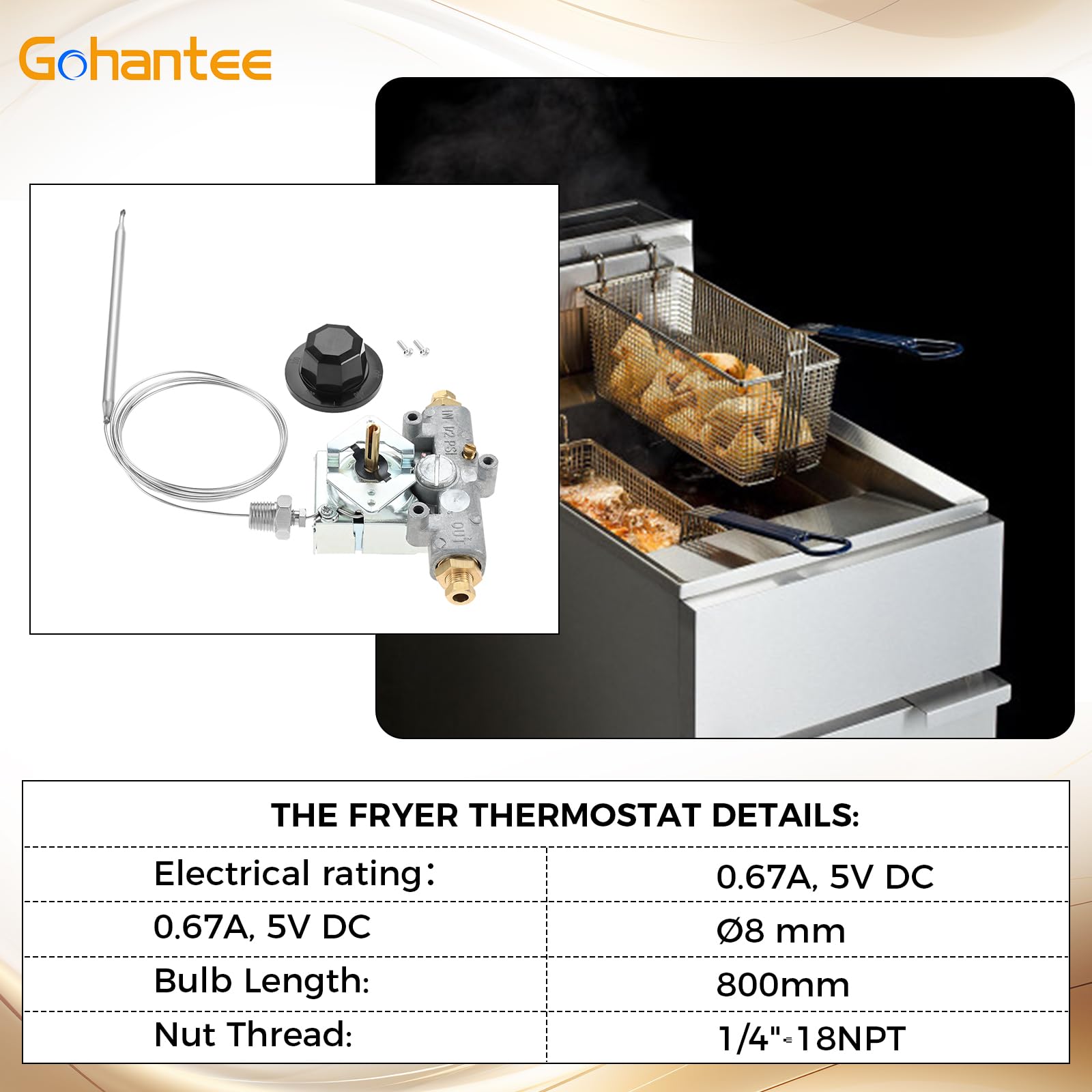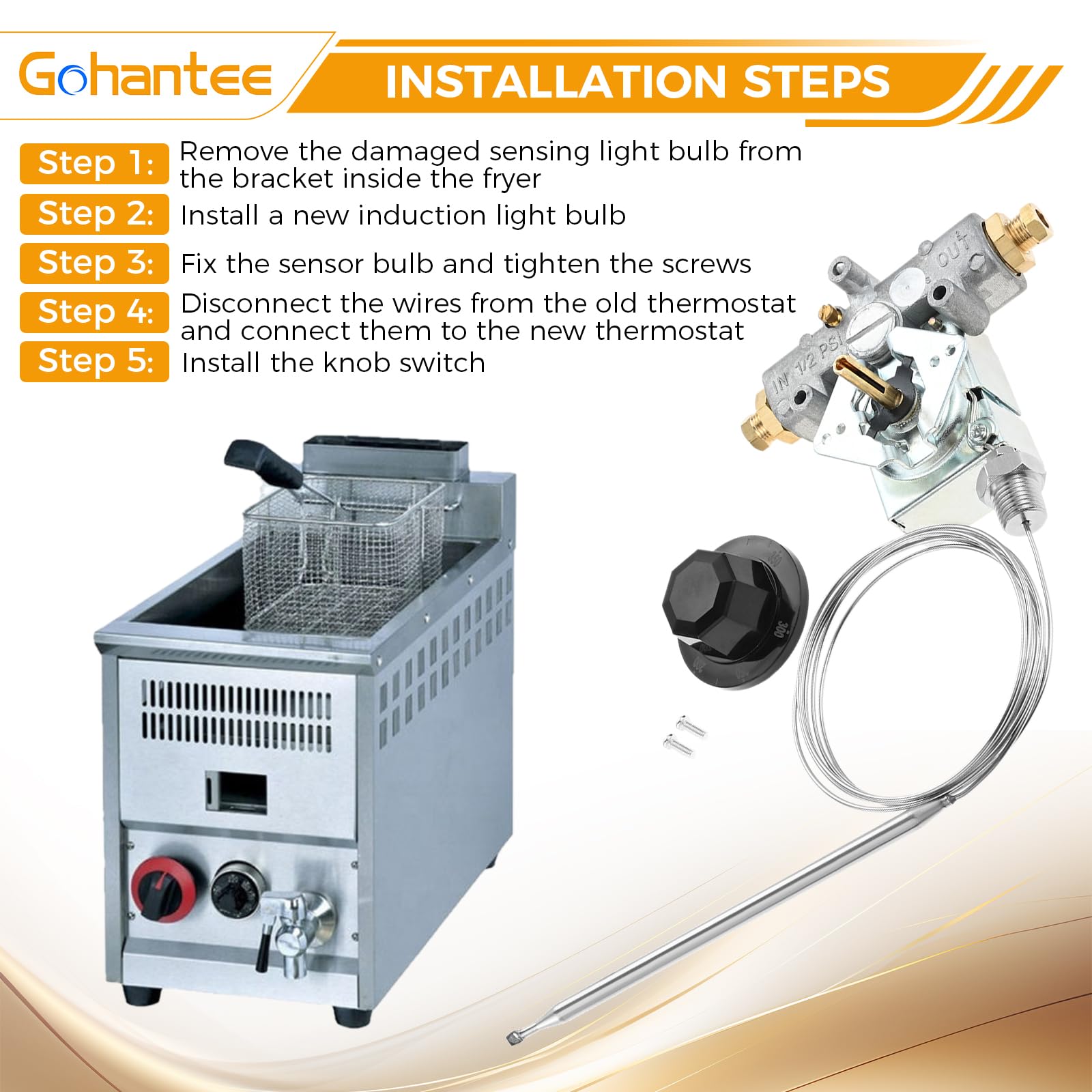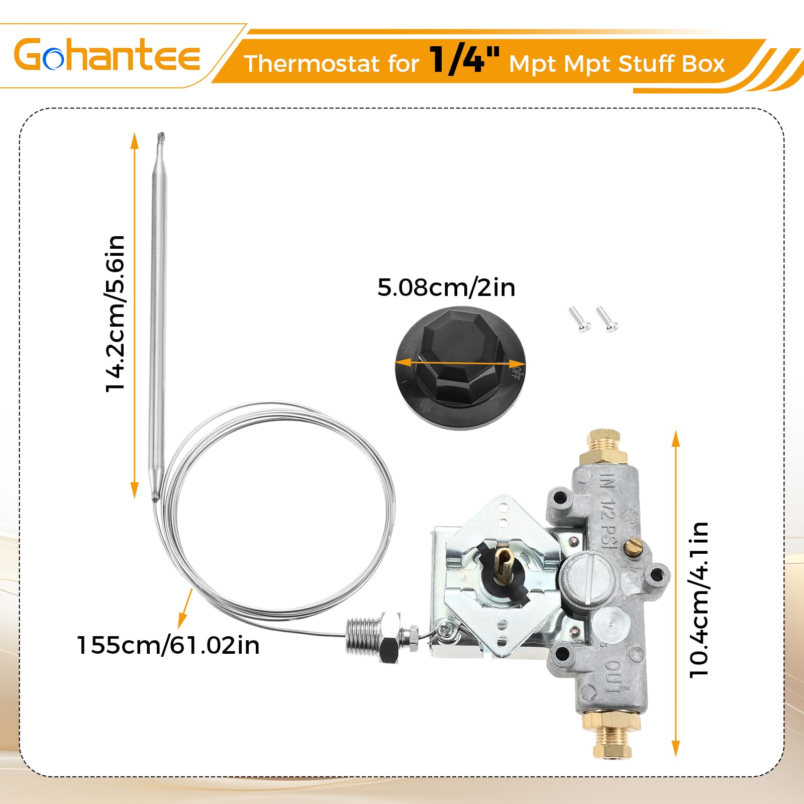 [Gas Fryer Thermostat] The gas fryer thermometer has a temperature range of 200-400F, capillary length is 59 inch, 1/4" Mpt Stuff Box Capacity is 30,000 Btu/Hr, Inlet and outlet size is 1/4", compatible with Pitco P5047588, Pitco GSA60301800, Pitco 4290-006 Gas Thermostat to meet your needs.