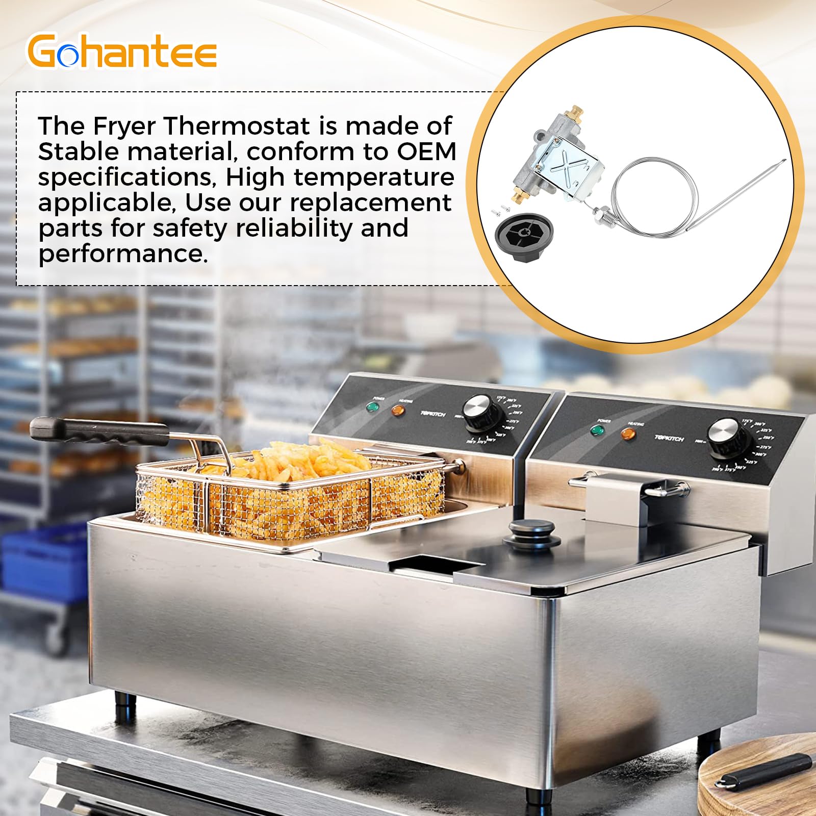[High Quality] The Fryer Thermostat is made of copper, nickel-plated copper and stainless steel, Dial Knob is the heat-resistant plastic, allows you to adjust the temperature of your commercial fryer unit while it also senses internal temperatures. Suitable for high temperature environments.