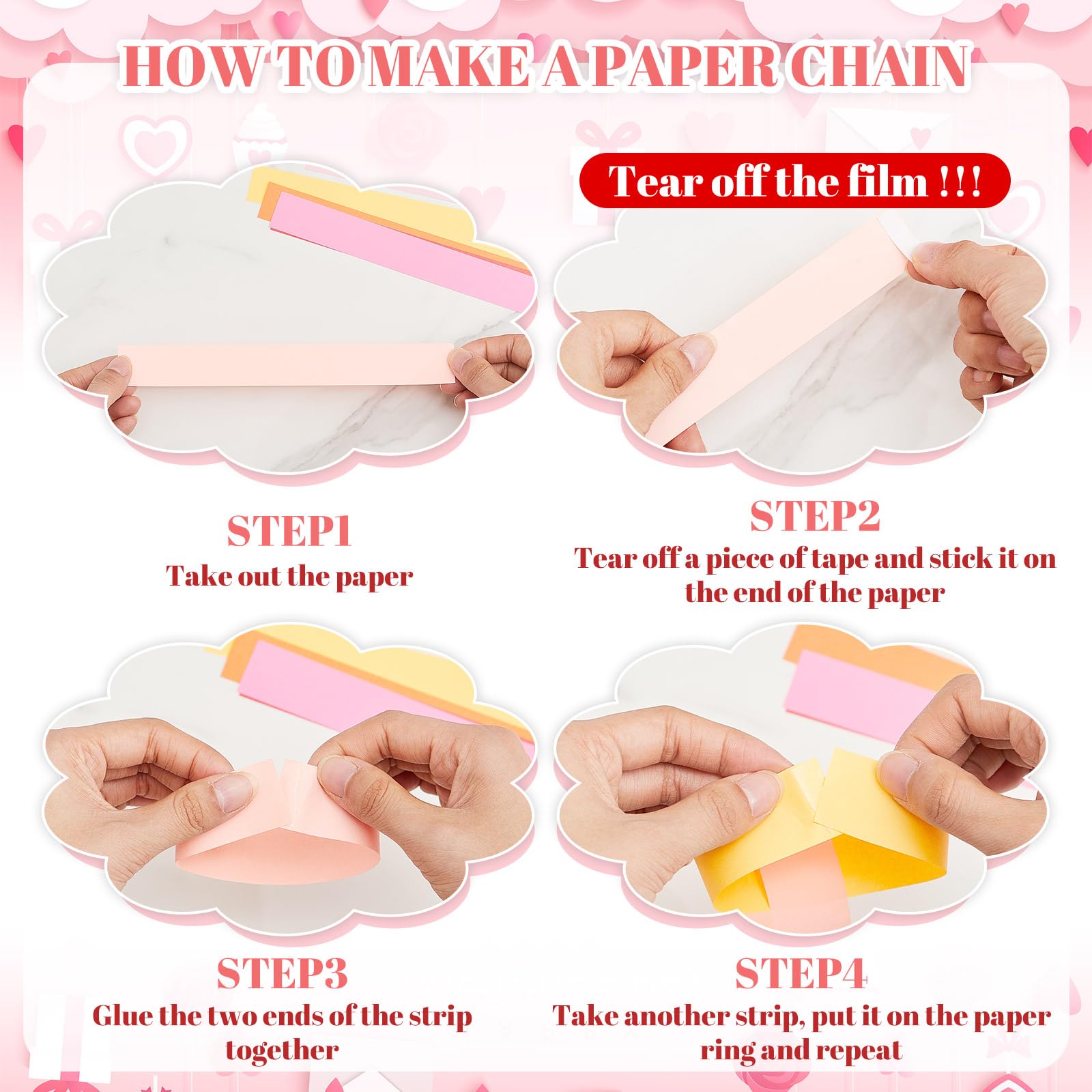 Worry Less Crafting Experience: crafting has never been easier with our DIY paper chain strips that equipped with sticky tape; You just need to stick the 2 ends of the paper together with the tape, match the color as you like, ring by ring, and you will get an exquisite handicraft, without complex or dangerous procedures; You can quickly turn your ideas into reality without the stress of sourcing for additional crafting materials