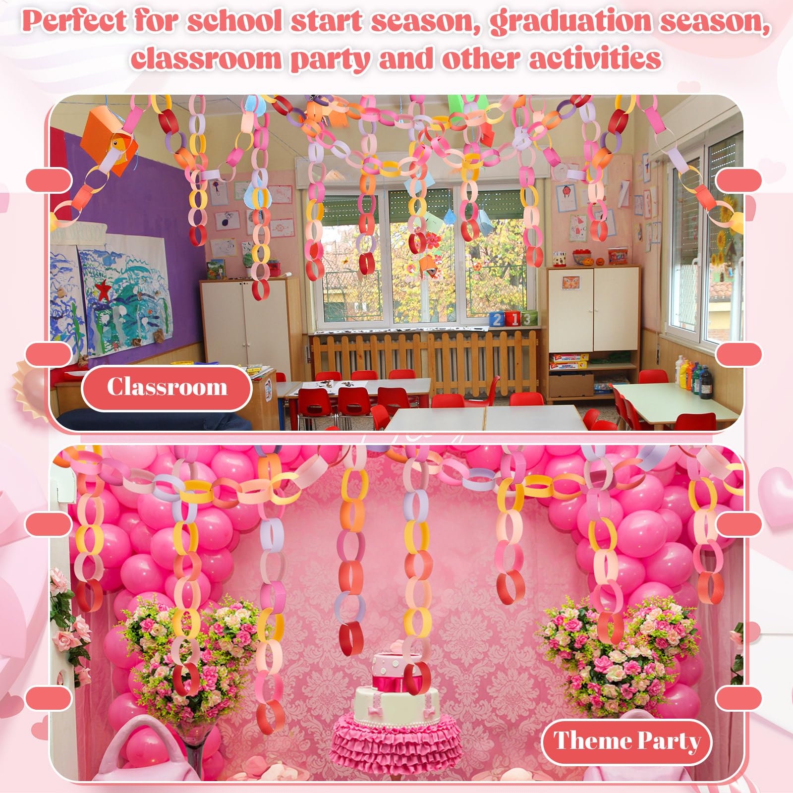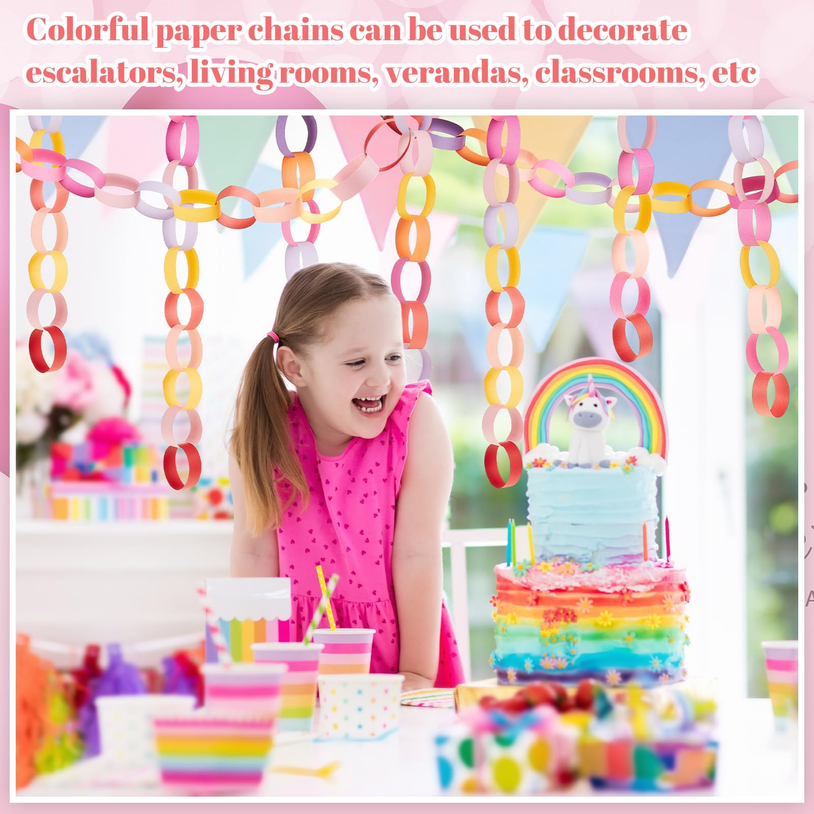 Abundantly Colorful Paper Strips: the color palette is bountiful with our 600 sheets paper chain strips, equipped with 2 rolls of double sided tapes; The abundant quantity means you can create a paper chain that can stretch up to 114 feet in total length; The multitude of colors available broadens your design spectrum, bringing out ingenuity and creativity