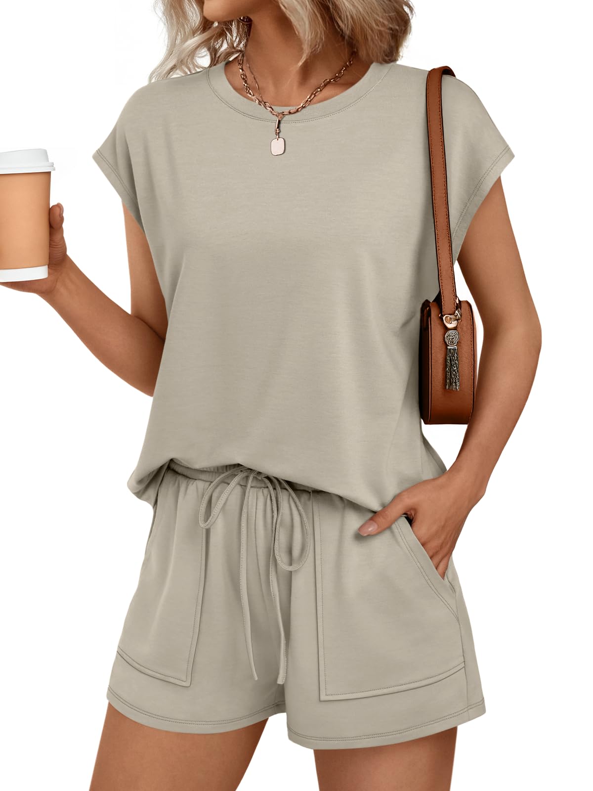 FEATURE --- The package including 1 x short sleeve t-shirt and 1 x short. The top has classic v neckline and a pocket. The short has elastic drawstring and side pockets. The cute top is perfectly complemented by shorts. Casual and sexy in daily life.
