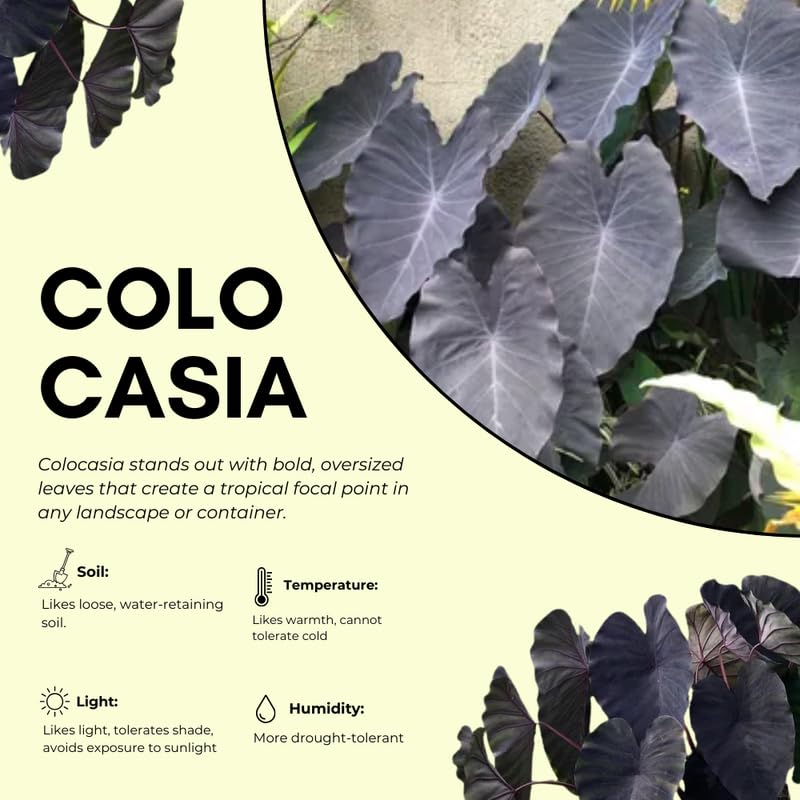 Colocasia Esculenta, Colocasia Live Plant, Elephant Ears Live Plant, Esculenta Taro Live Houseplant, 5-8 Inc Tall, No Pot (Black Colocasia)