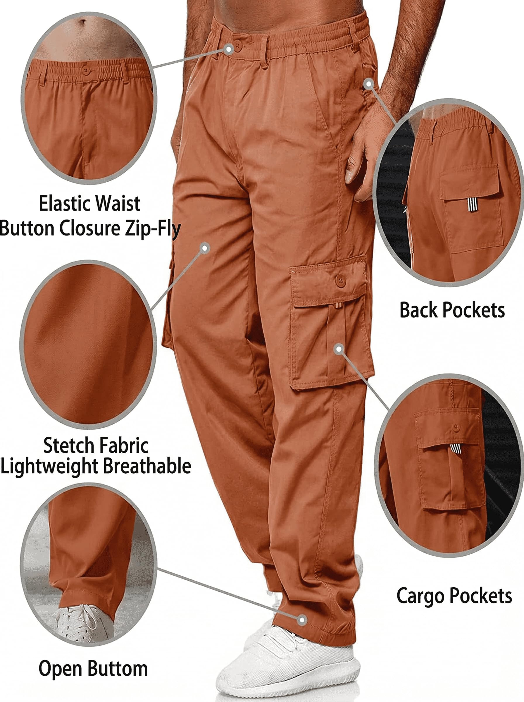 【DURABLE MATERIALS】65% cotton and 35% polyester.These cargo pants for men are built to last while maintaining breathability and comfort.Keep you comfortable all day long.
