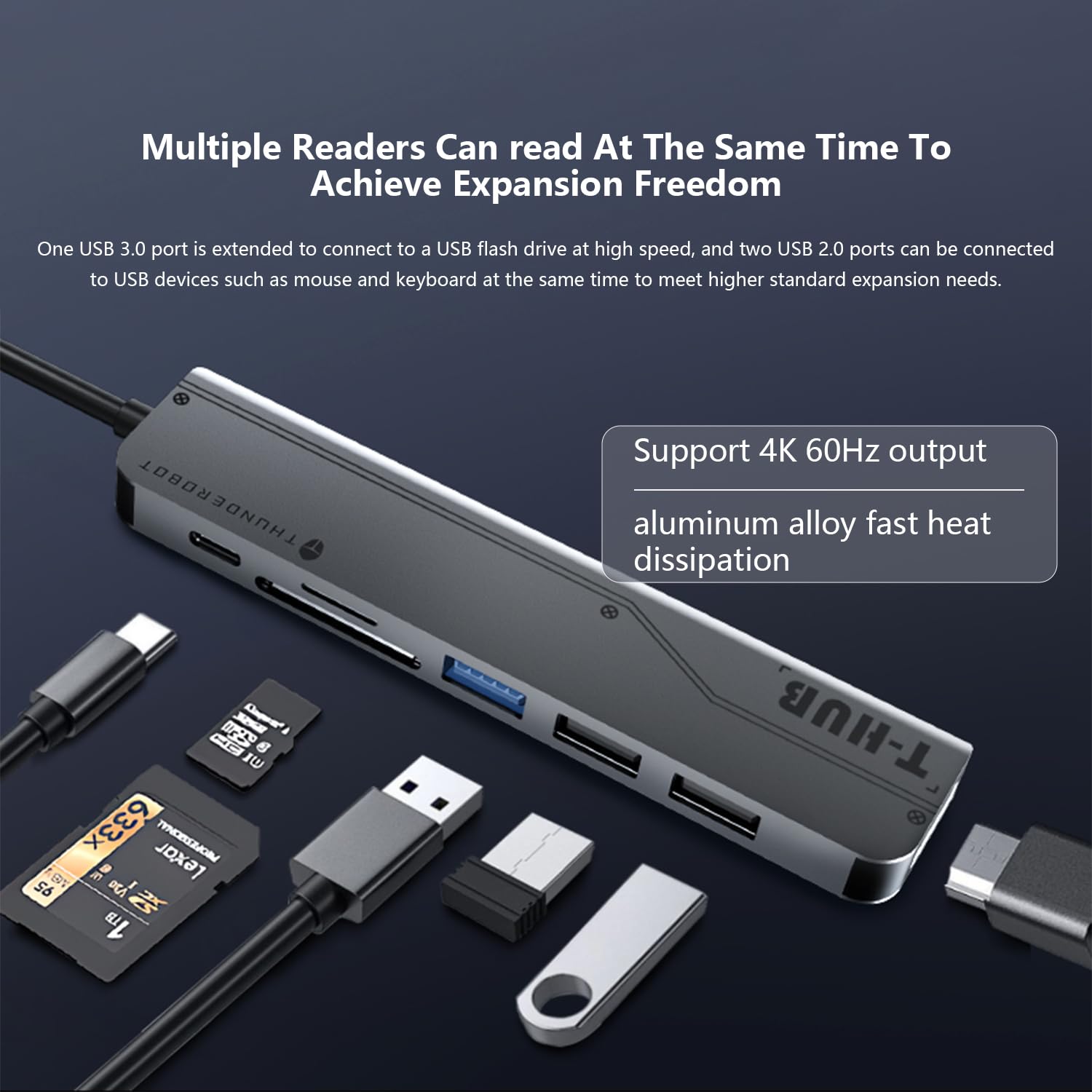 [Bundle] Bundle with 7-in-1 USB-C Hub - for Seamless Expansion. Featuring 1× USB 3.0, 2× USB 2.0, SD/TF card slots, HDMI, and Type-C ports, this aluminum-alloy hub supports 4K@60Hz display, high-speed data transfer, and multiple device connections at once. Compact, durable, and plug-and-play — an essential all-in-one companion for your bundle setup.
