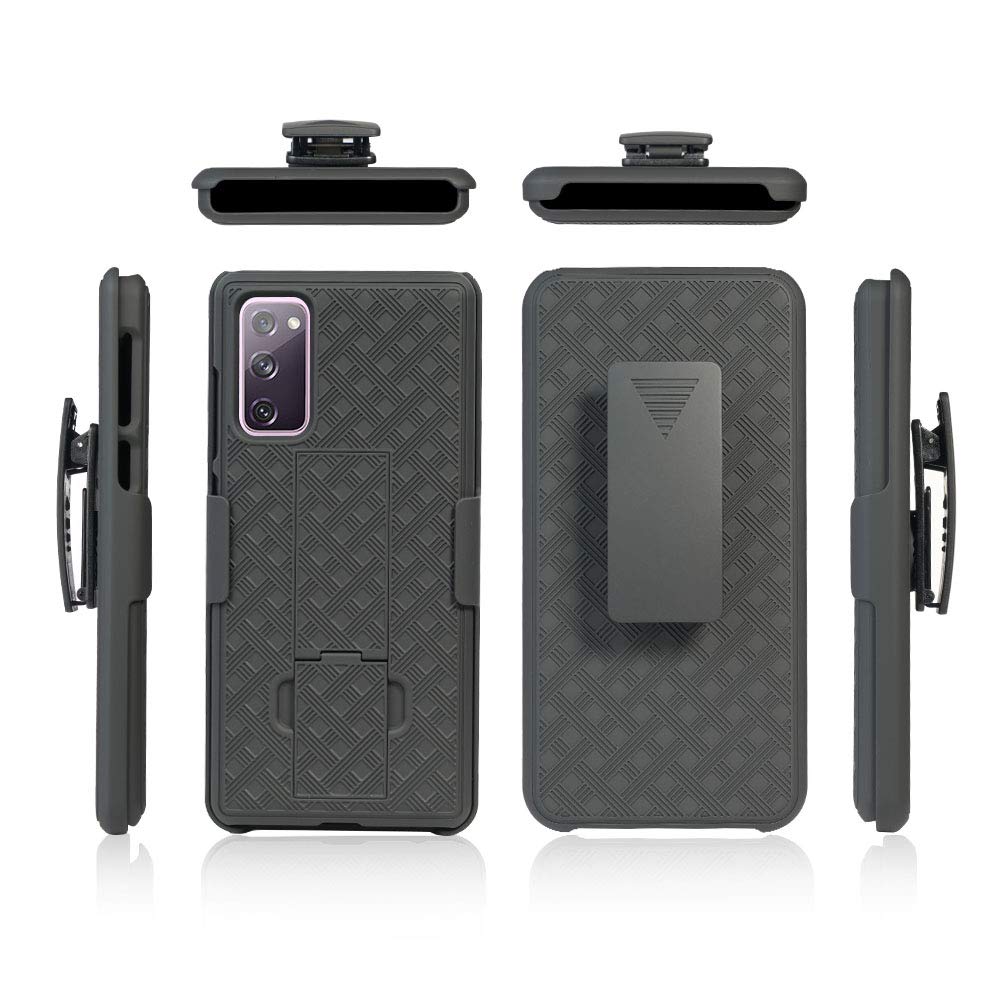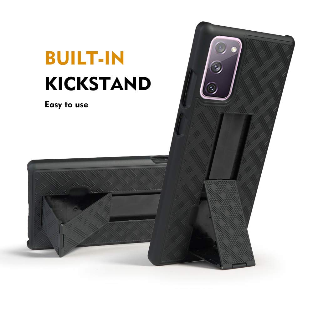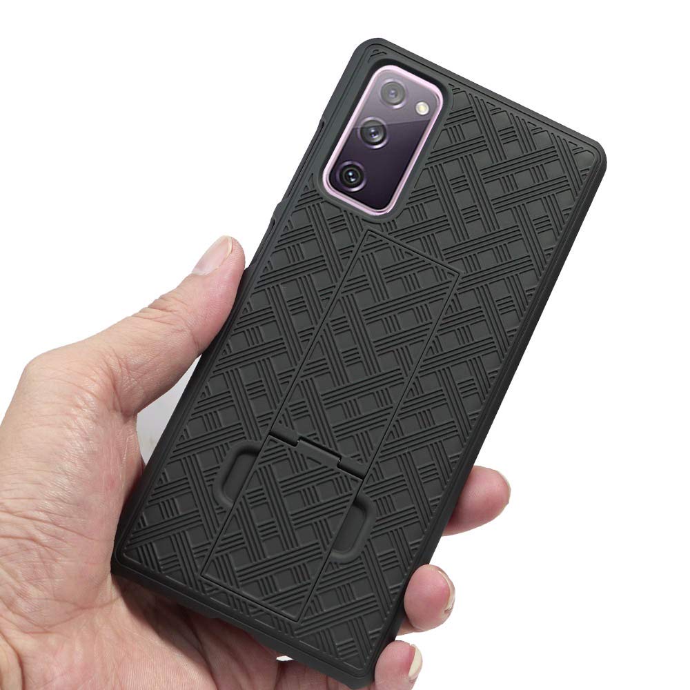 Sumsung Galaxy S20 FE Hybrid Combo Case: Slim low-profile case w/ built-in stand and holster clip made of rigid plastic, rubber-like feel for a non slip grip.It can be easily removed from holster without removing back shell case.
