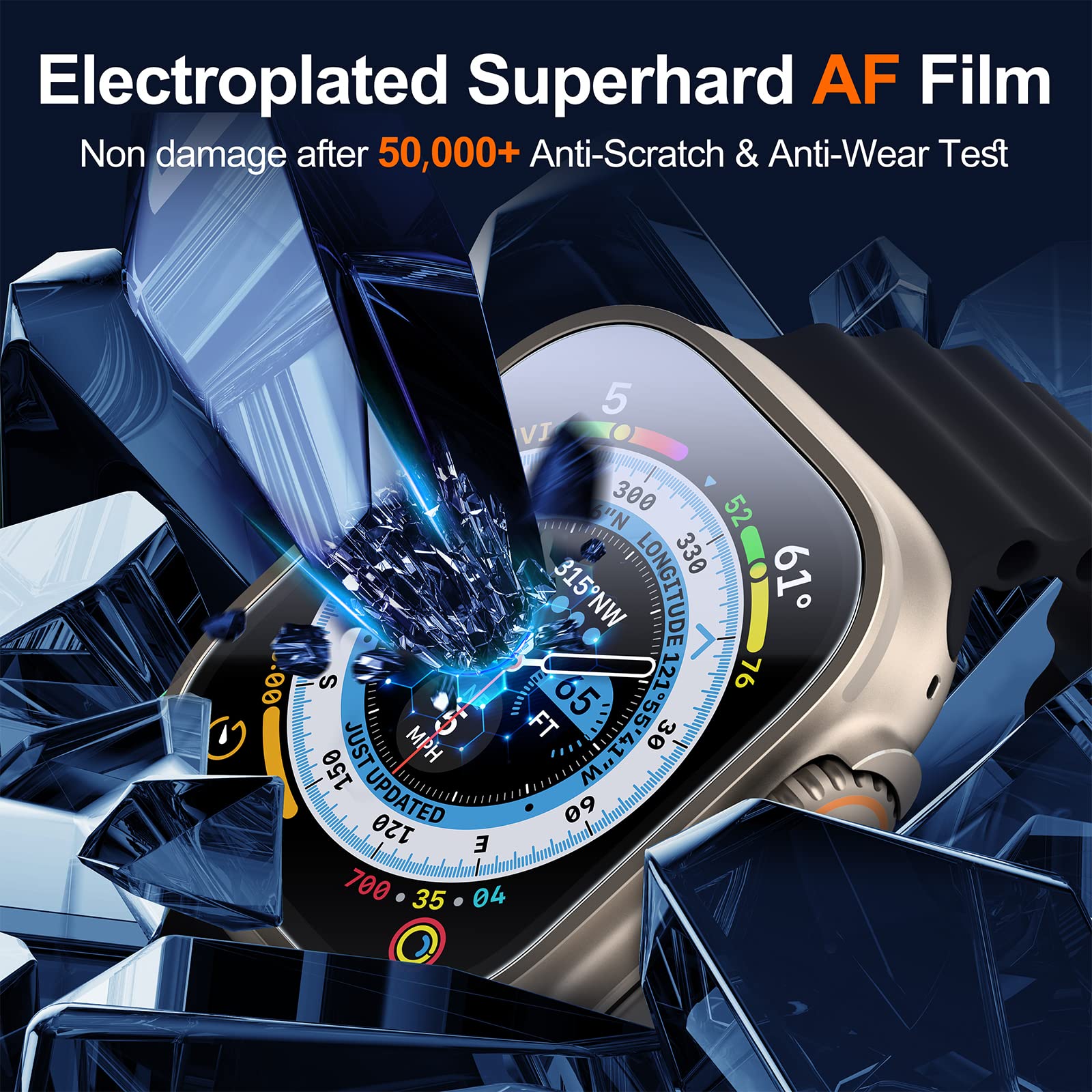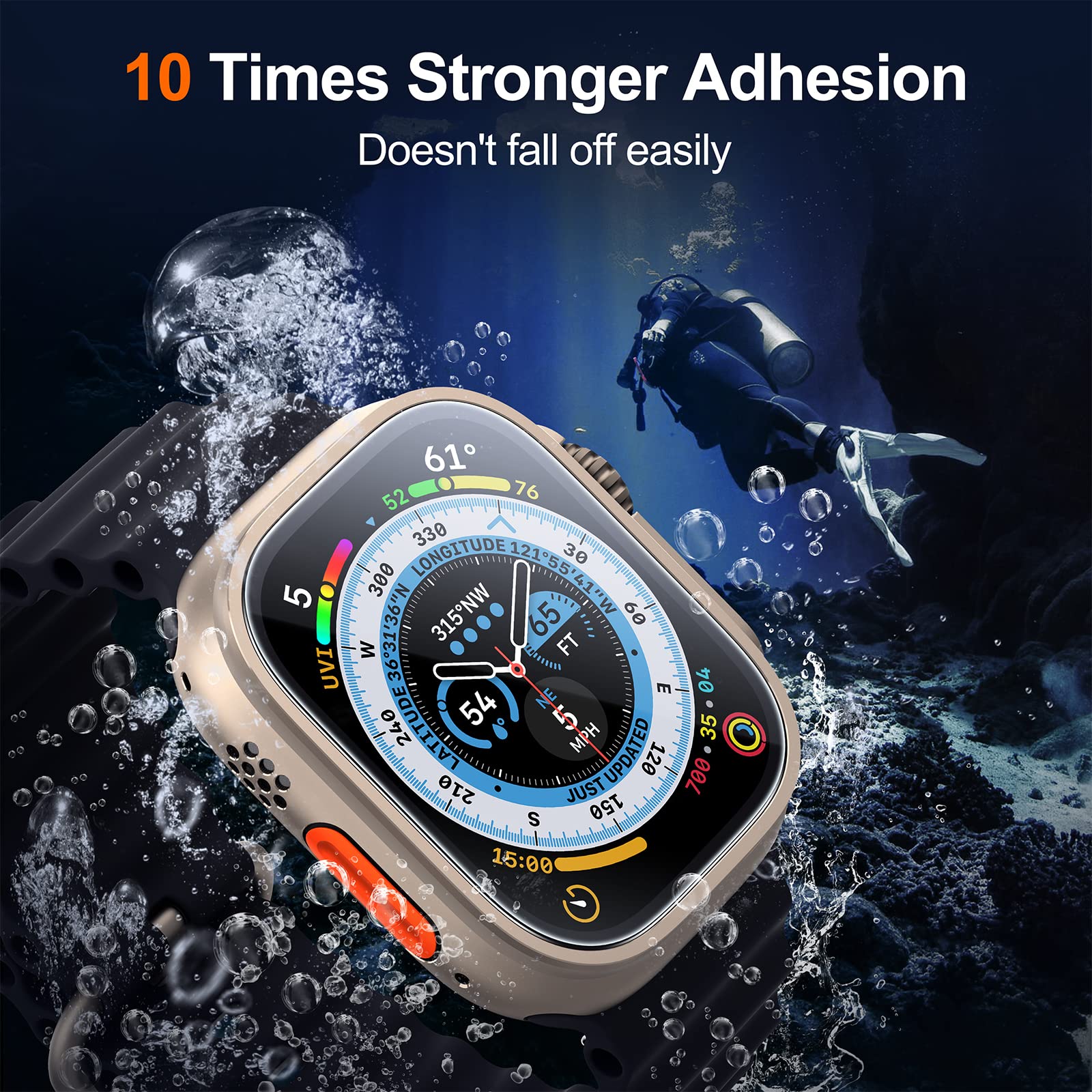 Upgraded Shockproof Screen Protector: UniqueMe’s Apple Watch Ultra / Apple Watch Ultra 2 / Apple Watch Ultra 3 49mm screen protector is made of tempered glass, the outermost layer material of the glass screen is an upgraded version of the 9H nano-explosion-proof layer, which enhances its anti-drop, explosion-proof and anti-scratch capabilities, which would massively increase its protection capabilities for your iWatch Ultra