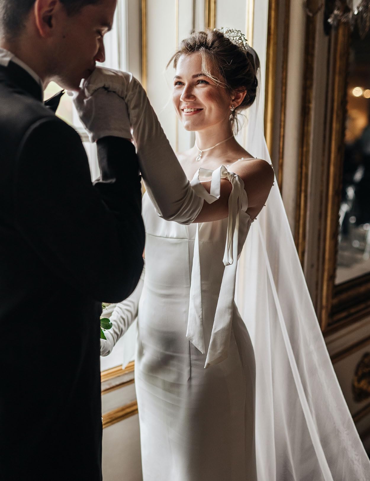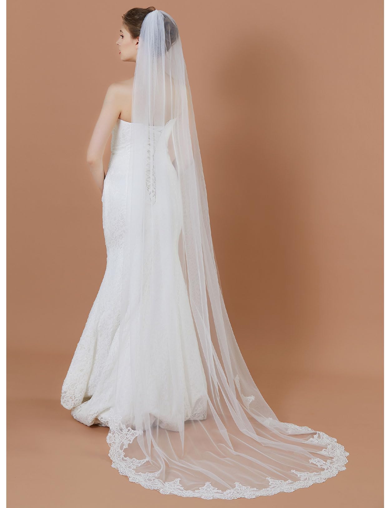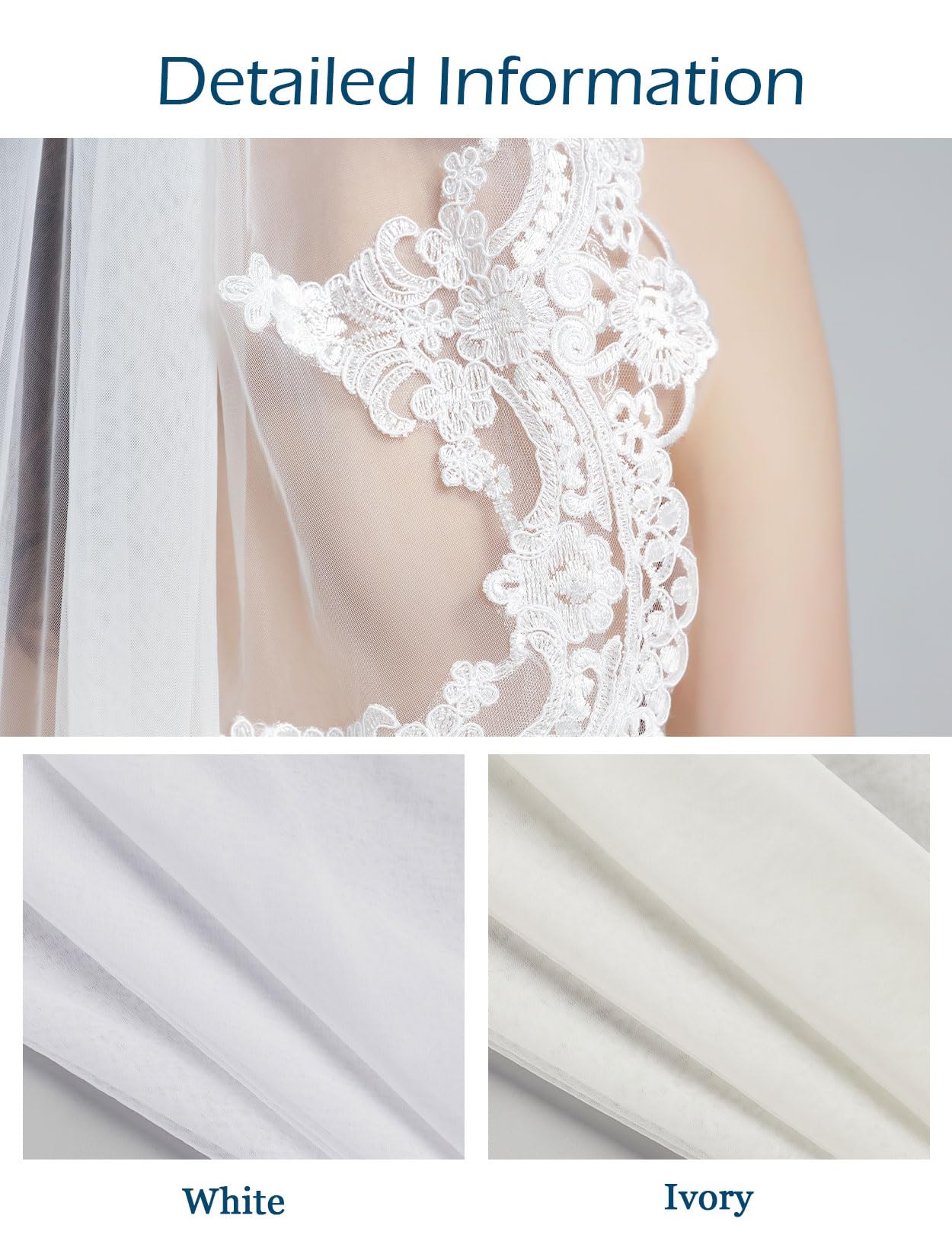 ILLUSION BRIDAL TULLE -- Premium tulle material make the veil looks more lightly and transparent. This cathedral veil is soft, lightweight and flow easily with wind.