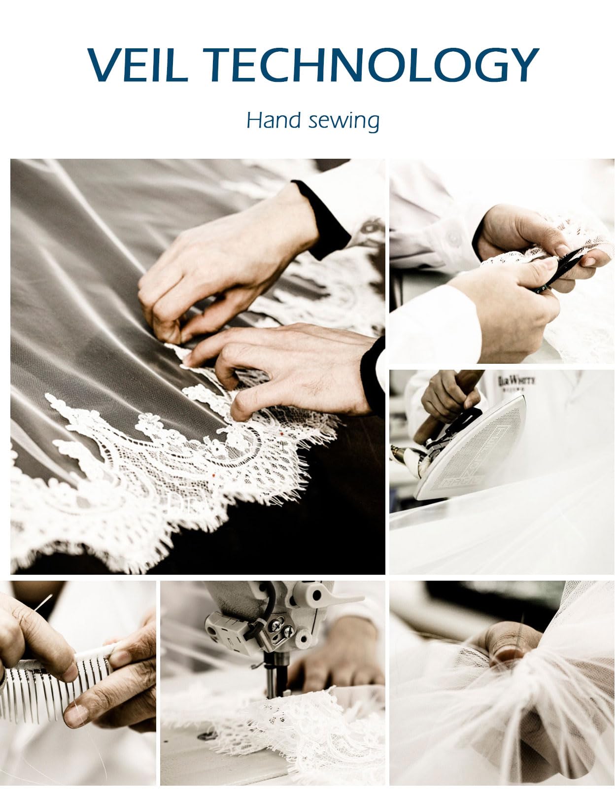METAL COMB -- Hand Sewn with Metal Comb. Easy to put on and take off without disrupting hairstyle. Hang and steam for wrinkle erase.