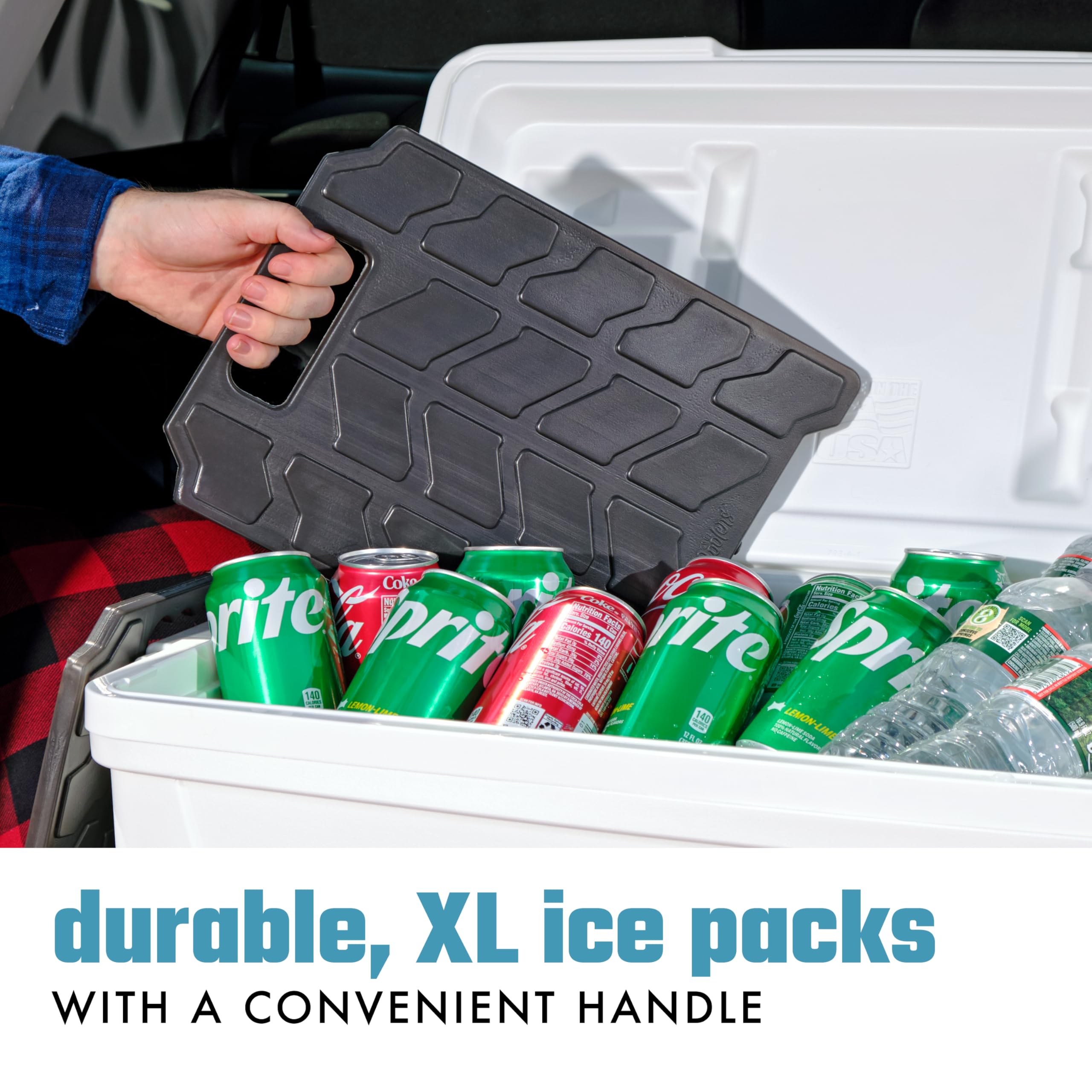 XL COOLER ICE PACK - Our large ice packs for coolers are built for durability and ultimate cooling power. Reusable ice packs measure 10" x .5" x 13". It's slim design allows the ice packs to fit seamlessly into the top or sides of any large cooler.