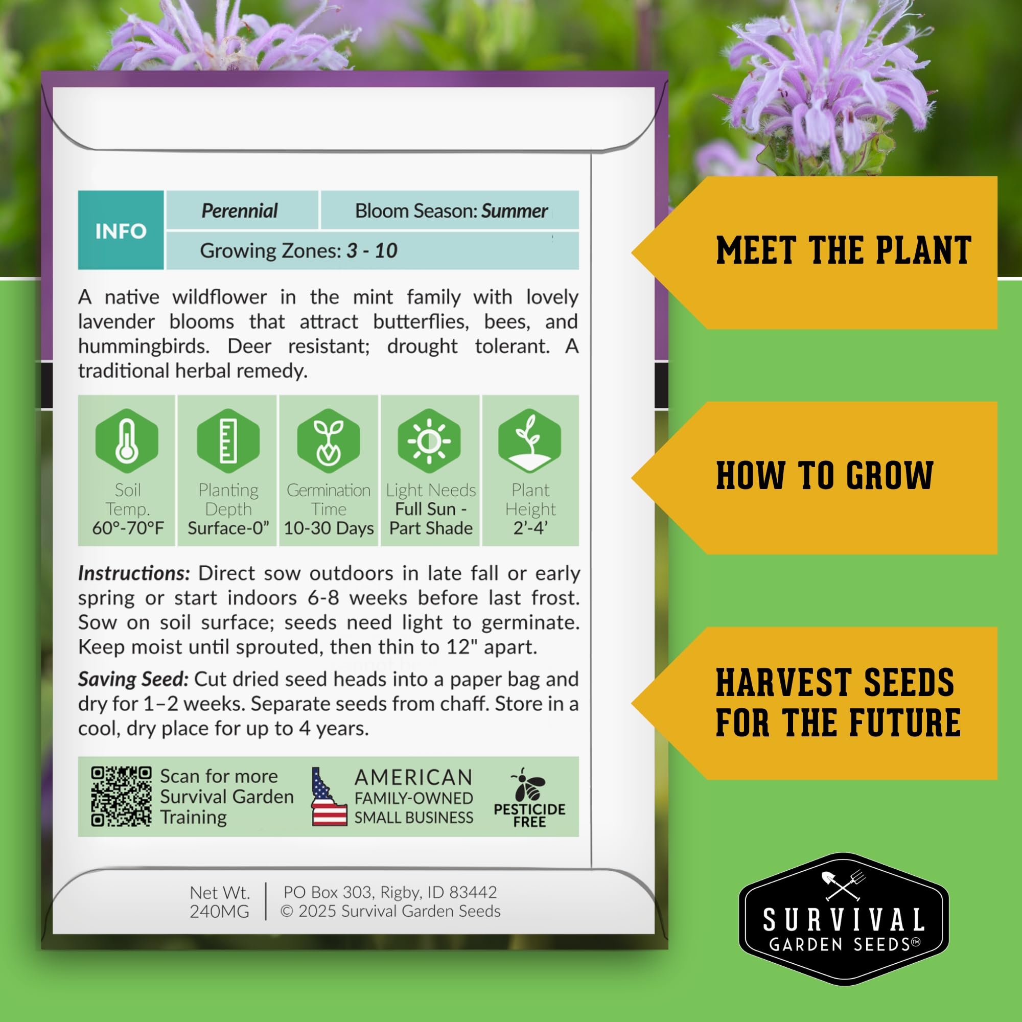The Info You Need to Grow - These bee balm bergamot seeds come in a beautiful paper packet with instructions for successful growing and germination in your home garden, including tips for saving seeds post-harvest. Great for all gardeners.