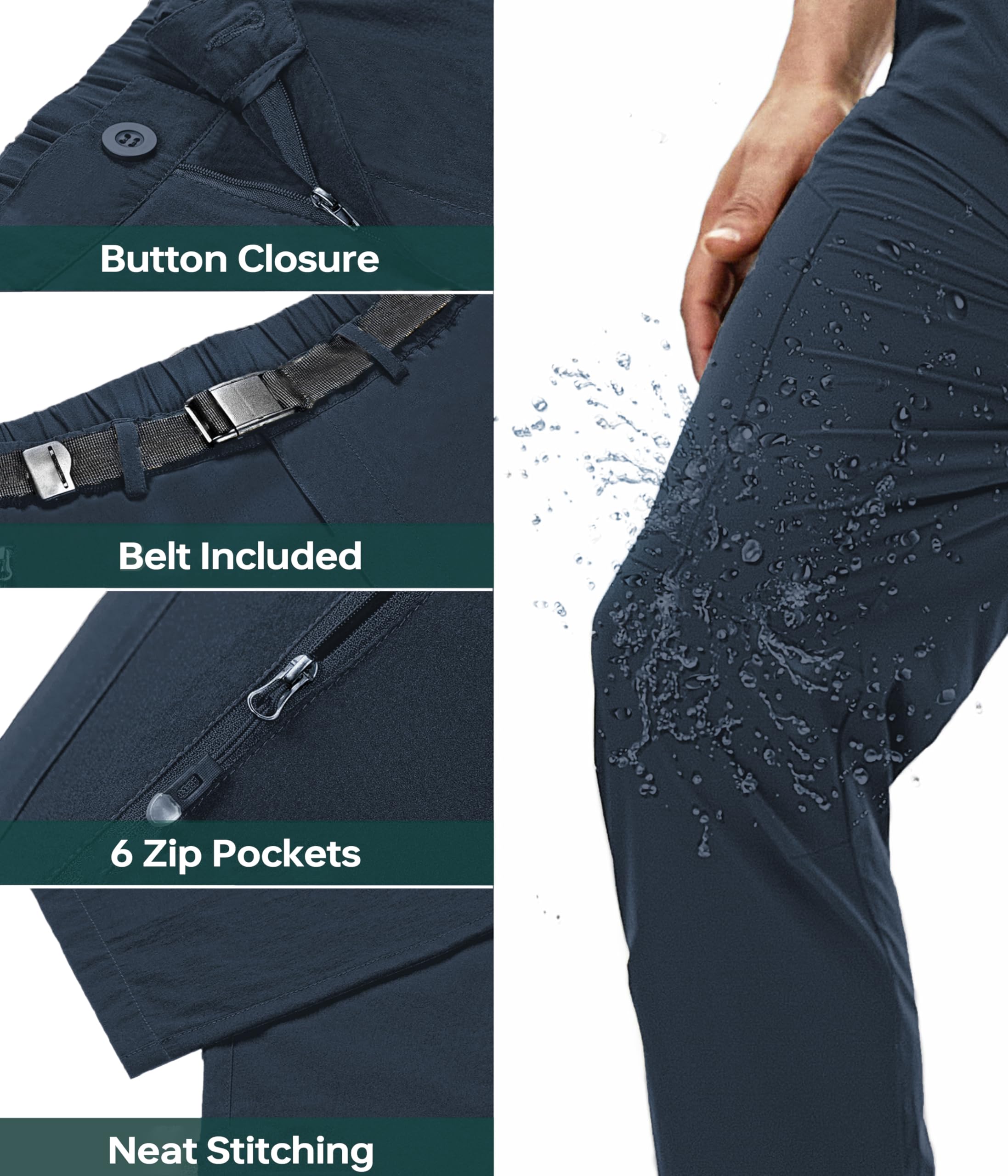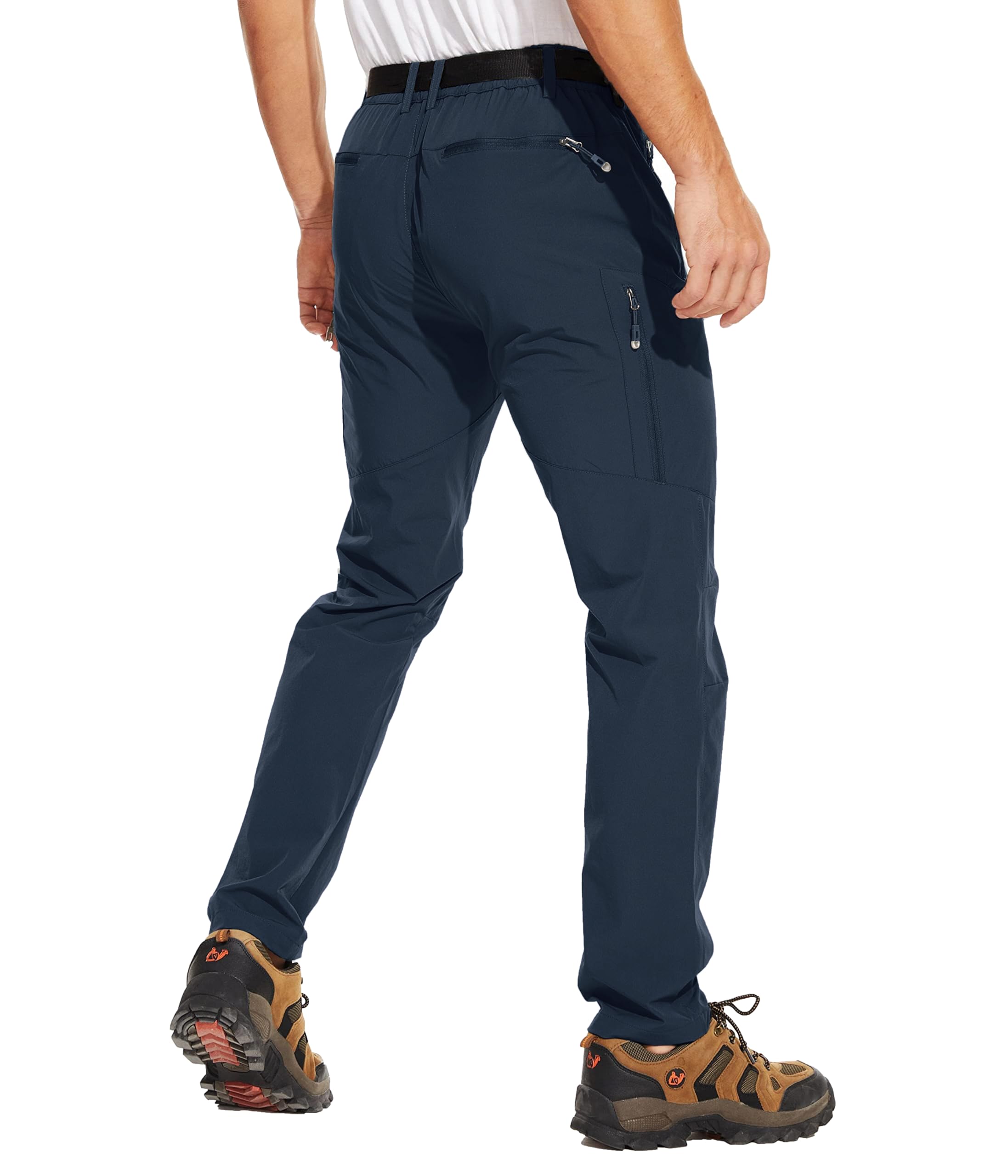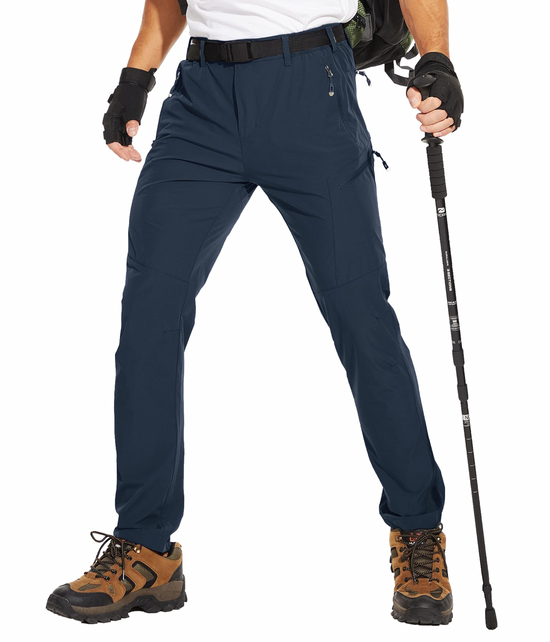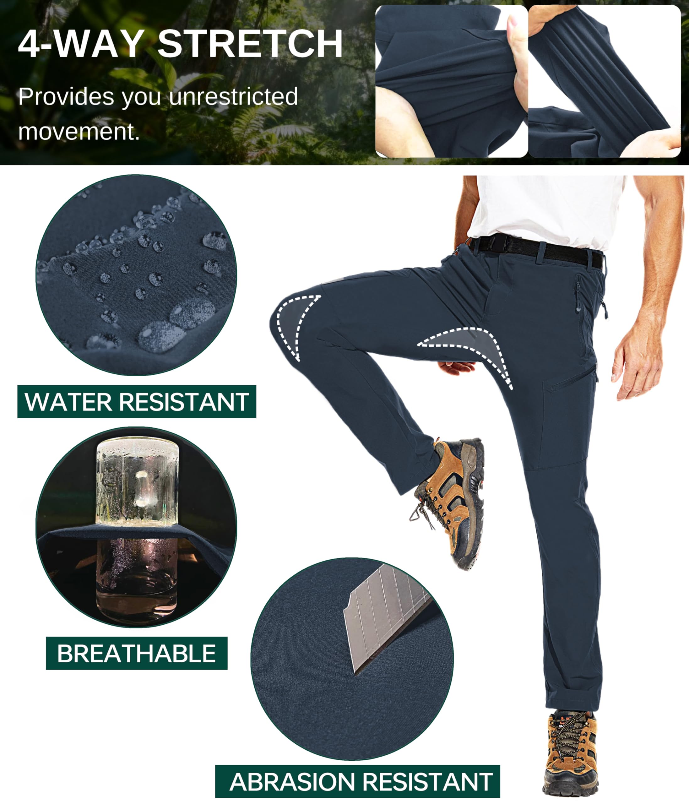 【Stretchy & Quick Dry Material】Our travel pants for men are made of durable material, which is 4-way stretch, quick dry and water resistant. No more annoyance of moisture when hiking with these waterproof hiking pants men