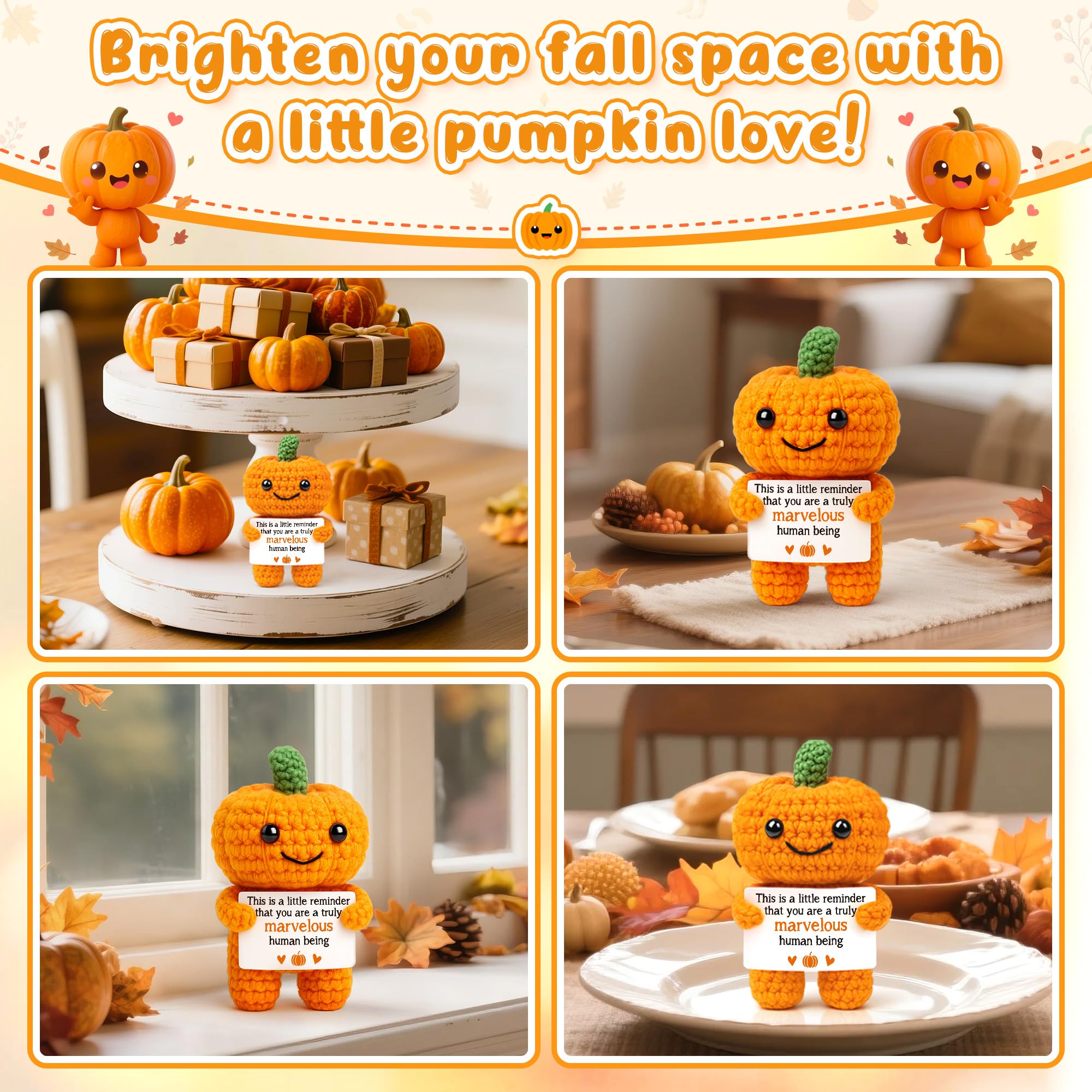 Adorable & High-Quality Fall Desk Decor This isn't just an emotional support gift; it's also darling pumpkin decor! Place it on your desk, shelf, car dashboard, or anywhere you need a little pop of positive energy. The high-quality handmade crochet craftsmanship is clear in every detail. It’s a beautiful, functional decor piece that comes with its special message card, adding charm and positivity to any space