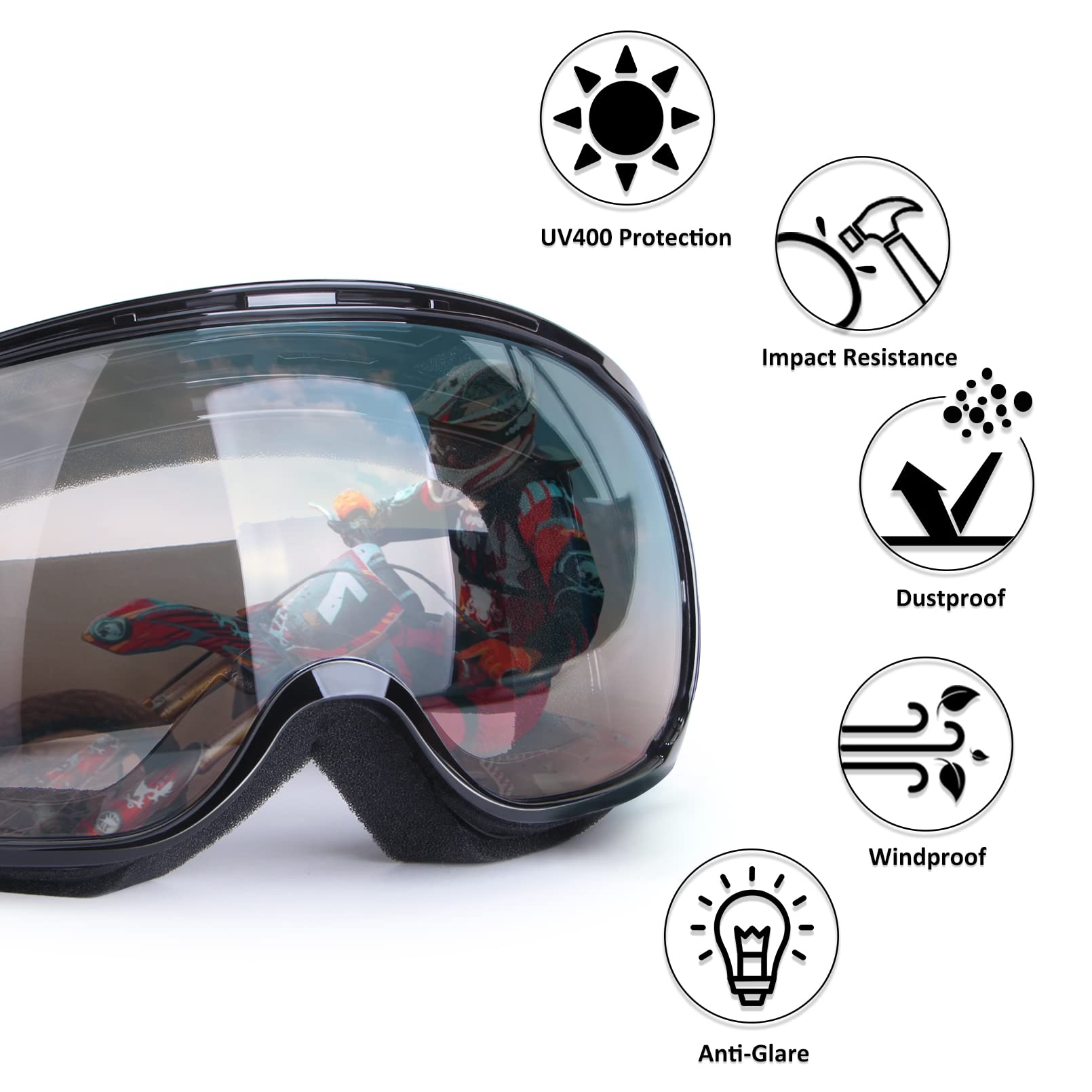 Perfect protection gear for you - Best ski goggles, best snowboarding goggles, Motorcross goggles, safety goggles, motorcycle riding goggles, and snow mobile goggles. Suitable for multipurpose usage, outdoor sport, motorcycling, skiing, etc.