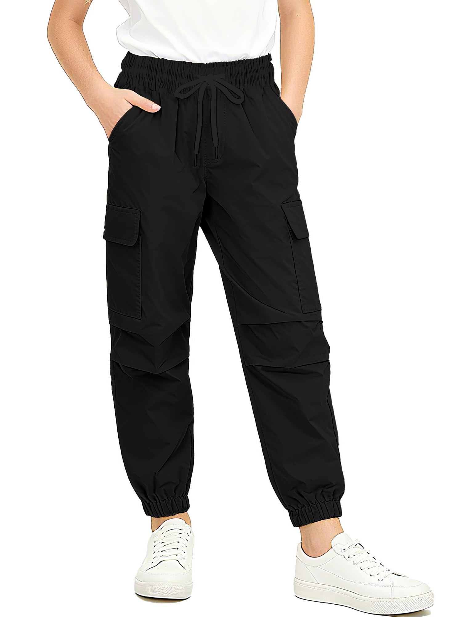Features:Elastic High Waist,Ankle Cuffs and Tapered Leg. Fashion Parachute Pants,Multi Pockets are Convenient and Practical for You to Carry The Small Things.