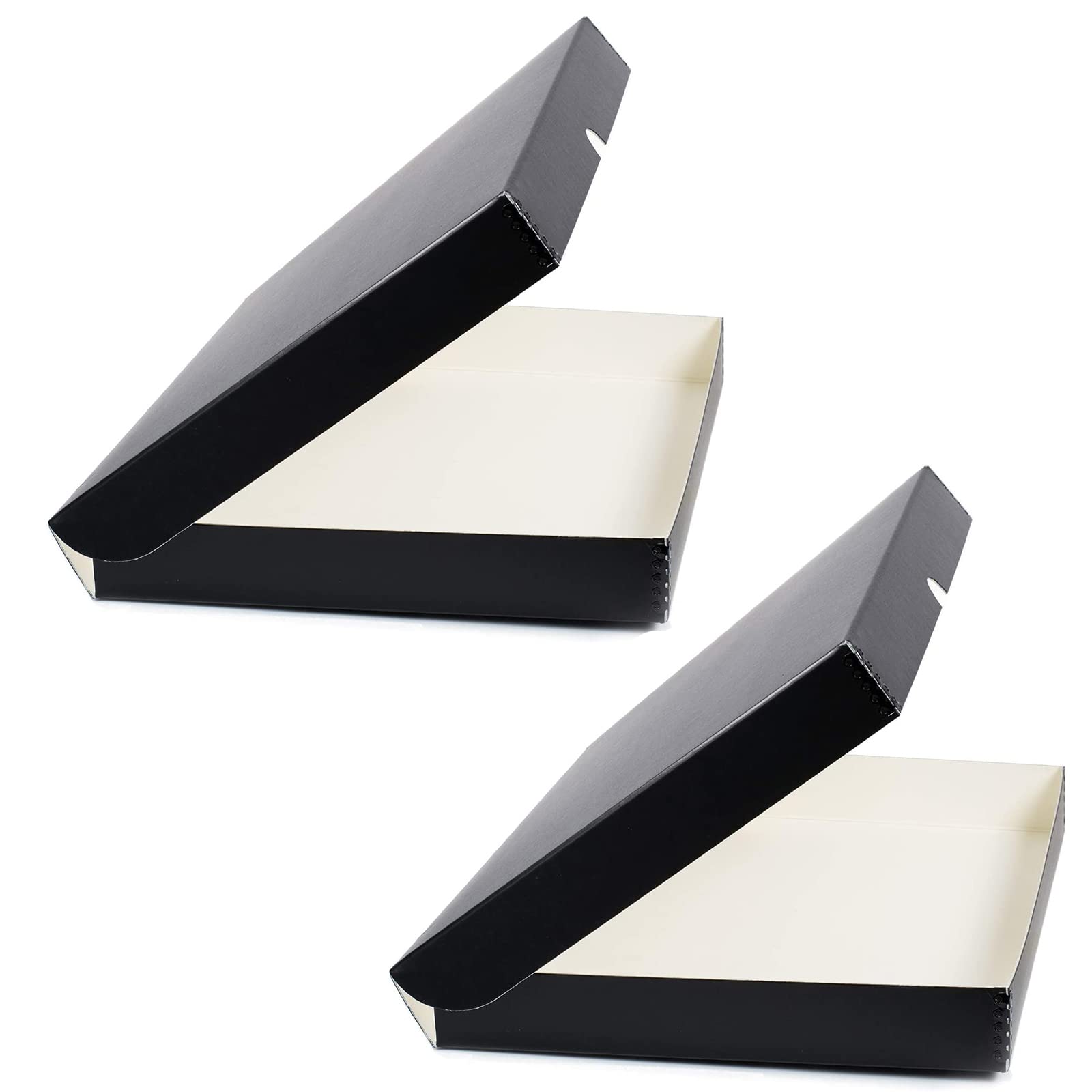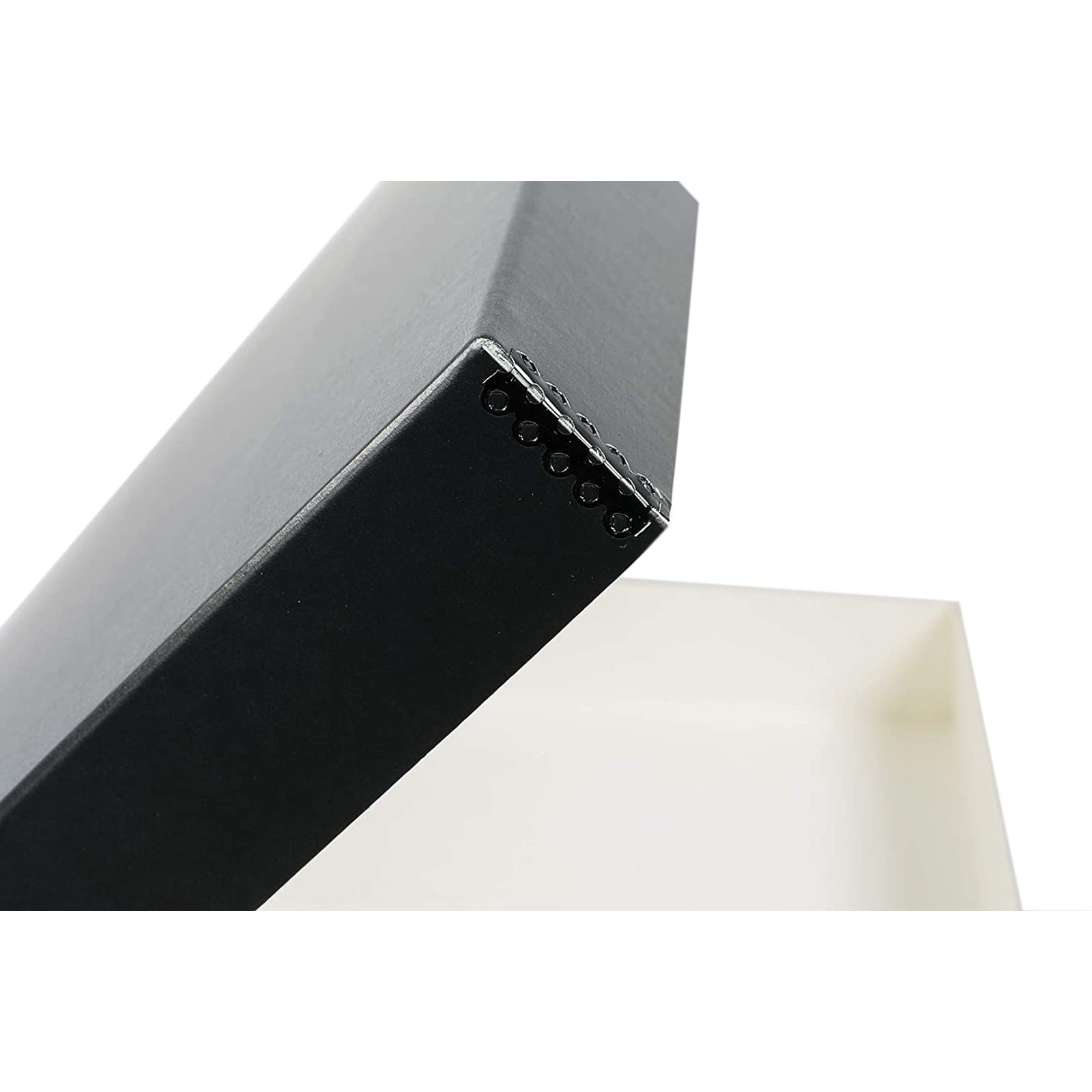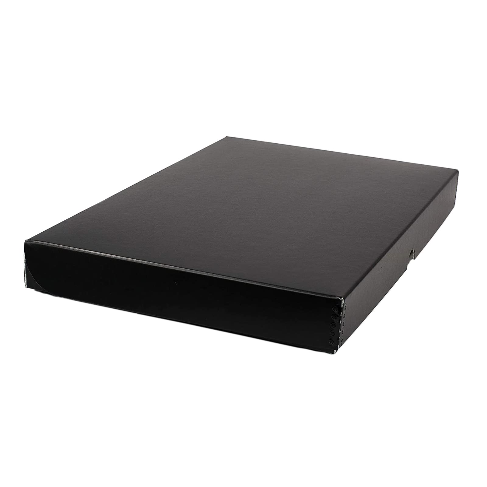 Acid-free and Lignin-free boxes manufactured in the US from Black 60pt archival boxboard with metal edge construction for additional strength