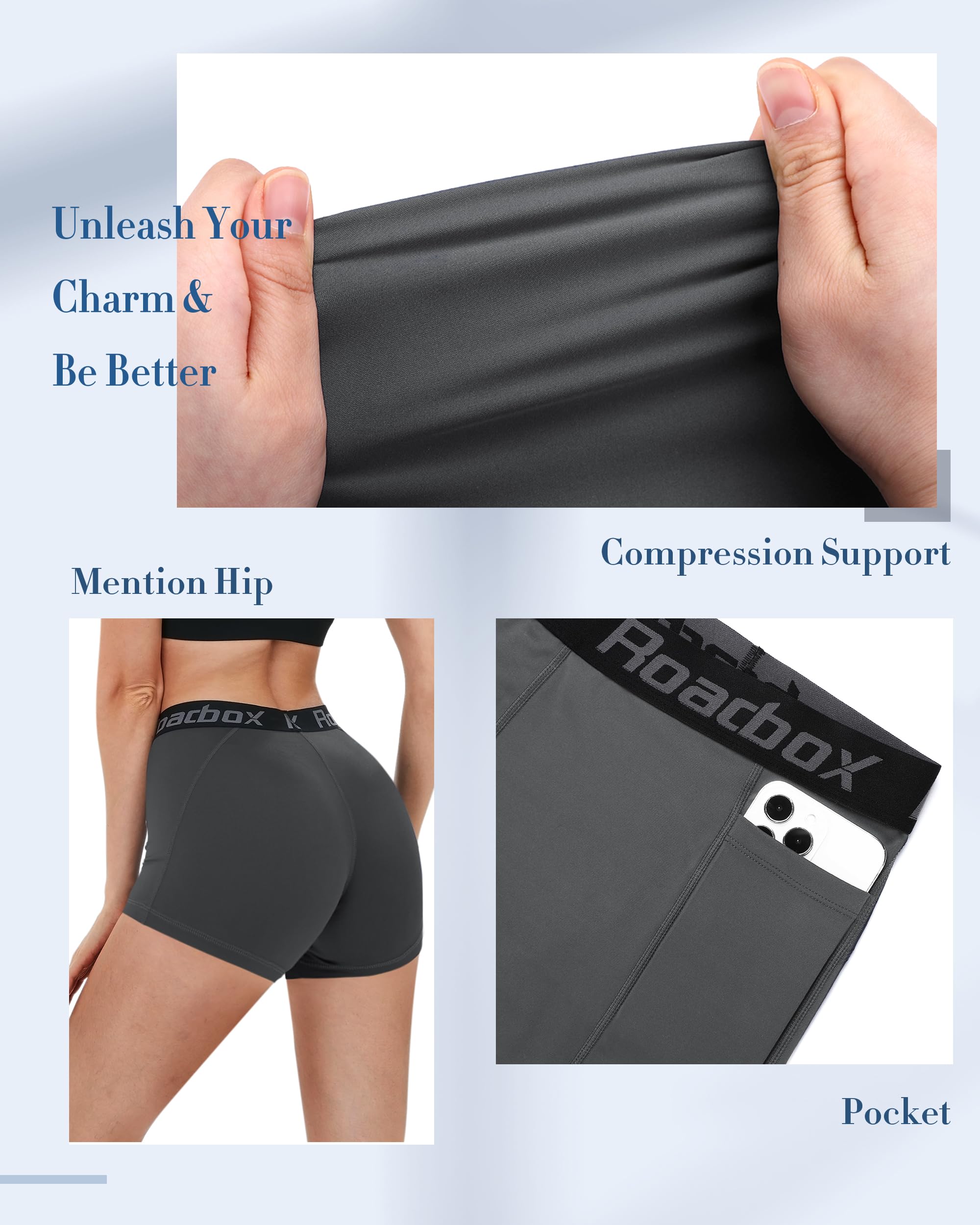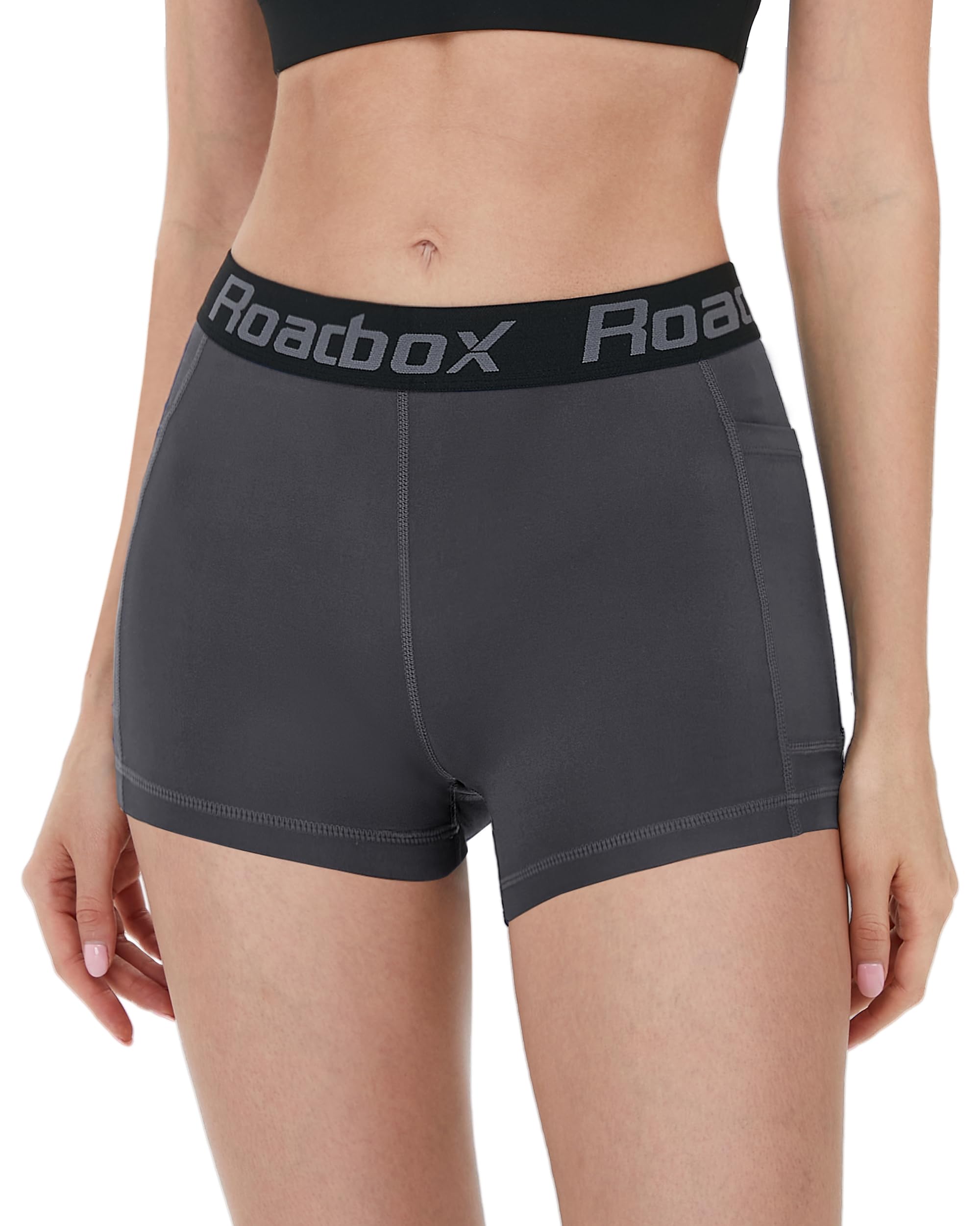 Description Premium Fabric for Comfort and Performance These women’s 5-inch compression pocket shorts are crafted from a high-quality blend of 75% polyester and 25% spandex. This combination offers excellent stretch, breathability, and moisture-wicking properties, keeping you dry and comfortable during even the most intense workouts. The fabric is designed to retain its shape, ensuring long-lasting comfort and support. Ergonomic Design for a Perfect Fit Engineered with ergonomic principles in mind, these shorts are designed to fit the female body perfectly, offering added support and comfort. Whether you're doing yoga, running, or engaging in high-intensity training, these shorts help you stay in your best form. Convenient Pocket Design for Easy Storage With two practical side pockets, these shorts allow you to conveniently store your phone, keys, or other small essentials while working out. This thoughtful design adds extra functionality and ensures you have everything you need without compromising flexibility and mobility. Variety of Colors and Sizes Available in a range of colors including classic black, light gray, mist blue, navy, and gray pink, these shorts are designed to complement any workout wardrobe. Sizes range from XS to 2XL, ensuring a perfect fit for women of all shapes and sizes. Perfect for Multiple Sports and Activities Whether you're playing volleyball, practicing yoga, running, cycling, or hitting the gym, these shorts are made to perform. They withstand the stretching and pressure of various activities, giving you the flexibility and freedom you need to excel. Roadbox Commitment to Excellence Roadbox is dedicated to providing high-quality, functional apparel that prioritizes comfort and durability. These compression shorts carry on our brand’s mission, using premium fabrics and thoughtful craftsmanship to meet the needs and expectations of women who demand the best in athletic wear.