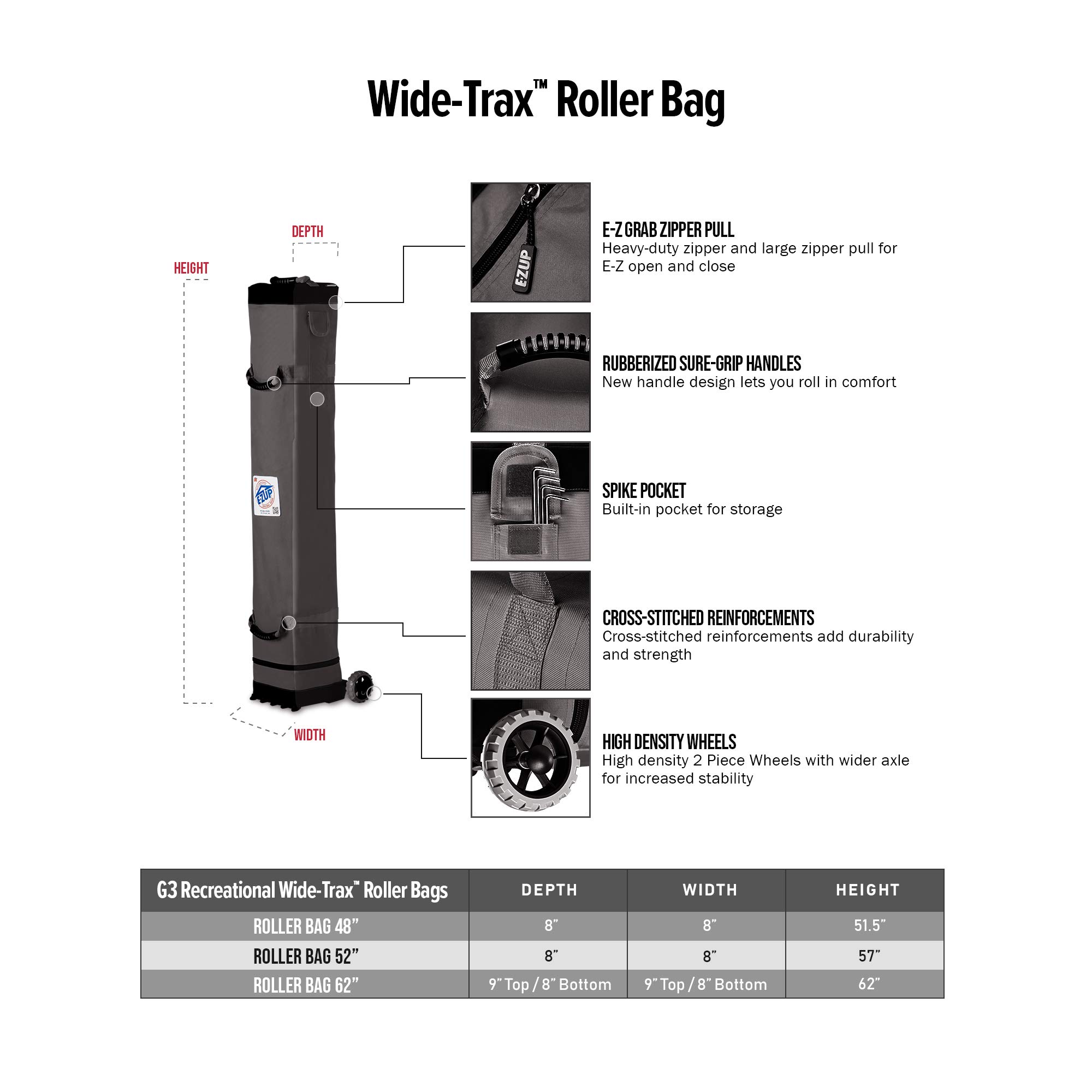 Wide-Trax Roller Bag: High density wheels with Wide-Trax axle for superior stability, Sure-Grip large ruberized carry handles. Heavy-Duty Zipper for E-Z open & close.