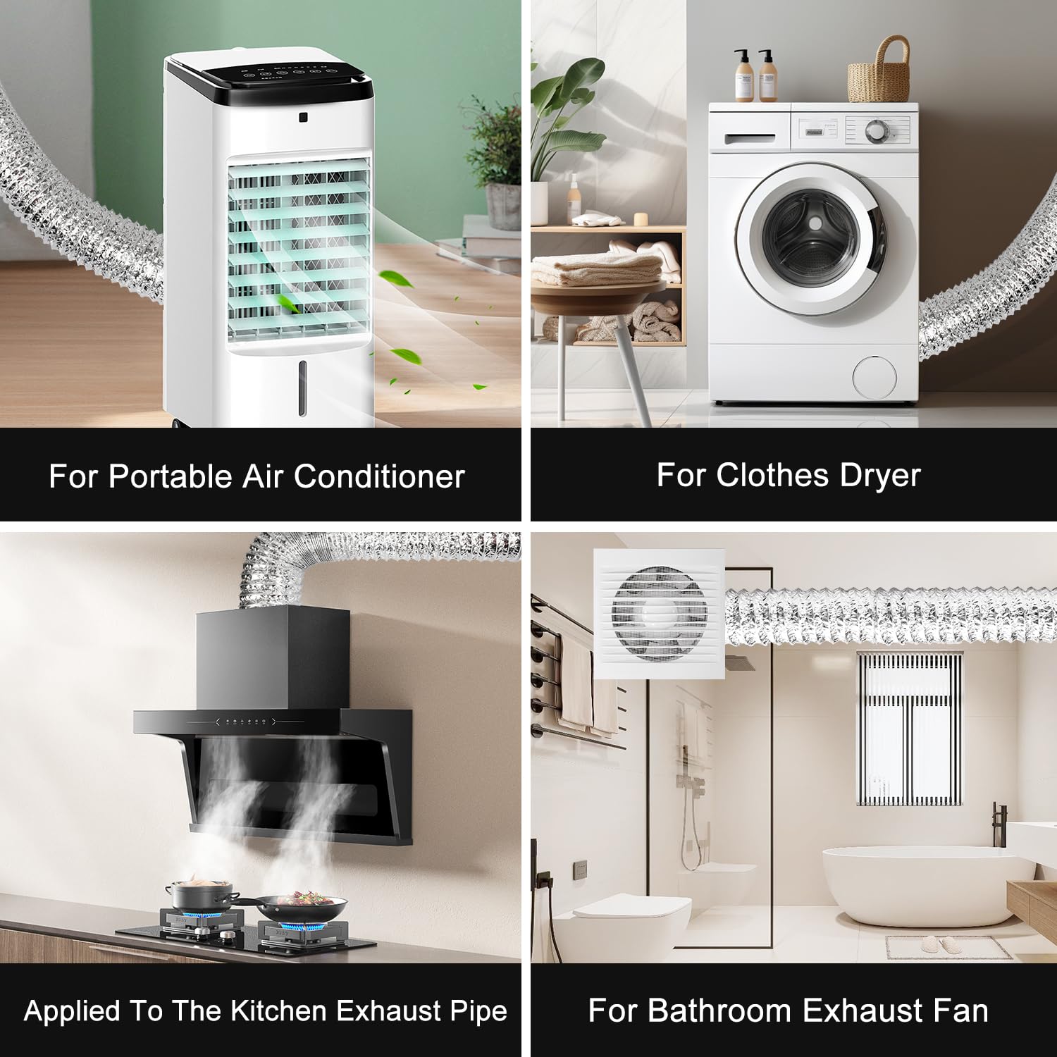 WIDELY USED: The flexible dryer vent hose suits HVAC system. It will move and deliver air in Kitchens (cooking exhaust), Green Houses and Grow Rooms (Air Circulation, Intake, Exhaust and Light Fixture Cooling),Bathrooms (Smell and Moisture Exhaust), Dryer Rooms, Grow Tents and other applications etc