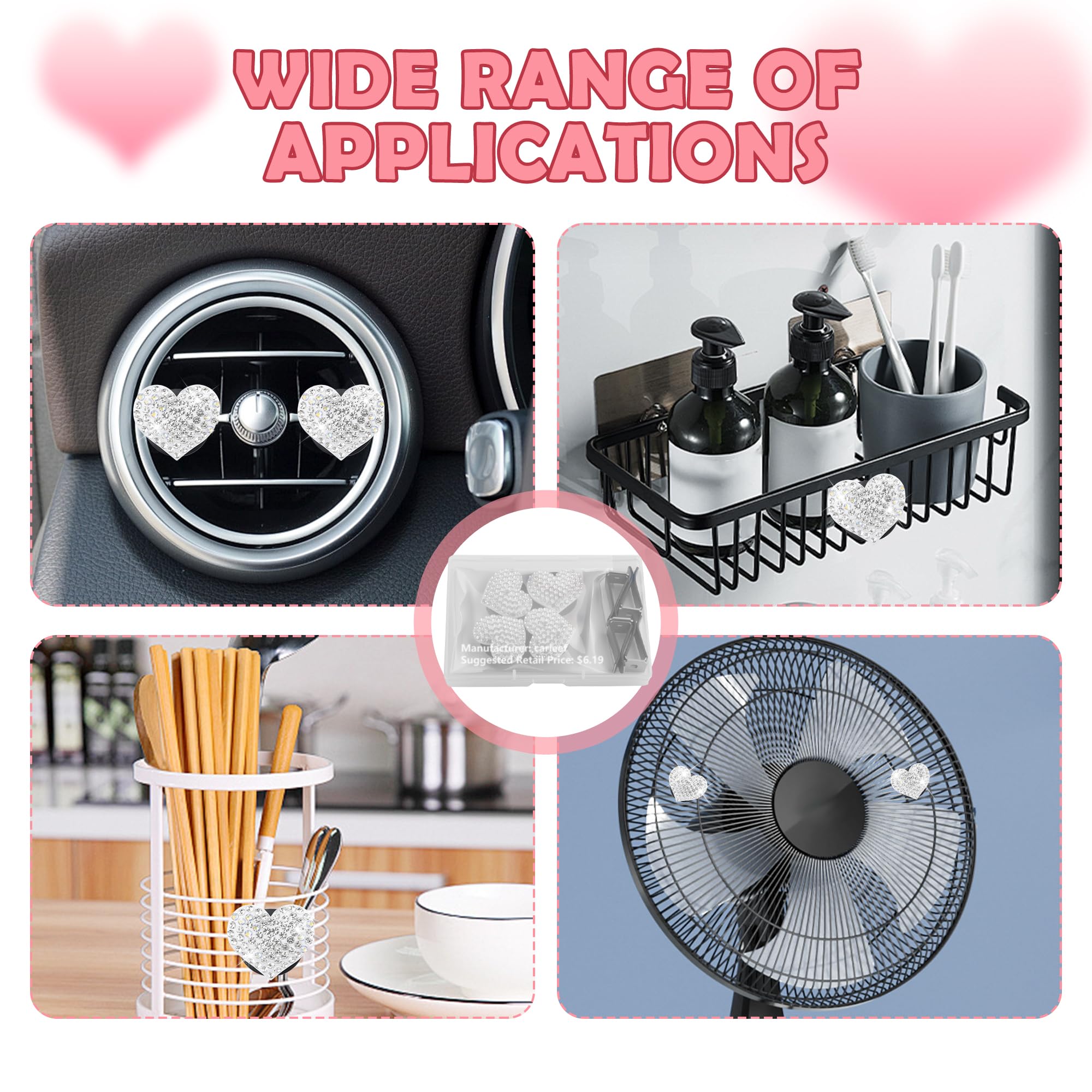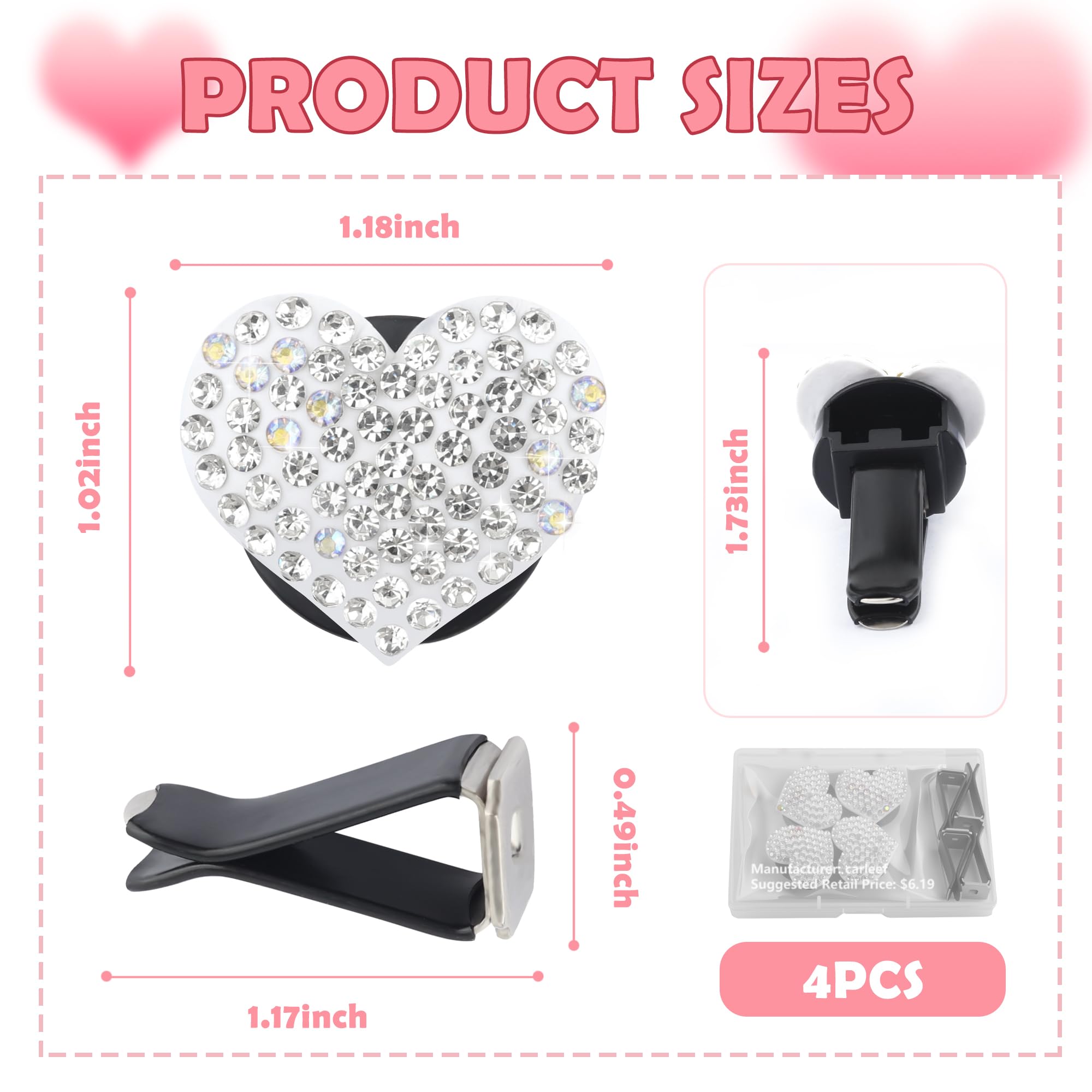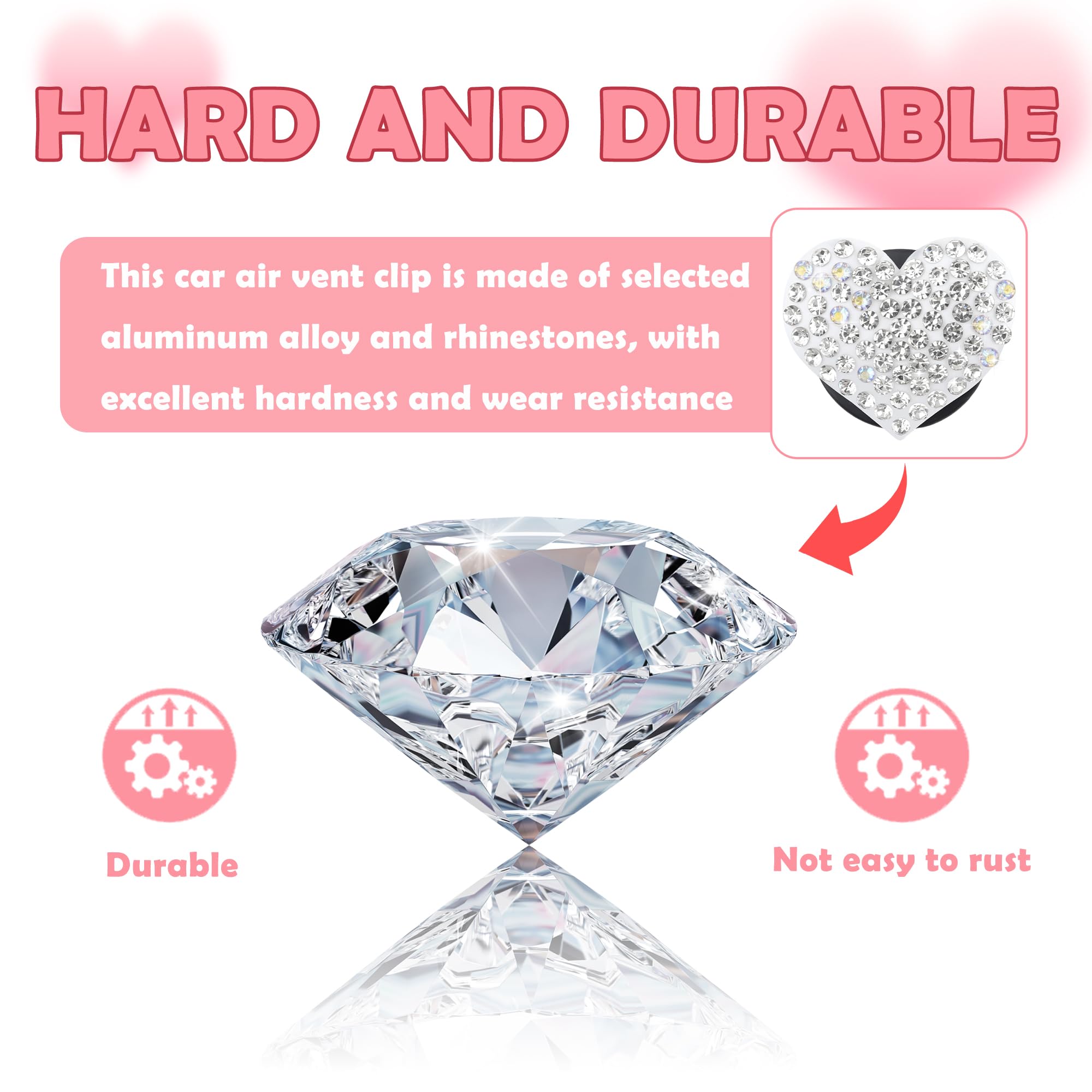Shiny Vent Clips - Create stylish and lightweight luxury car air vent clips to light up your car's interior! With small and exquisite heart shape design, inlaid with several sparkling rhinestones, polished texture, bright upgrade, more dazzling in the sun, adding unique personality and highlights for your car. We have white and pink colors for you to choose!