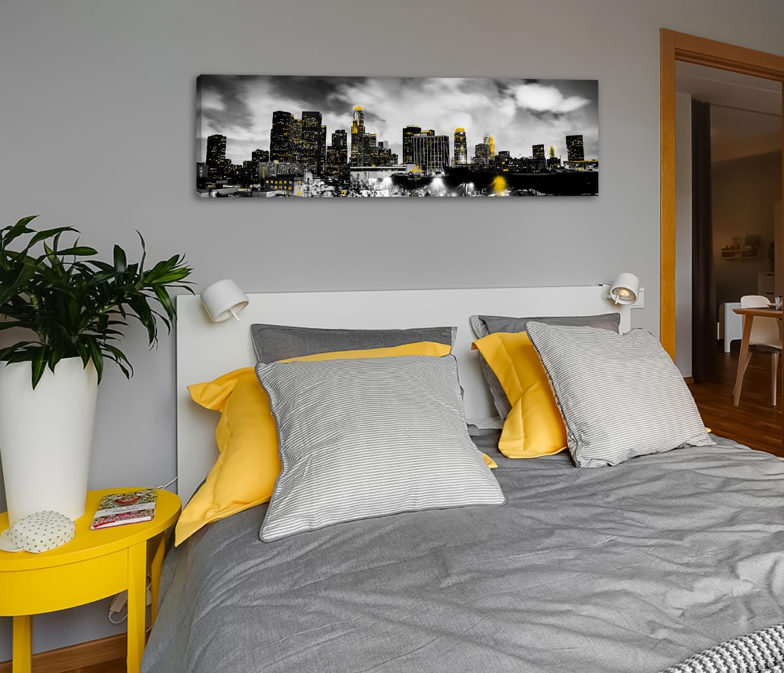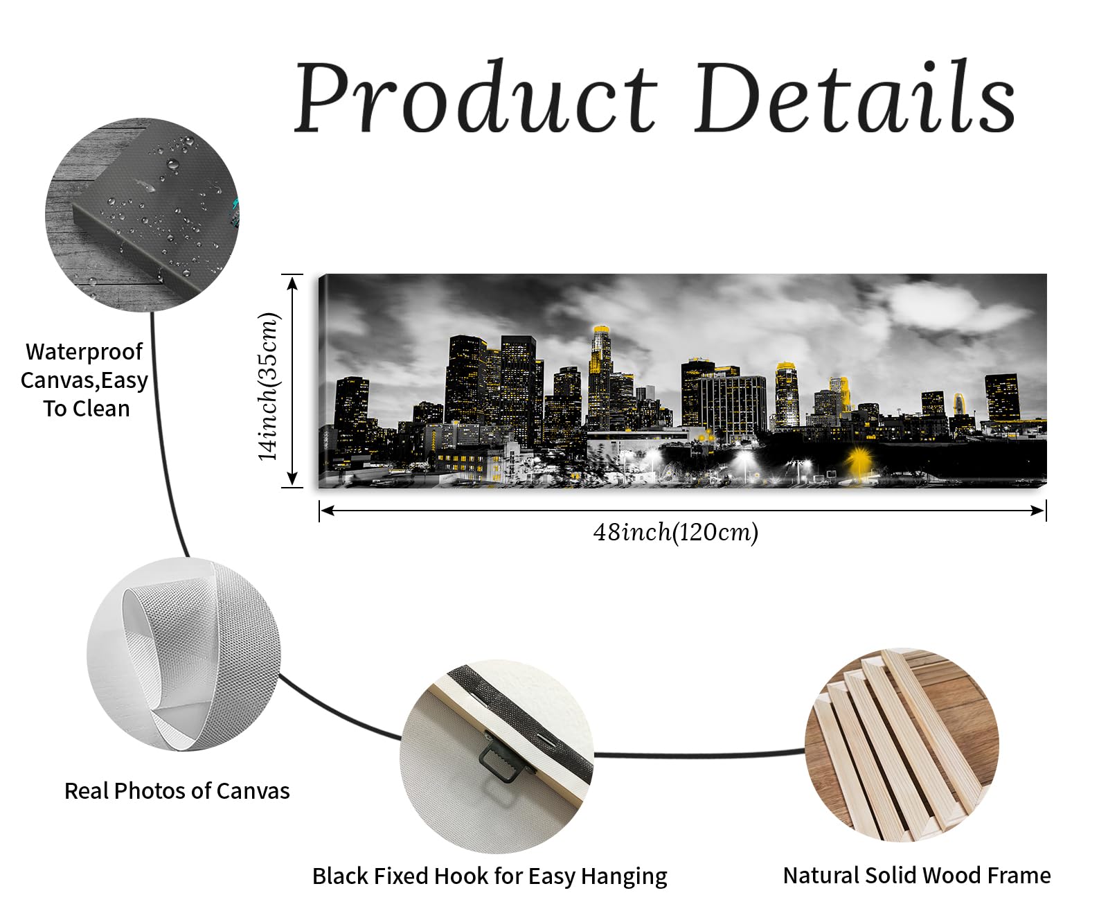 Los Angeles Wall Art City Size:14x48in (35x120cm).The designer carefully selected black and white city skyline canvas wall art design theme.For instance, American cities: Atlanta, Austin, Boston, Chicago and Cincinnati... ; London, England; Paris, France, etc. In an instant, it brings our heart to the beautiful scenery of every city, Perfectly matched to every traveler's home wall decoration.