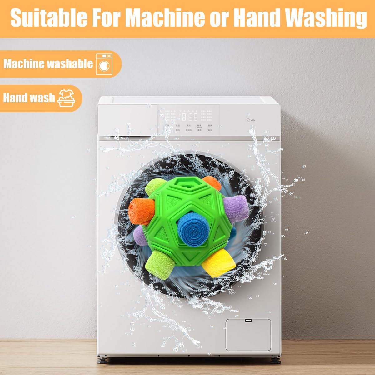 [Easy to Clean & Use] The pet snuffle ball can be simply hand washed and machine washed. Wash and dry it and then you can reuse it! This toy adds much more fun to your interaction with the dog. Untie the cloth strip at the end of the toy and put it into the snack, then roll it up and stuff it into the hole. The dog finds the snack through its sense of smell and induces the dog's sniffing instinct.
