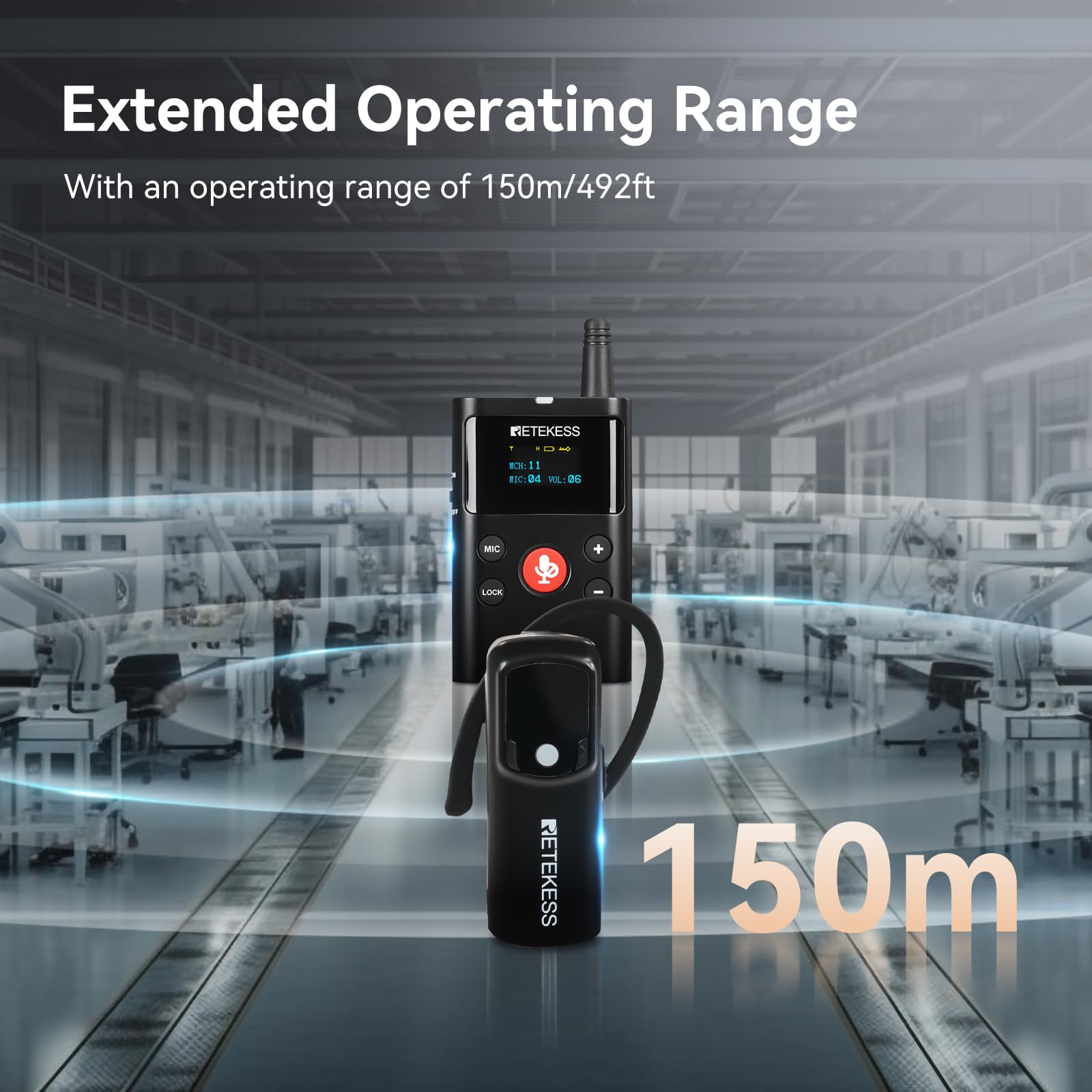Long working distance; for teams working in large areas; the 492ft of ear receiver working range fosters efficient collaboration; share ideas; coordinate tasks; boosting productivity and teamwork