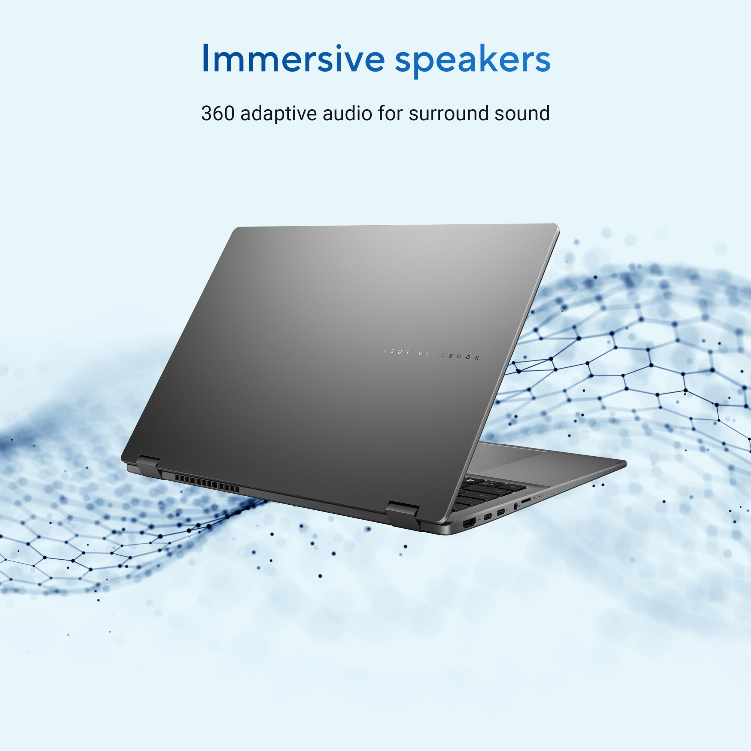 Ready to flip into boosted productivity? Meet the ultra-versatile, AI-powered ASUS Vivobook 16 Flip. Designed to streamline your workflow and transform the way you tackle tasks, it has a 360° hinge for maximum flexibility and supports ASUS Pen 2.0 (sold separately), adapting effortlessly to your needs. Equipped with the Intel® Core™ Ultra 7 processor (Series 2) and an Intel® AI Boost NPU, it also features a stunning 16-inch Lumina OLED NanoEdge touchscreen. With up to 22 hours of battery life3, it can power you through multiple working days. Ideal for students and professionals, this all-in-one device enhances your productivity like never before.