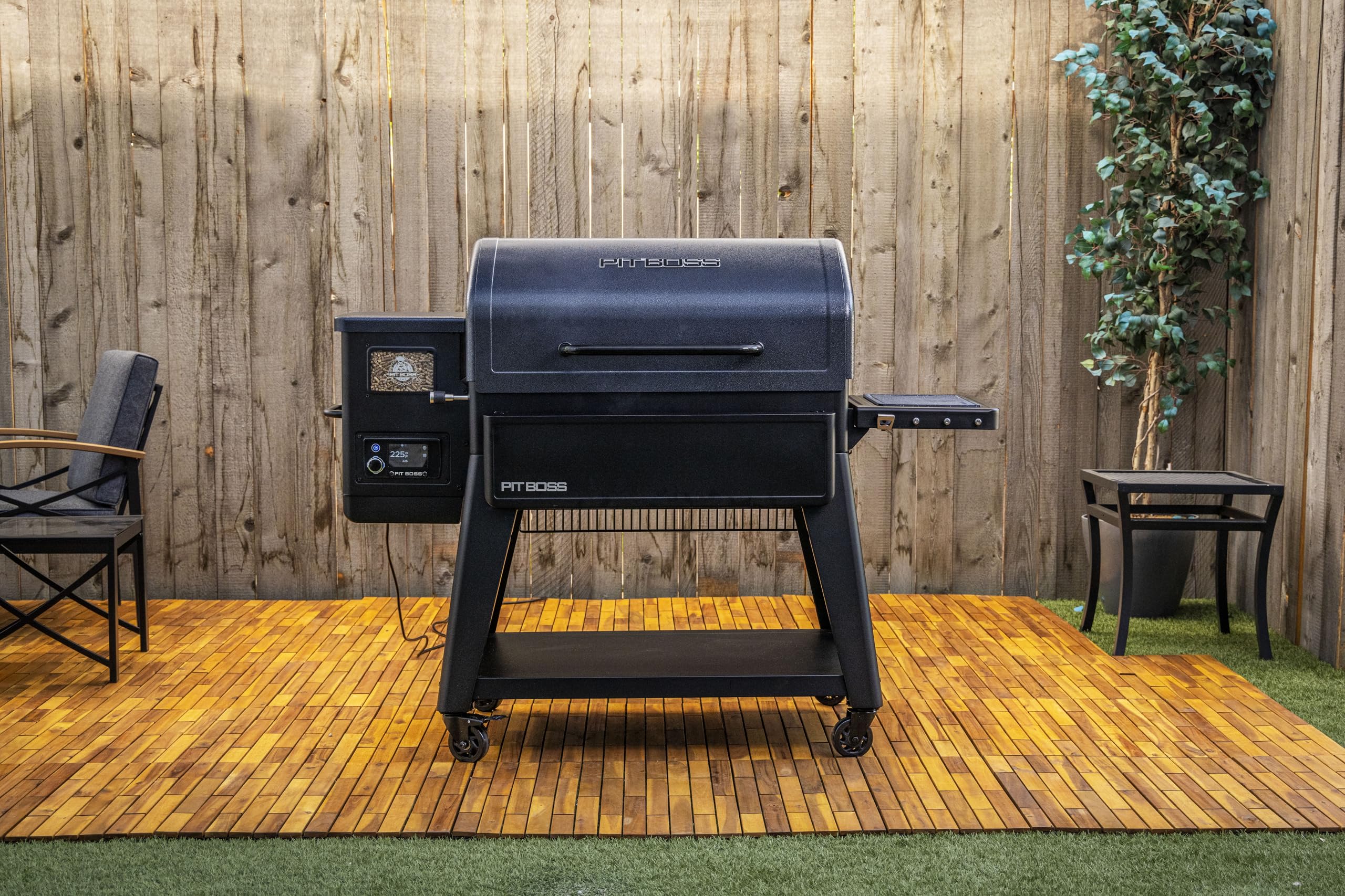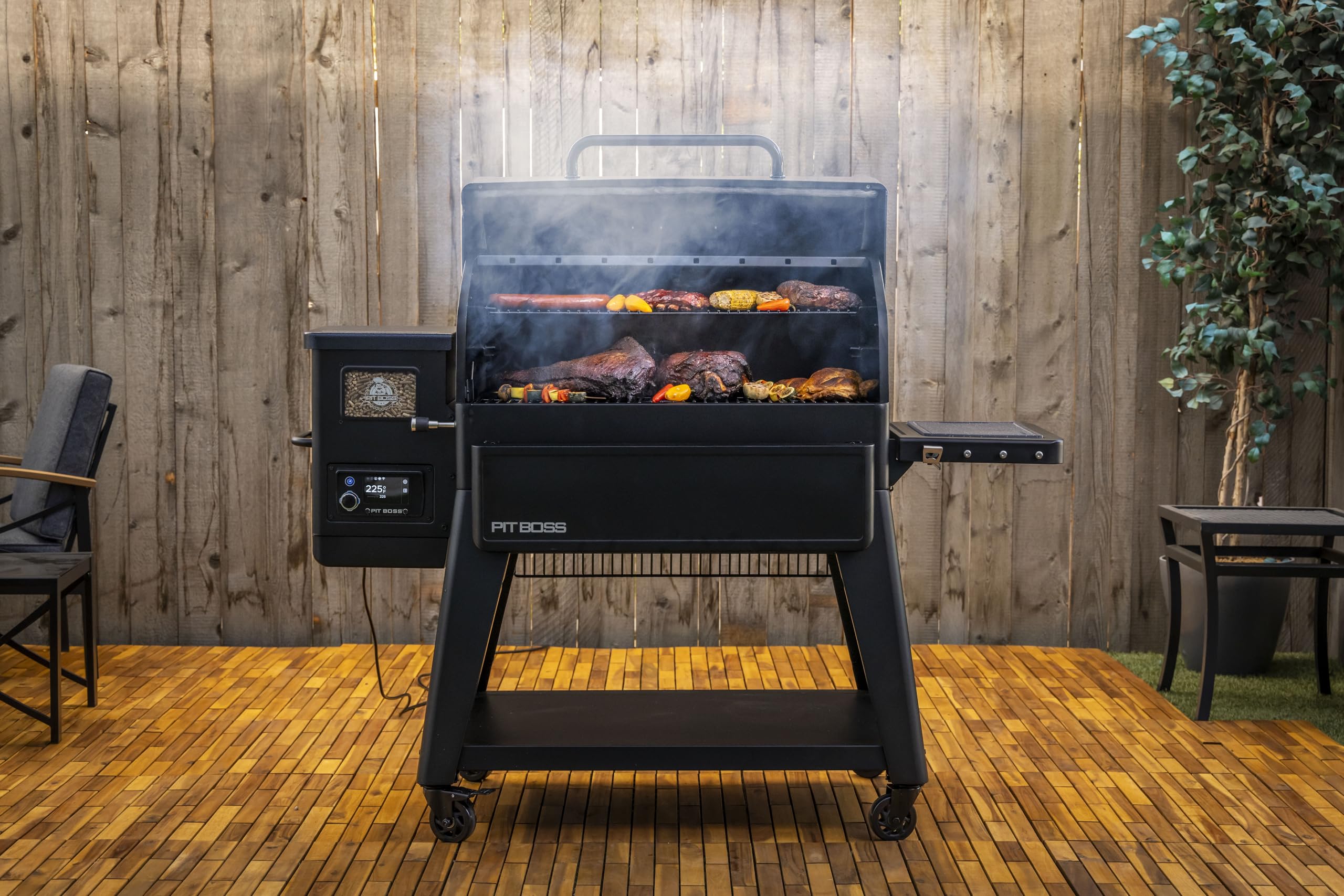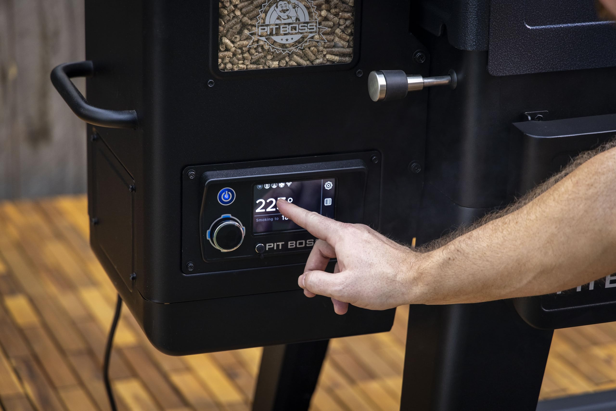 For years, Pit Boss has been a leader in wood pellet grills and smokers, offering innovative features and premium design. And now, we've done it again, taking all those innovations to create the all new Navigator series. This revamped line of wood pellet grills and smokers combines innovative, premium features with smart controls to navigate any outdoor cooking experience with ease. With an included folding front and side shelf, you've got all the extra space you need for food prep and storage, right out of the box. The tall, tapered legs provided a powerful, ergonomic stance for easy-on-the-back grilling. Also making your life easier is improved hopper pellet cleanout (now positioned underneath for gravity to do its thing), easy ash cleanout with the removeable undermount burn pot, a roll top lid design, and a rapid igniter to get grilling faster than ever before. On the inside, fueled by 100% hardwood pellets, the PB1600M is designed to make your backyard the premier destination for world-class BBQ. Controlled by the latest Pit Boss touchscreen digital controller, you have 5° increment settings and the latest Wi-Fi® and Bluetooth® technology so you can take full control of your grill from anywhere using the Pit Boss Grills app.