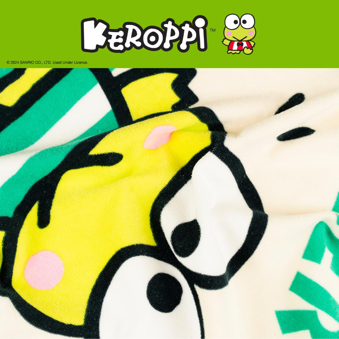 KEROPPI DESIGN: Splash into fun with this adorable Keroppi Hooded Towel Wrap! Featuring Keroppi and his cheerful friend on a bright and playful design, this cozy towel is perfect for fans who love Sanrio’s happiest frog and all things cute and quirky.