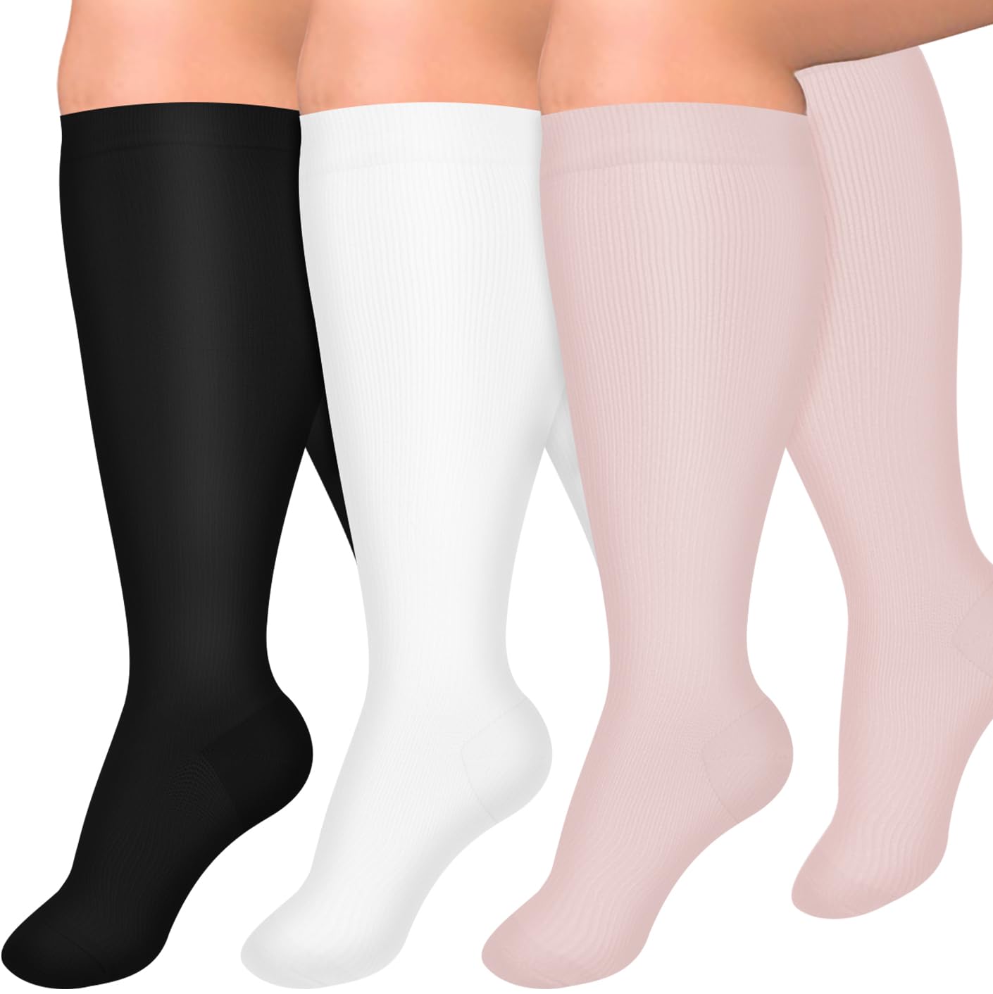 【Easy Care & Customer Service】- Our plus size compression socks are easy to care for. Just wash them with like colors and tumble dry on low. If you have any question Please contact our customer support. Always select the right size to buy, by measuring your calf at the widest point with muscle relaxed to get accurate size.