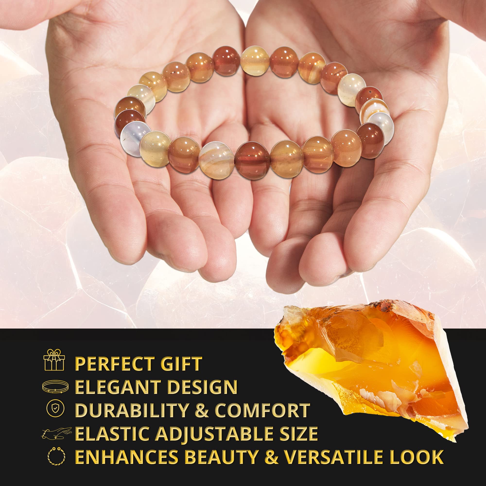 Superb Craftsmanship: The carnelian beaded bracelet for women and men are made with high-quality, real gemstones, carefully selected, prepared, and polished to perfectly 8mm round beads that are safe for the skin and resistant