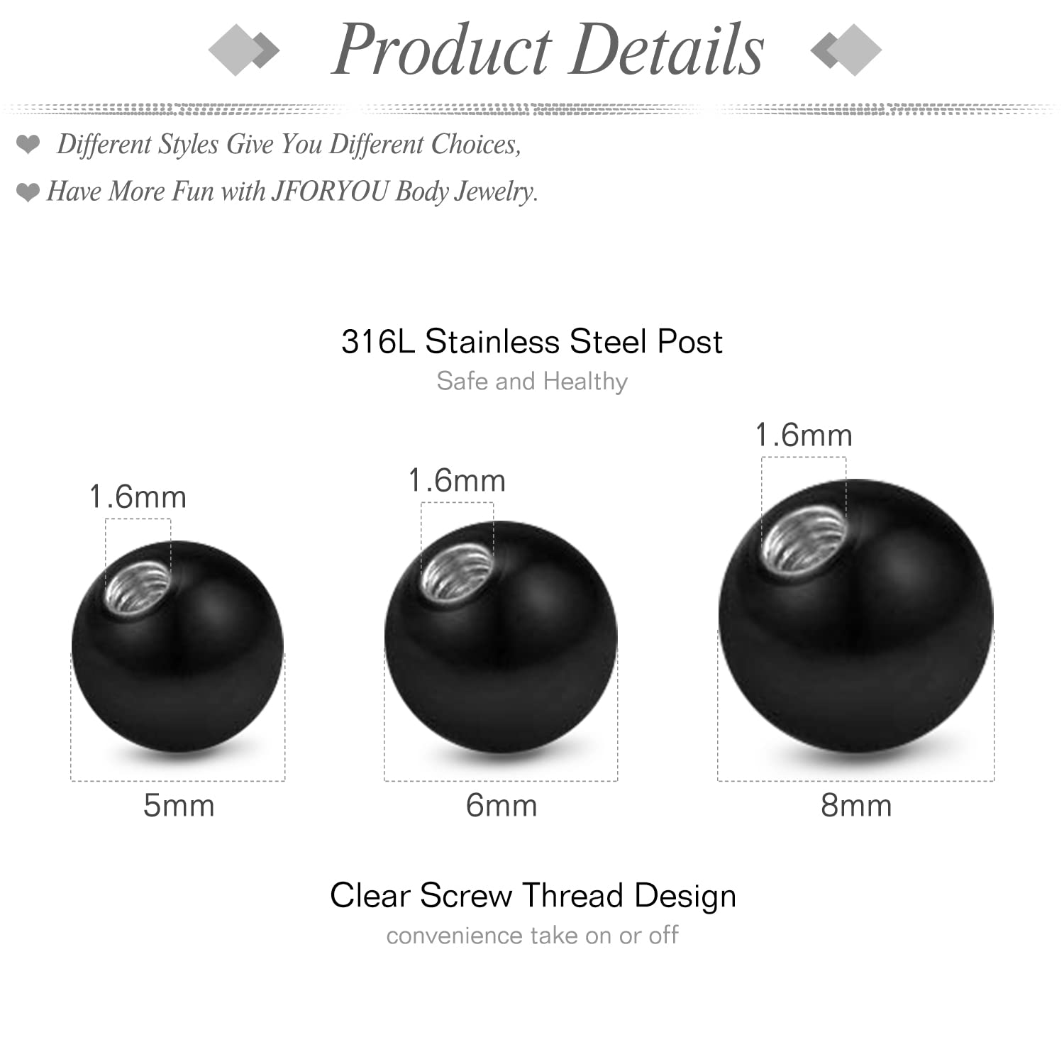 ❤ Size: Fit For 14 Gauge (1.6 MM) Externally Threaded Piercing Jewelry, Ball Size: 13/64"(5 MM),1/4"(6 MM), 5/16"(8 MM). Color: Black Tone