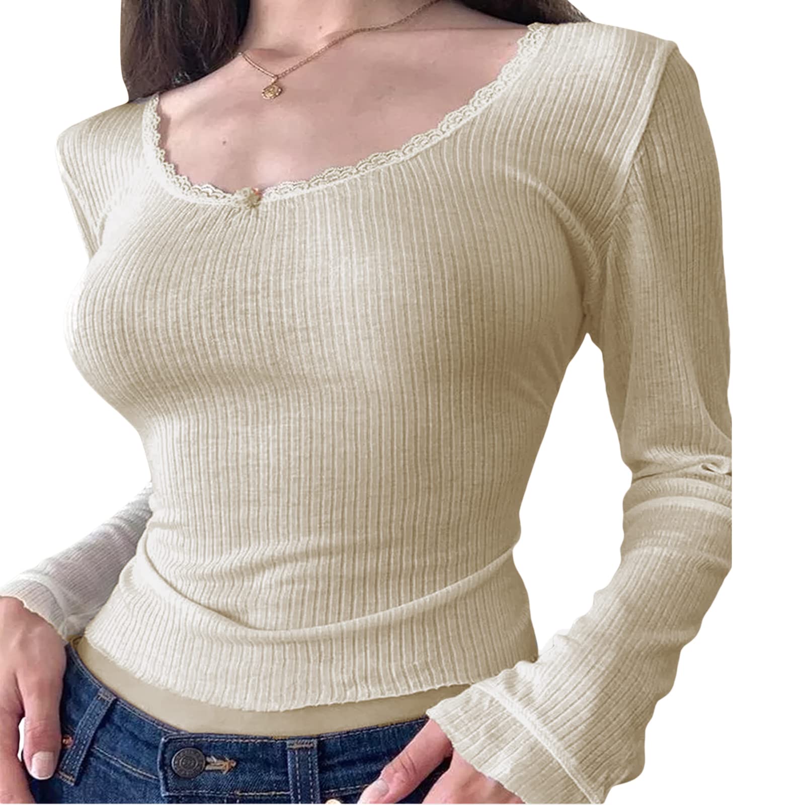 DESIGN: The knitting lace tops have long sleeve, scoop neck, soft and sweet, comfortable and breathable, suitable for spring and autumn wear.