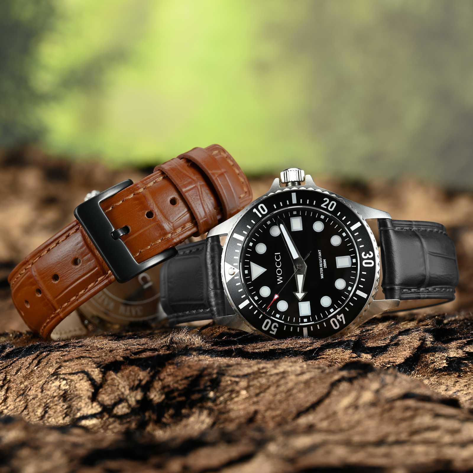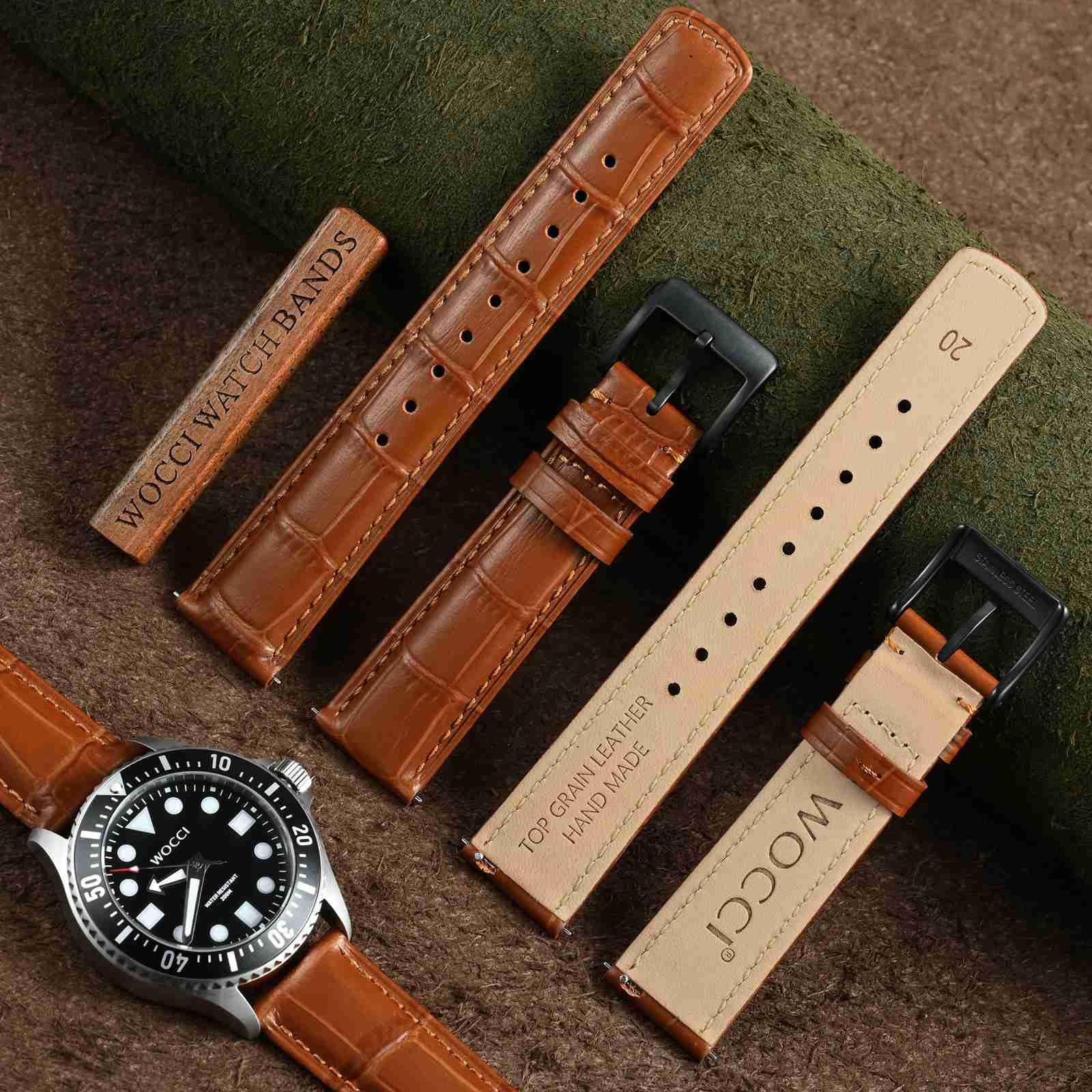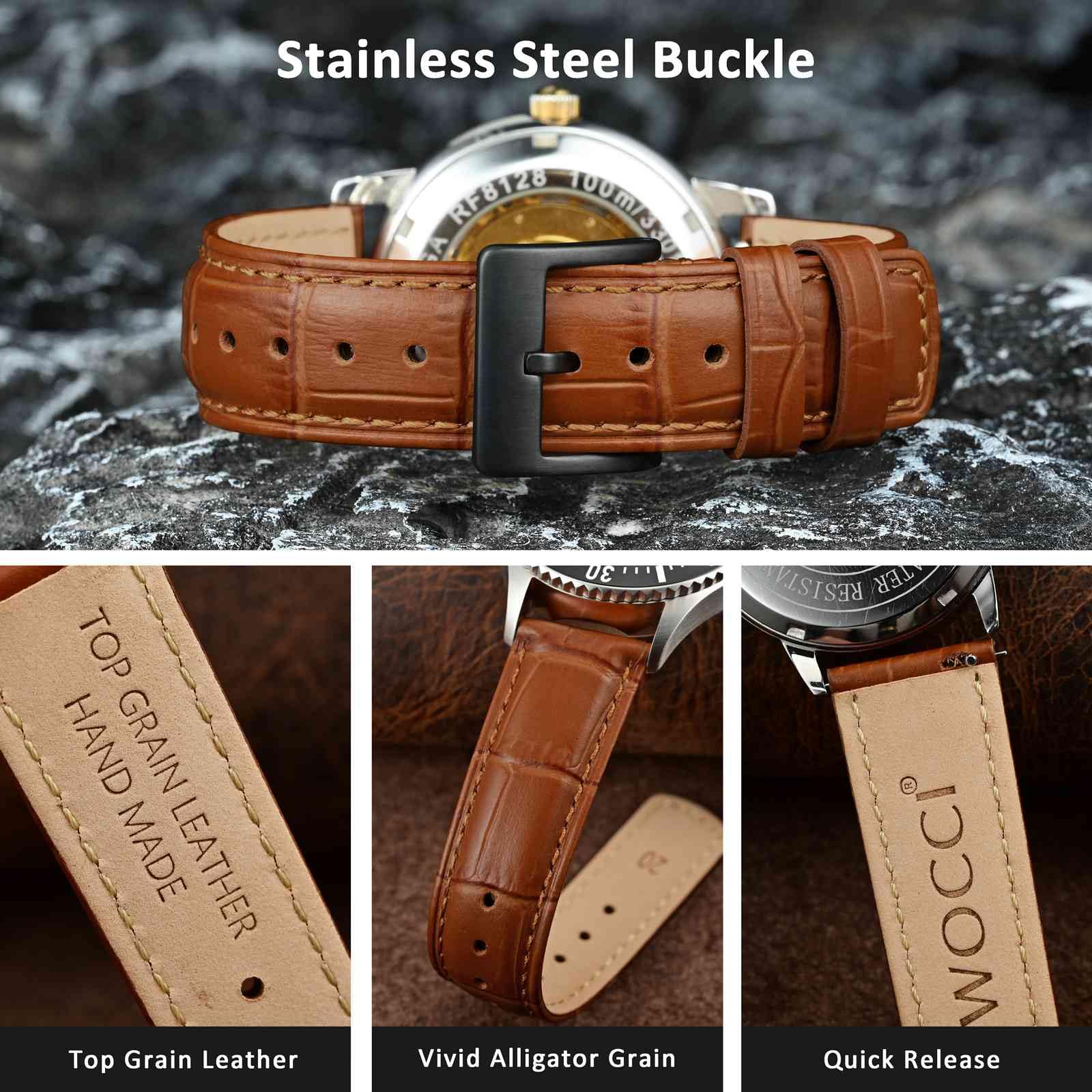 Watch Strap Material: This watch band is crafted from top-grain genuine leather, the bottom layer is comfortable calfskin lining. Featuring exquisite alligator embossed texture for a timeless, sophisticated look. Equipped with 304 stainless steel buckle ensures secure fastening and long-lasting wear