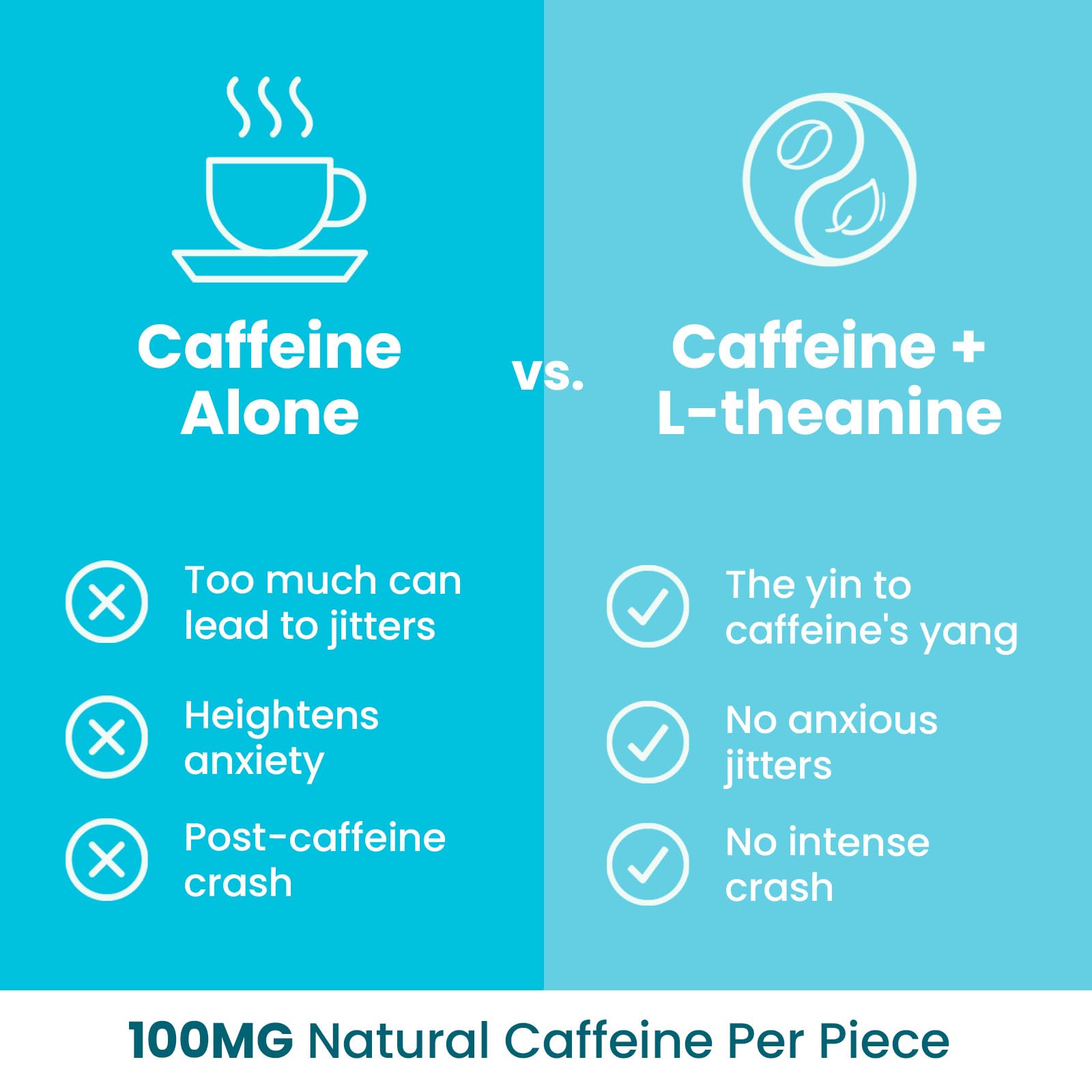 The Perfect Balance - With 60mg of L-theanine per piece, our energy and focus formula promotes enhanced focus and stress reduction to smooth energy boosts.