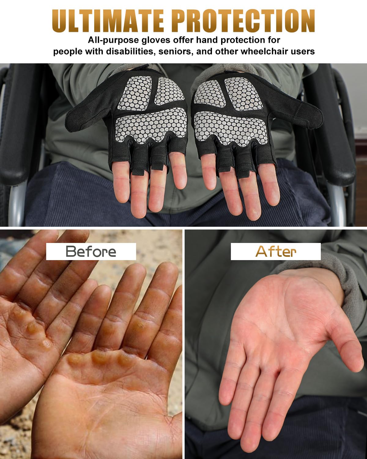 Prevents Calluses & Blisters:Shield hands from skin damage caused by pushing, braking and wheelchair maneuvering. Engineered by wheelchair users for wheelchair users, these gloves deliver reliable protection whether you're a casual user or active athlete, keeping your hands healthy through every movement