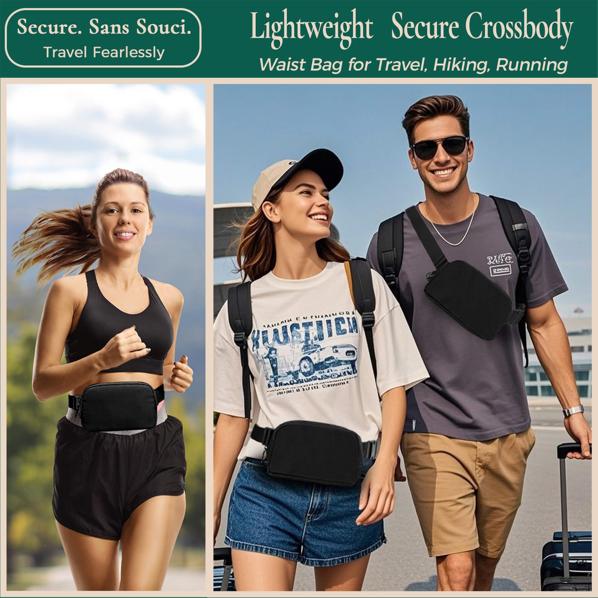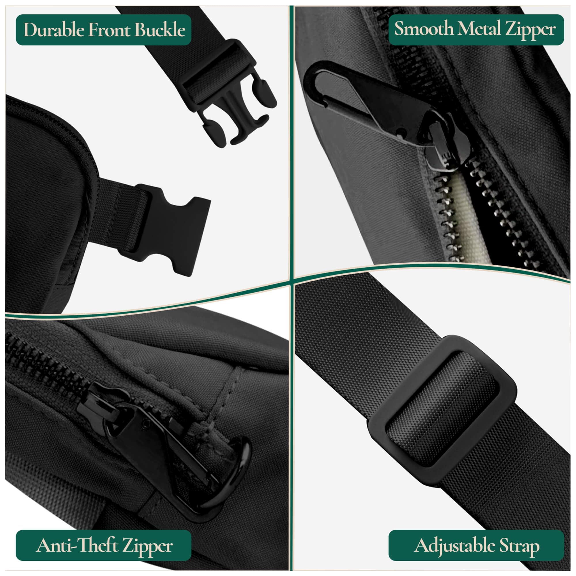 【Premium Eco-Friendly Material】 The travel fanny pack is made of recycled PET fabric (30% lighter than nylon), waterproof and scratch-resistant. Reinforced stitching withstands 10,000+ zipper cycles—ideal for hiking, gym, and urban commutes.
