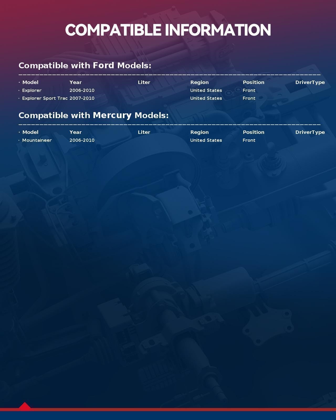 Compatibility - 515078 Pair Wheel Hub Bearing Assembly fit for 2006-2010 Ford Explorer, 2007-2010 Ford Explorer Sport Trac, 2006-2010 Mercury Mountaineer