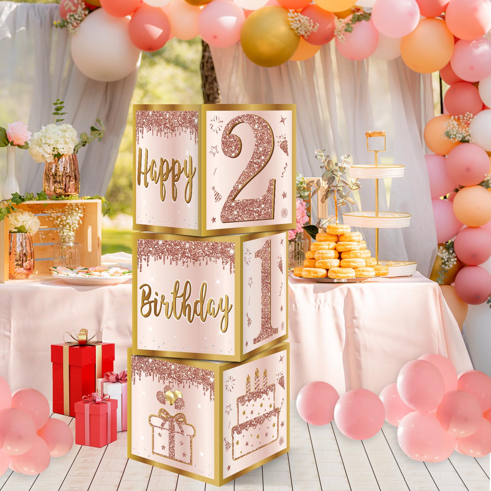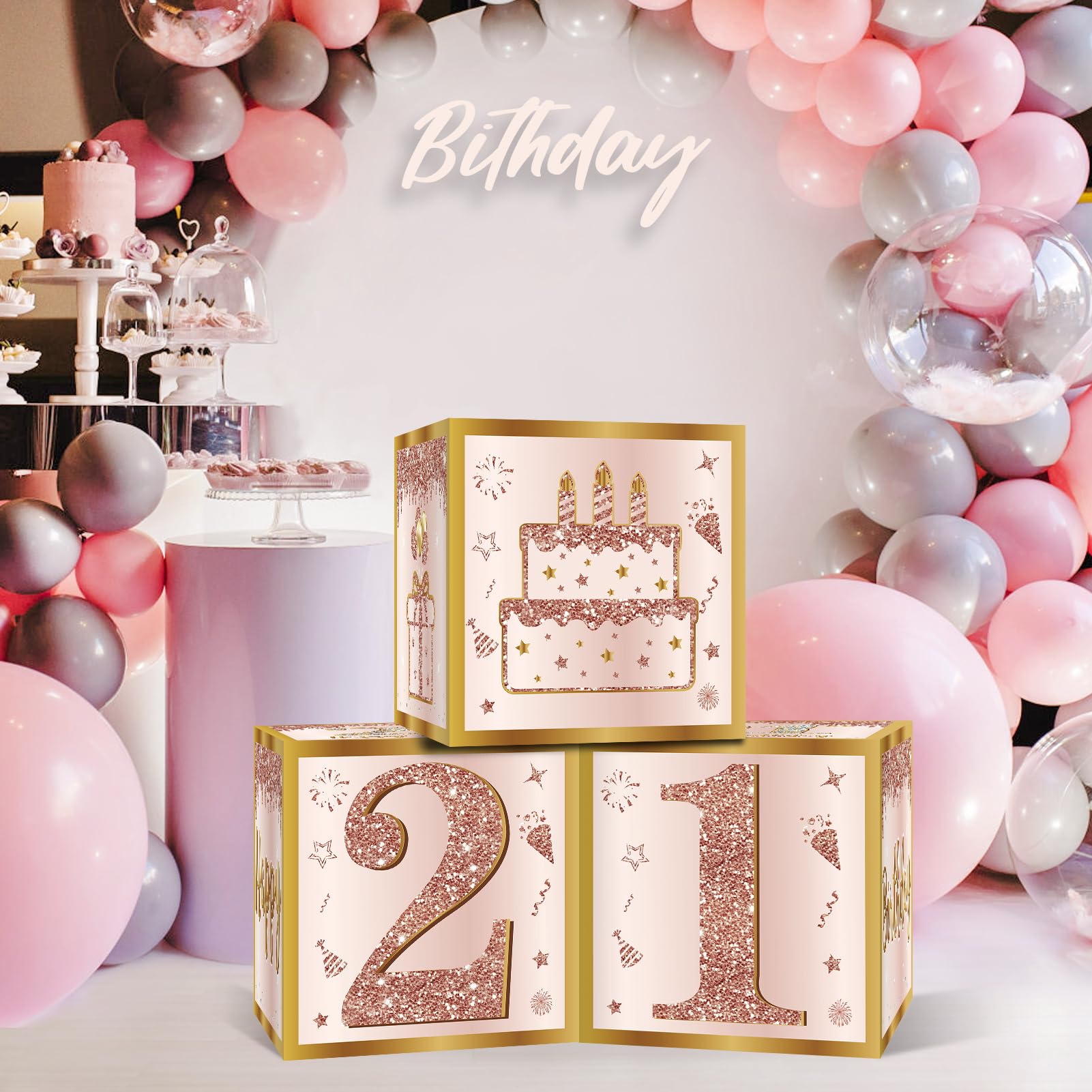 [Widely Used] - Suitable for pink 21 birthday party. You can use 3 boxes to combine into different shapes to put it on such as cake stand, floor, living room, etc, To attract the attention of guests!