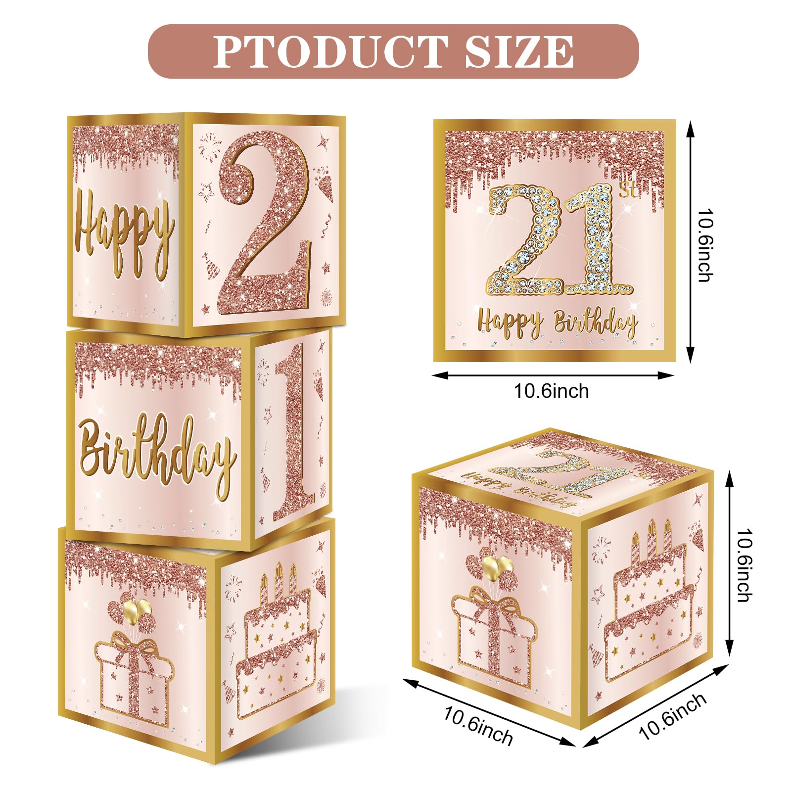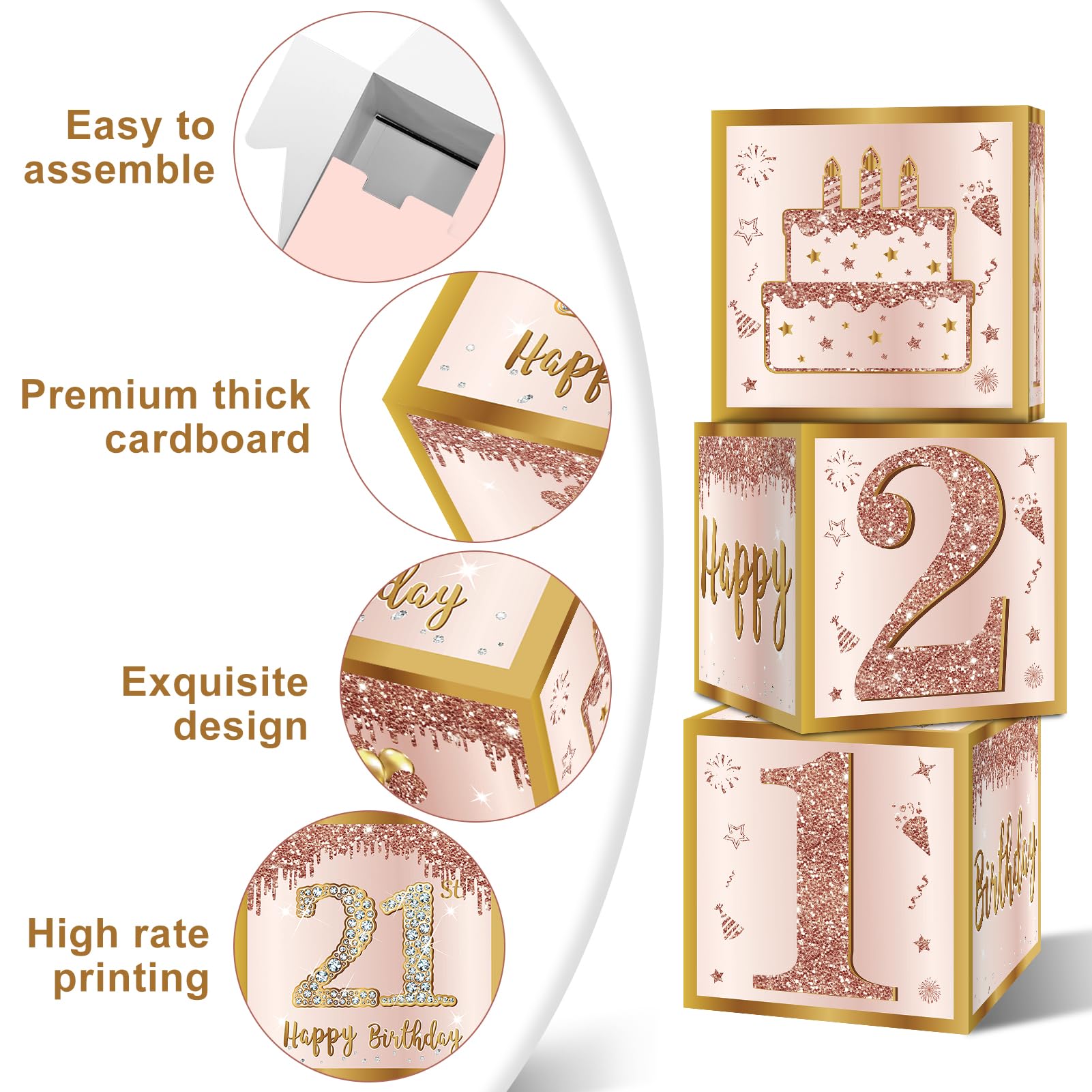 [Easy to Assemble] -These boxes are pre-folded and packed, you just assemble the box into a cube according to the current crease, and in a few minutes you will have 3pcs 21st birthday boxes!(Note: Color changes are possible due to differences in lighting/screen display.)